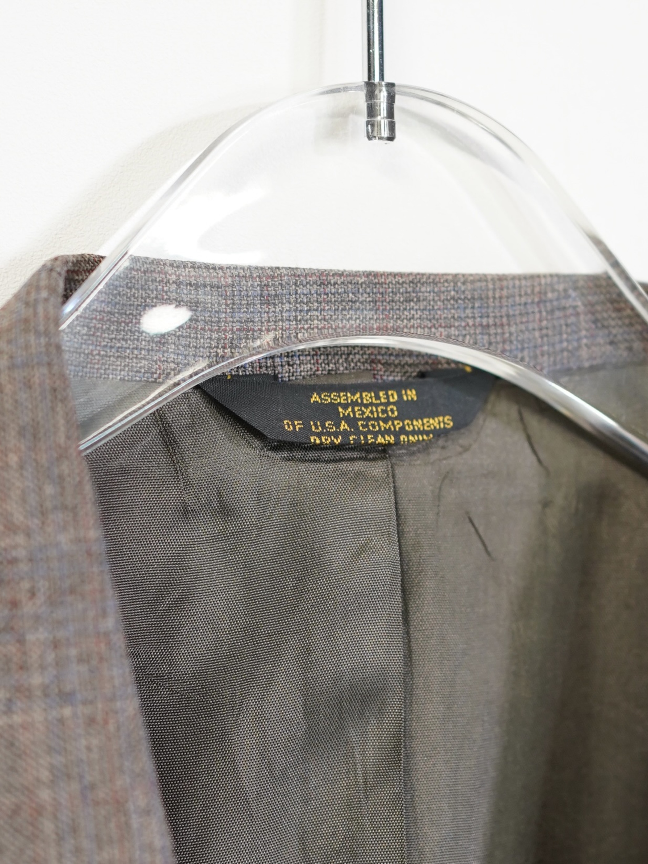 ・1970's~1980's Plaid pattern wool tailored jacket / ASSEMBLED in MEXICO of U.S.A COMPONENTS