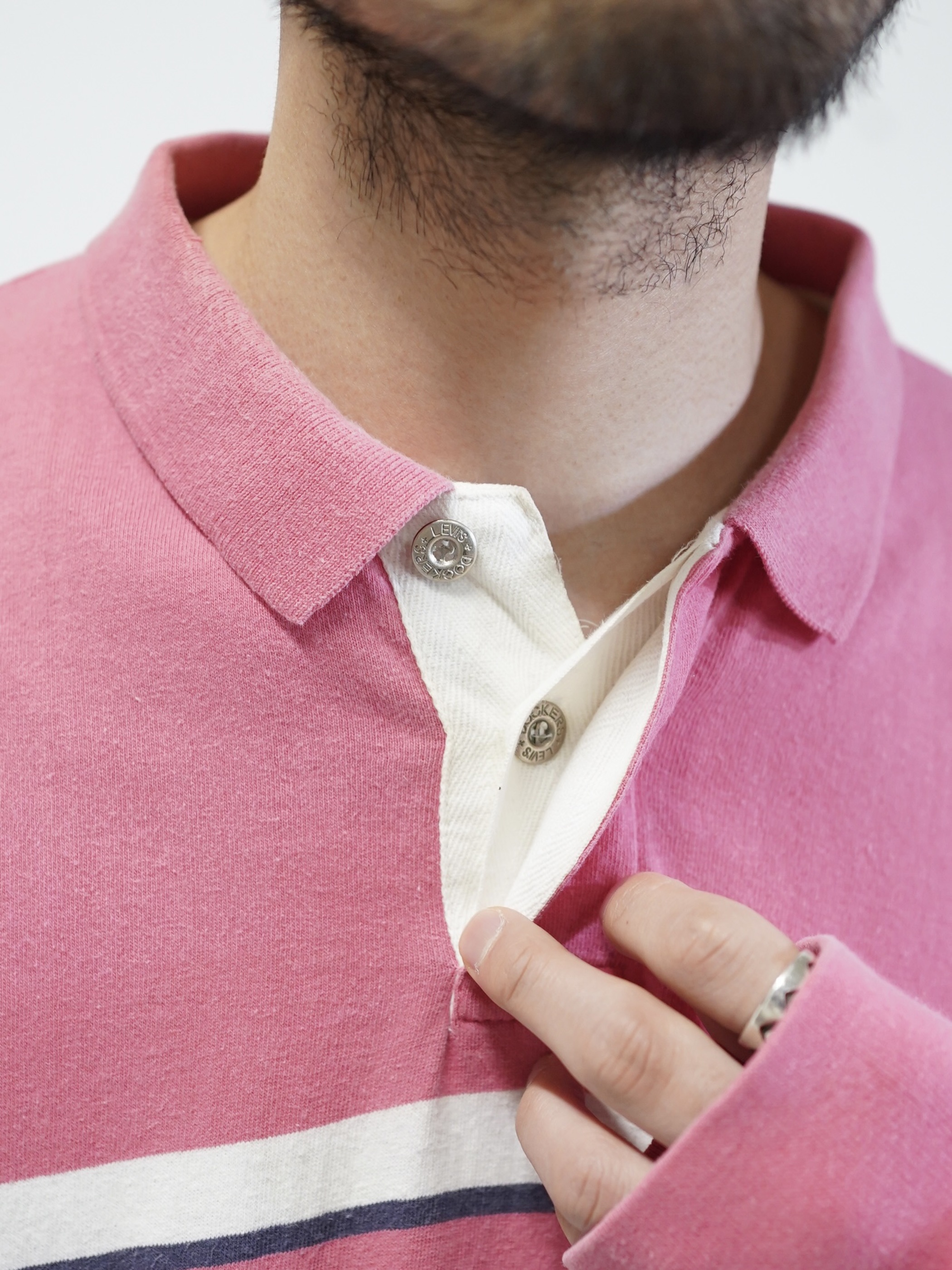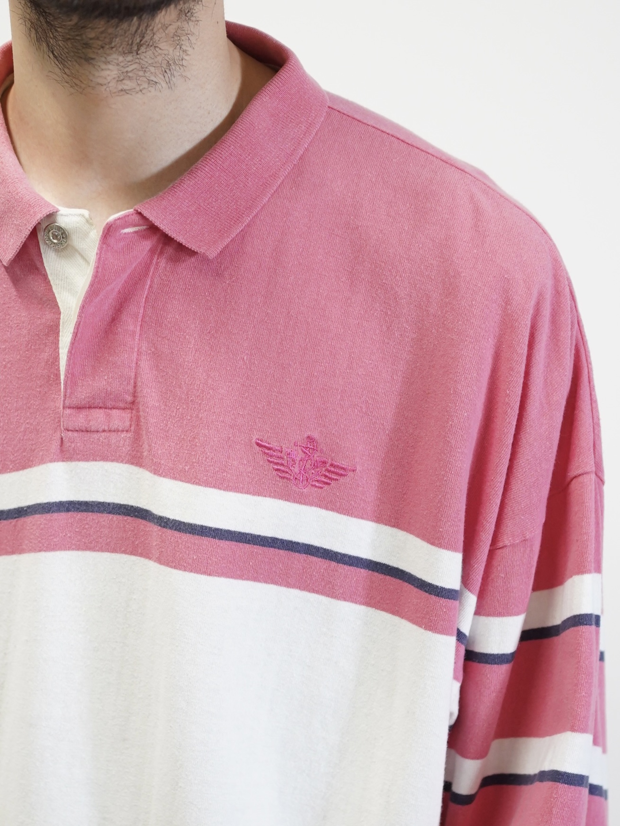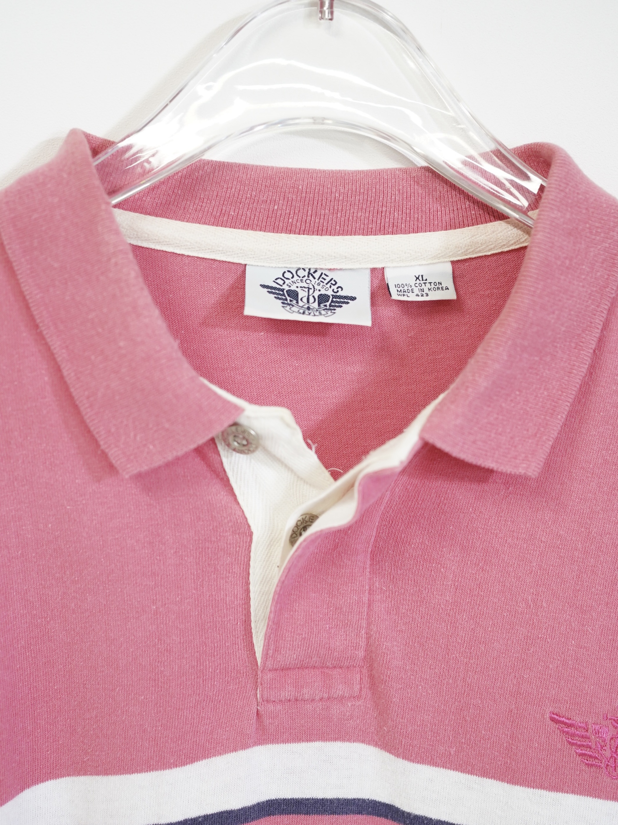 1990's DOCKERS metal buttons cotton Multi-border L/S polo shirt / Made in KOREA