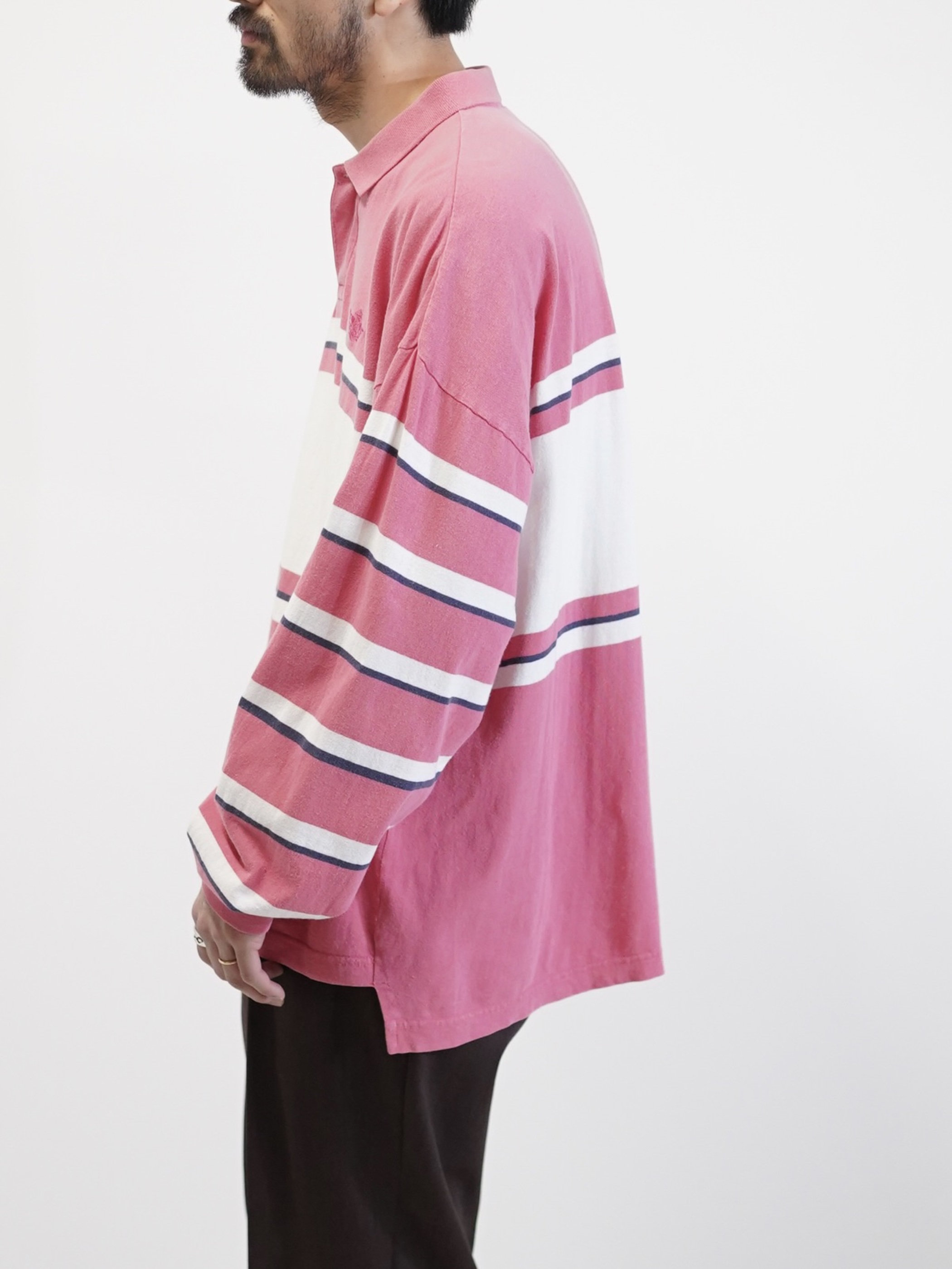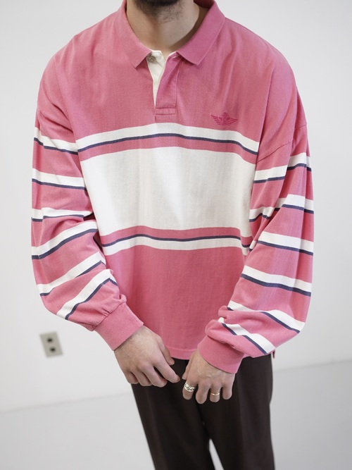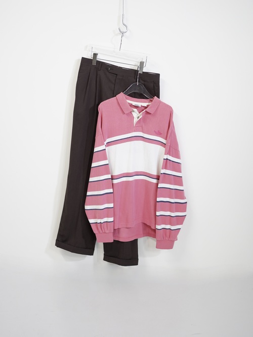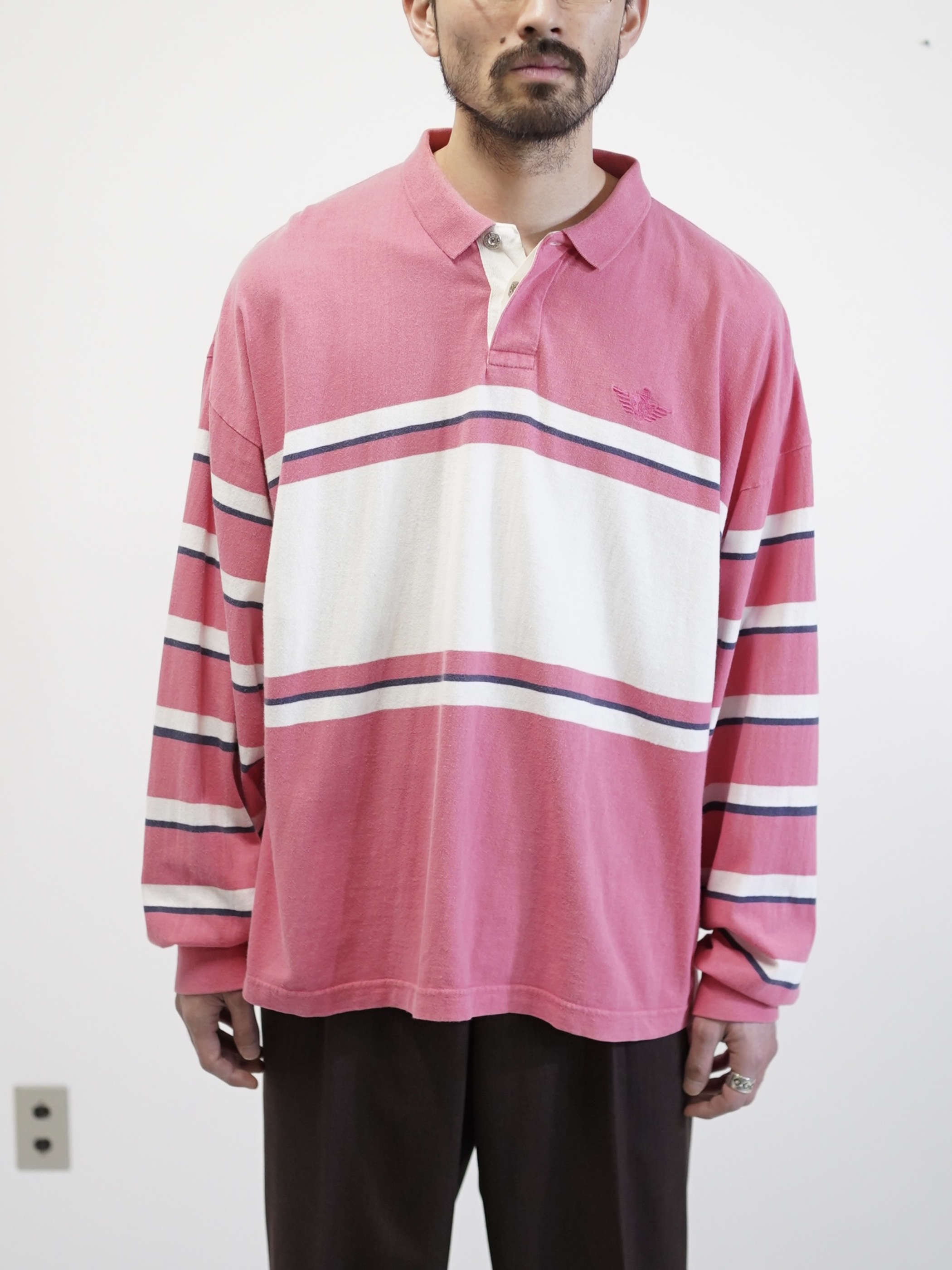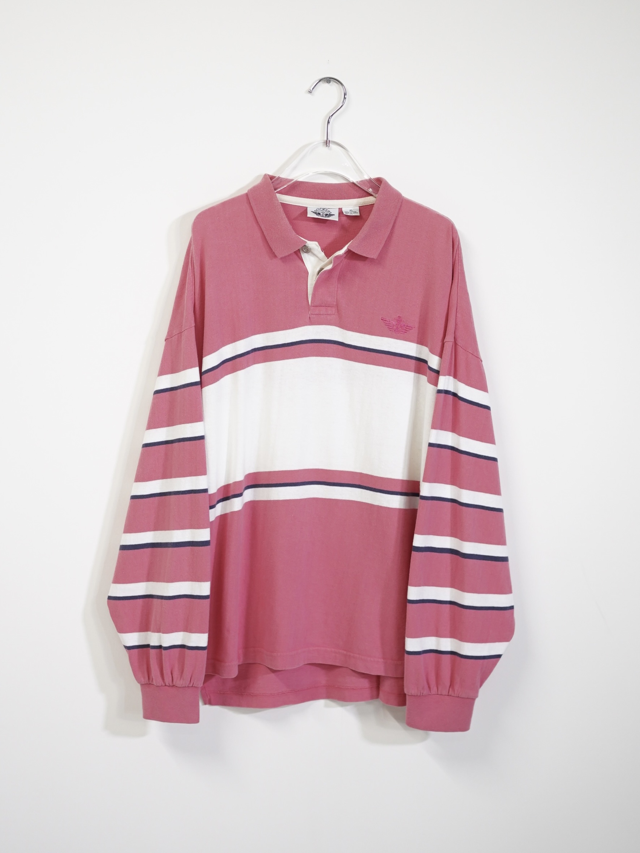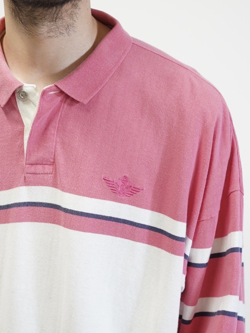 ・1990's DOCKERS metal buttons cotton Multi-border L/S polo shirt / Made in KOREA