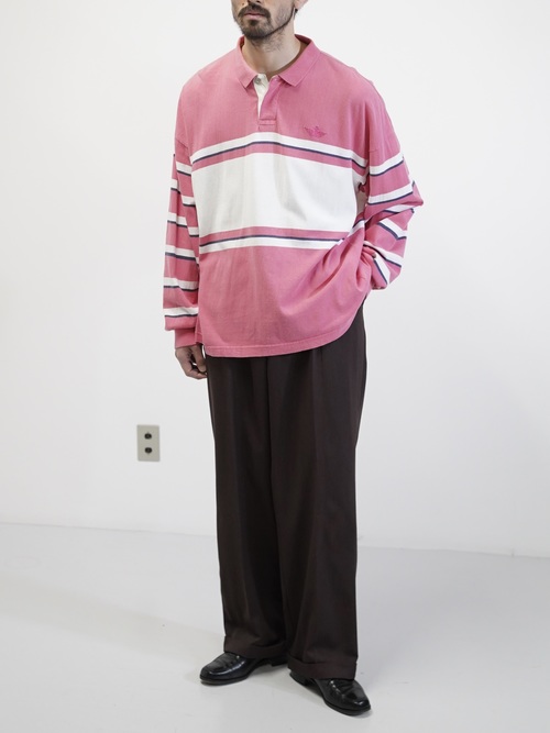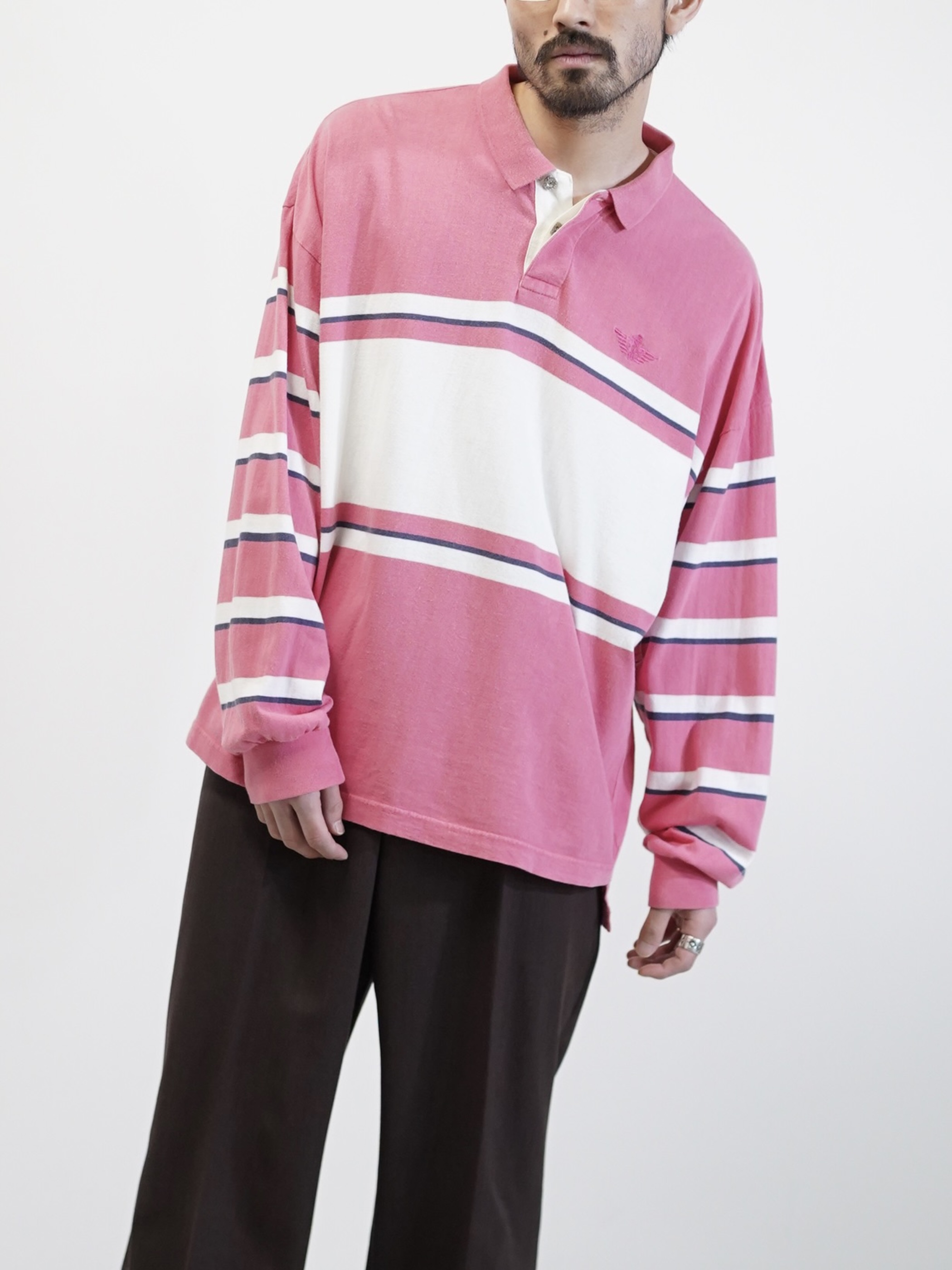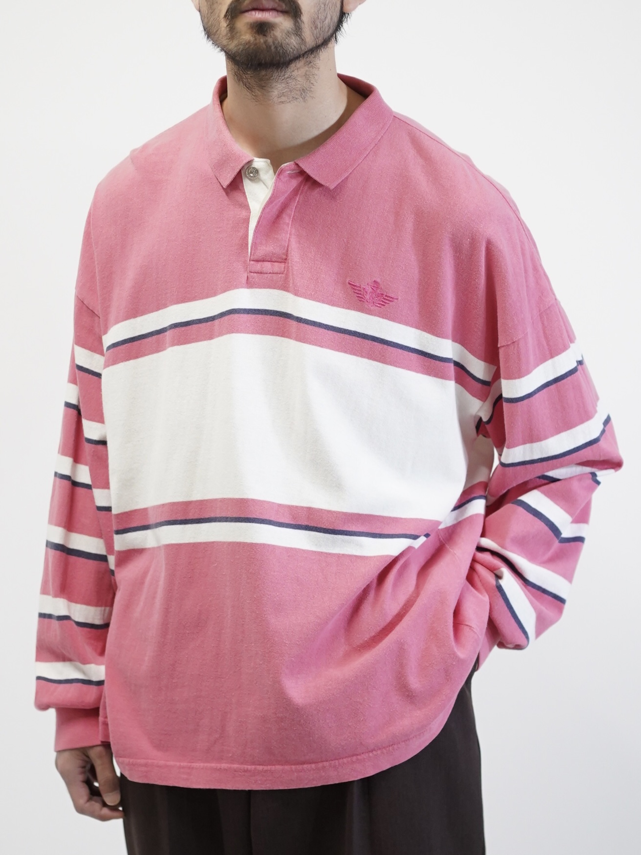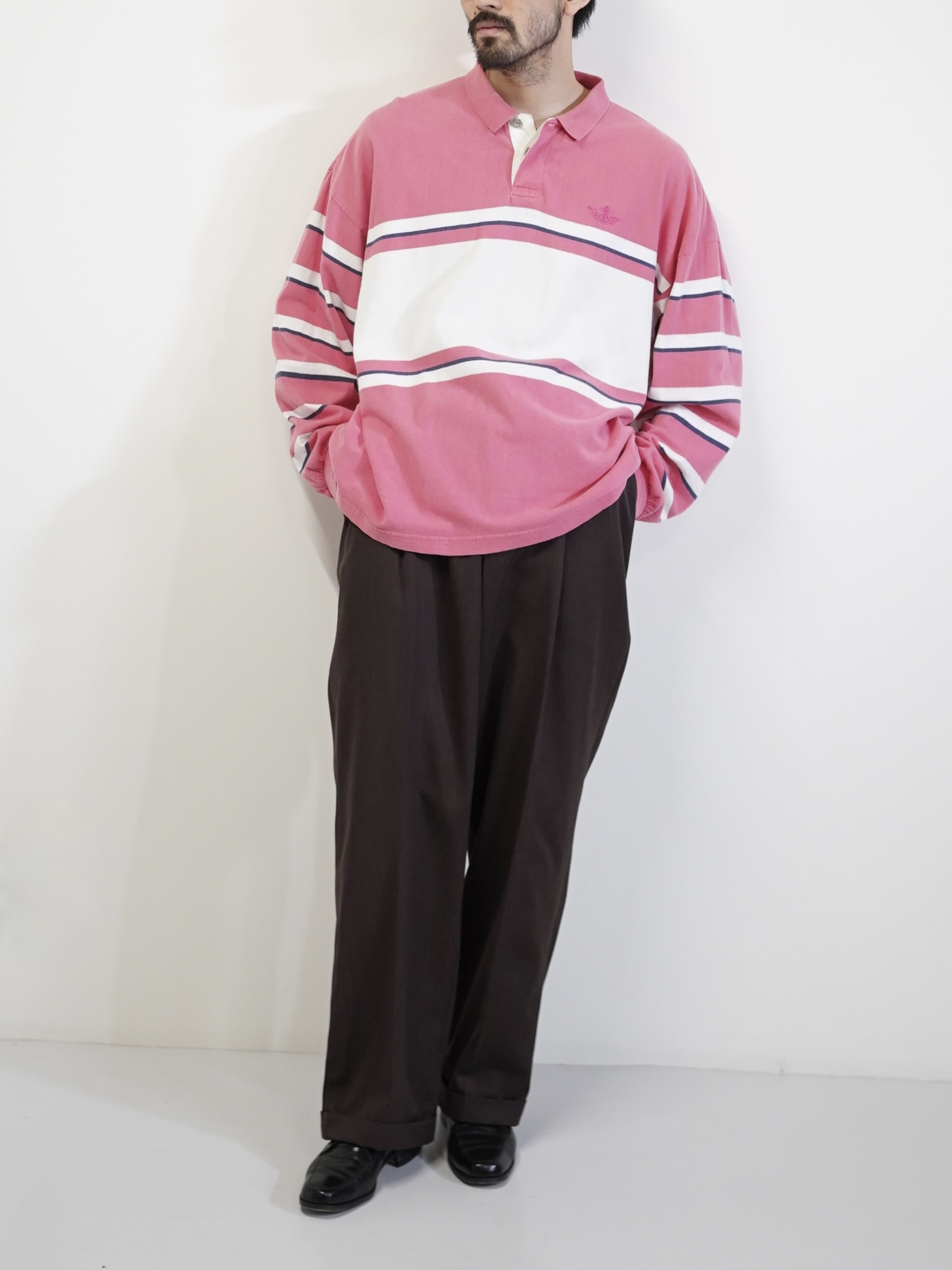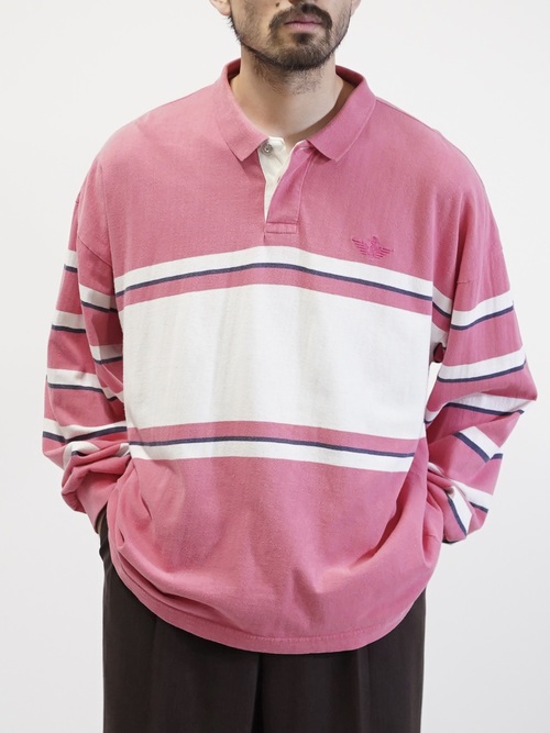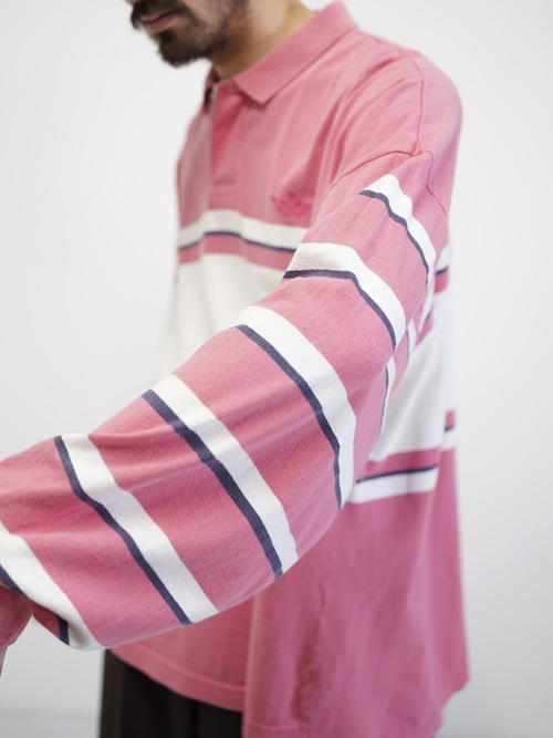 ・1990's DOCKERS metal buttons cotton Multi-border L/S polo shirt / Made in KOREA