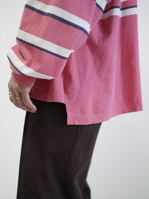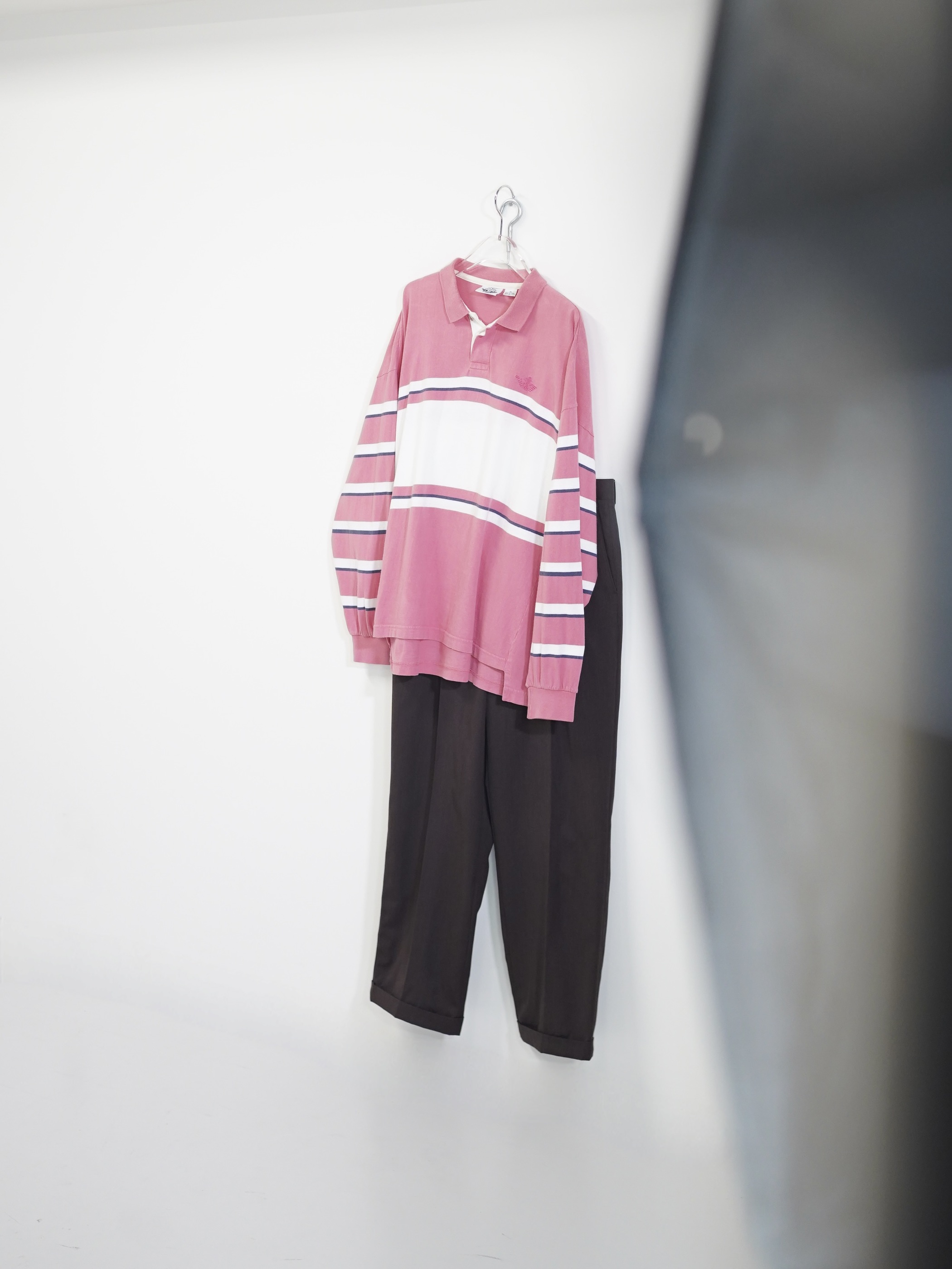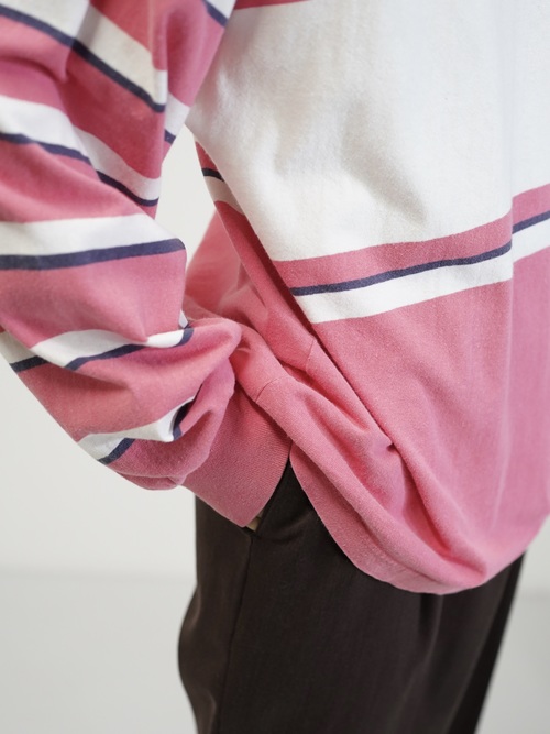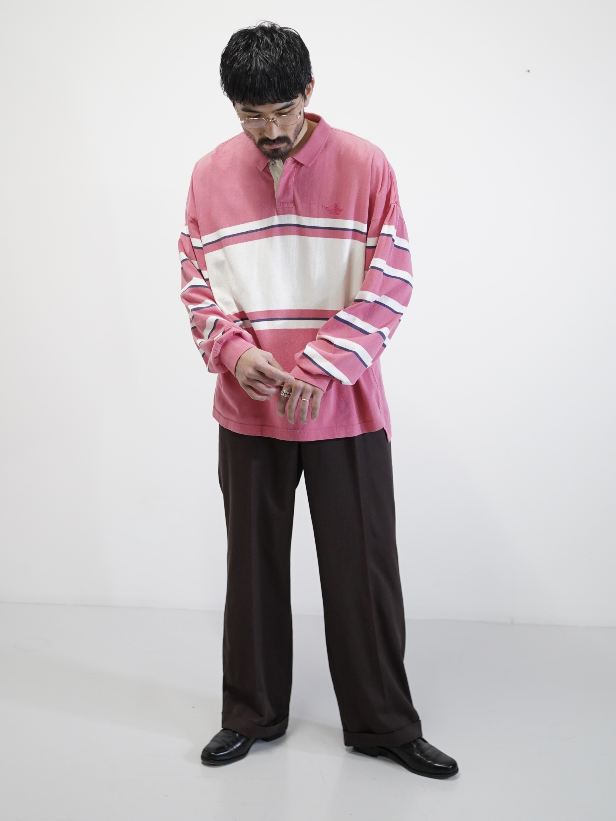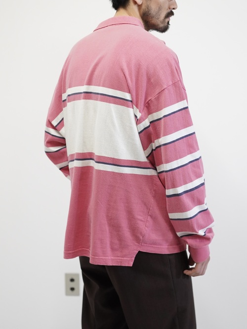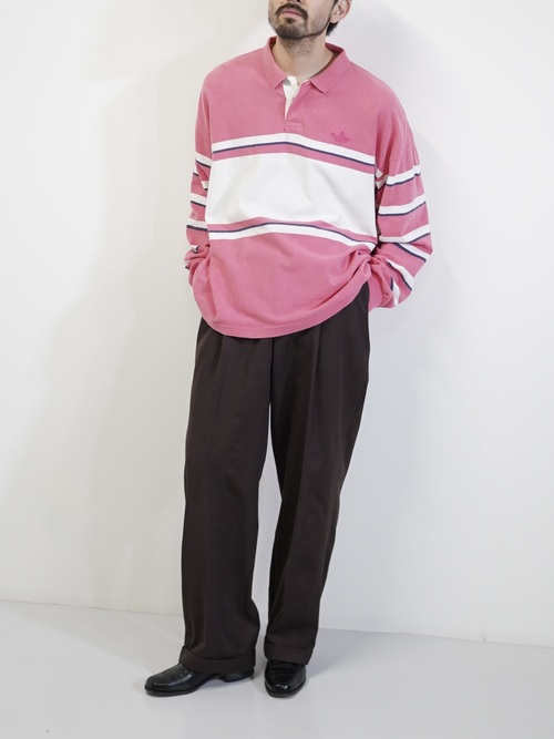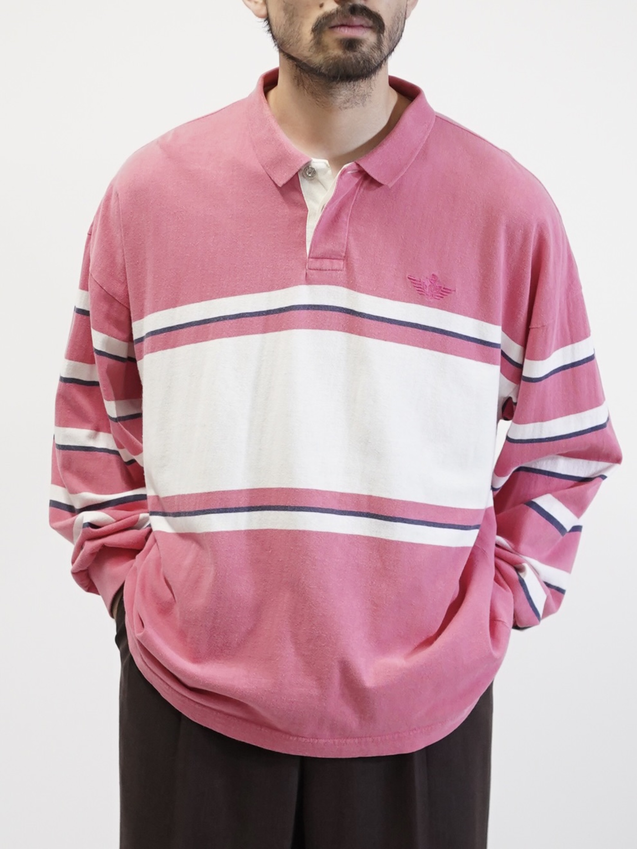 ・1990's DOCKERS metal buttons cotton Multi-border L/S polo shirt / Made in KOREA