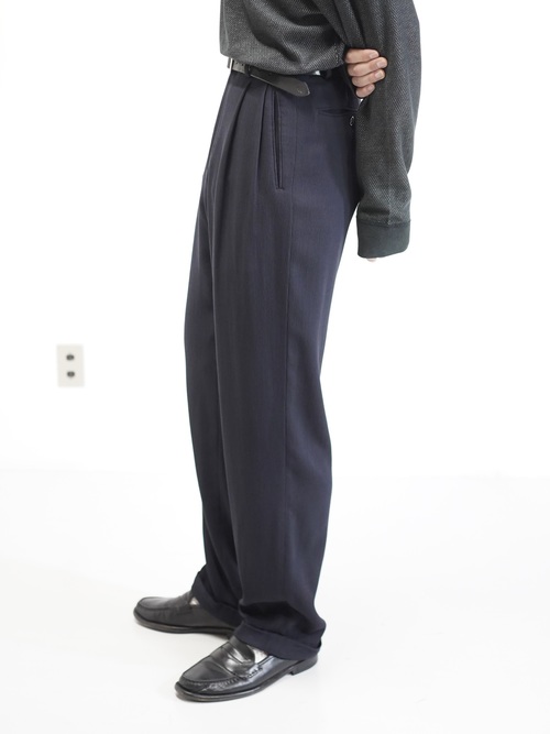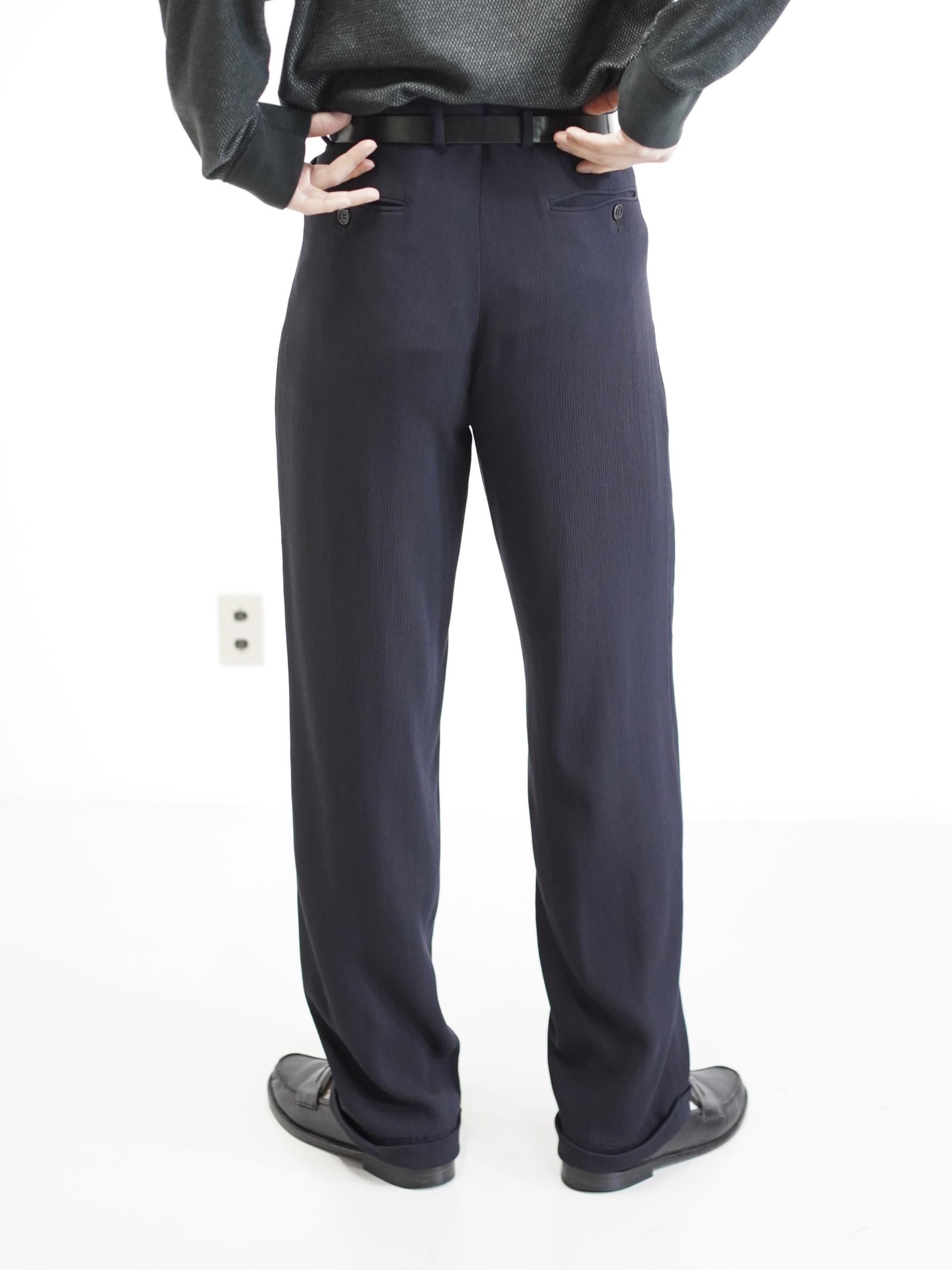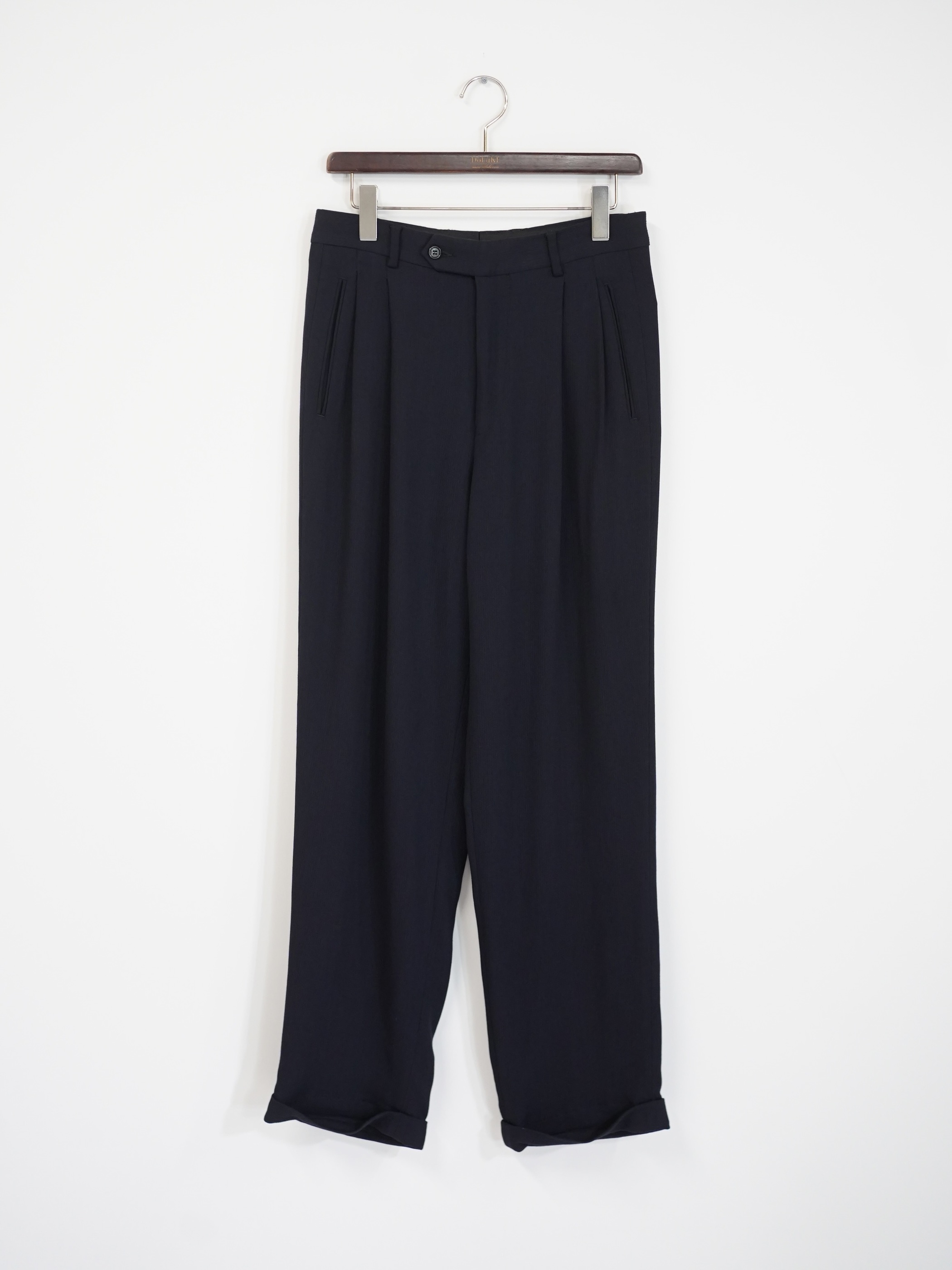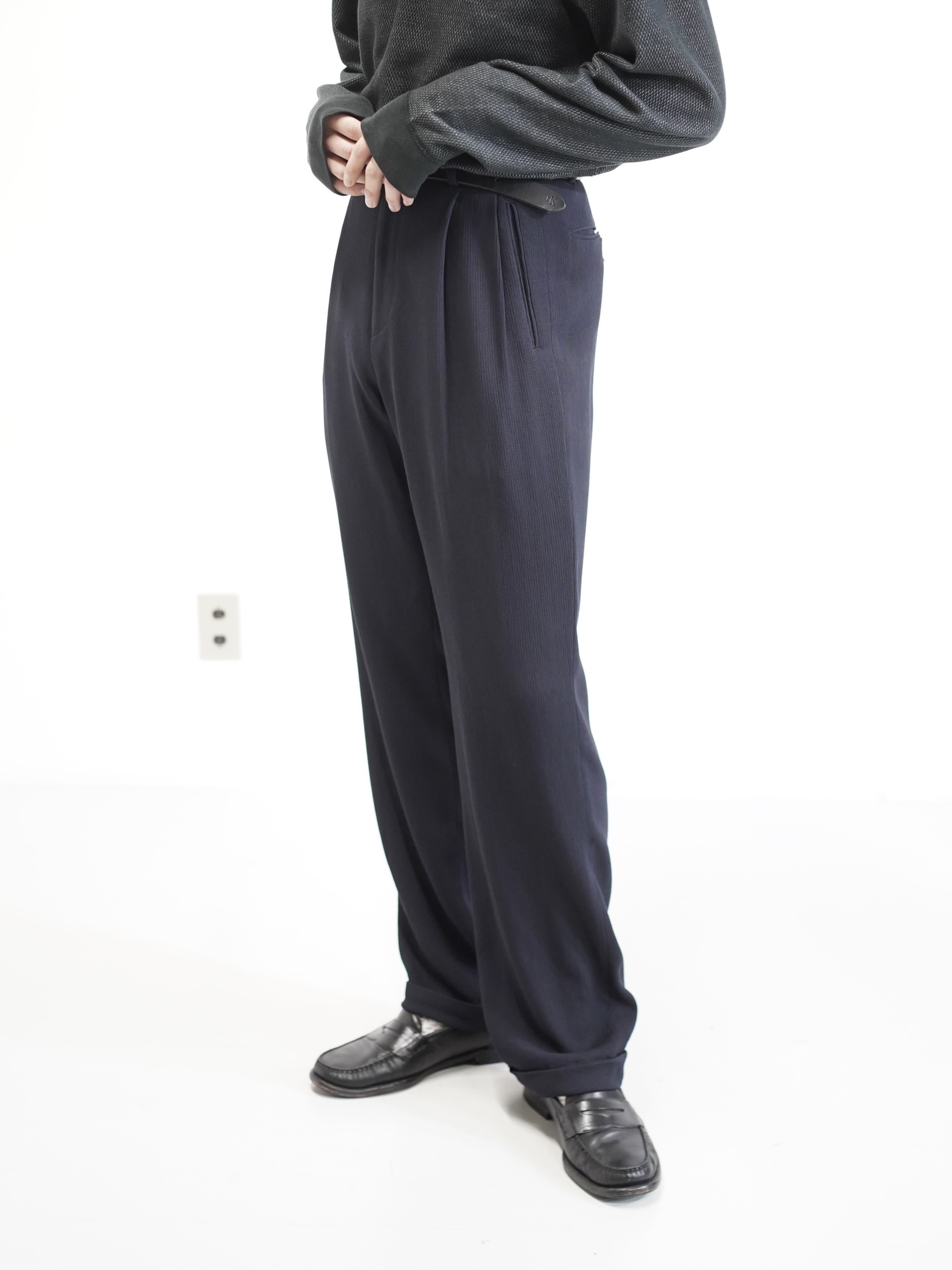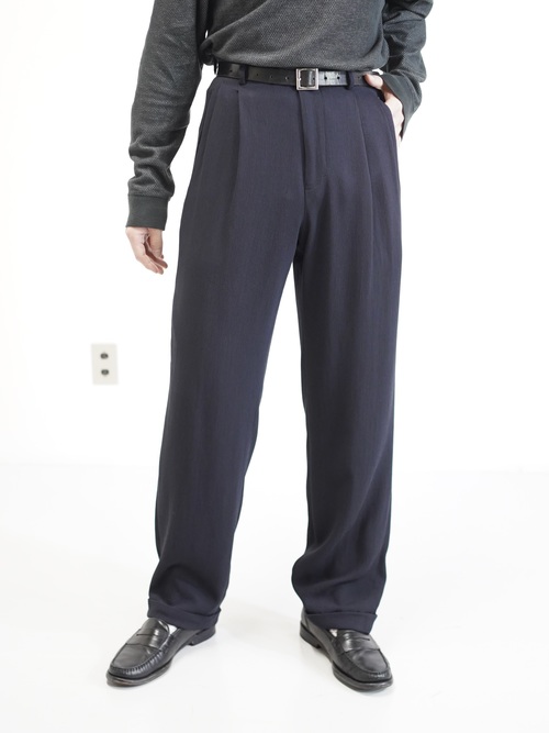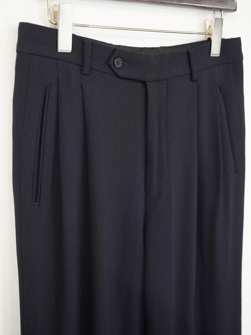 ・1990's DKNY woven stripe drape fabric 2-tuck trousers