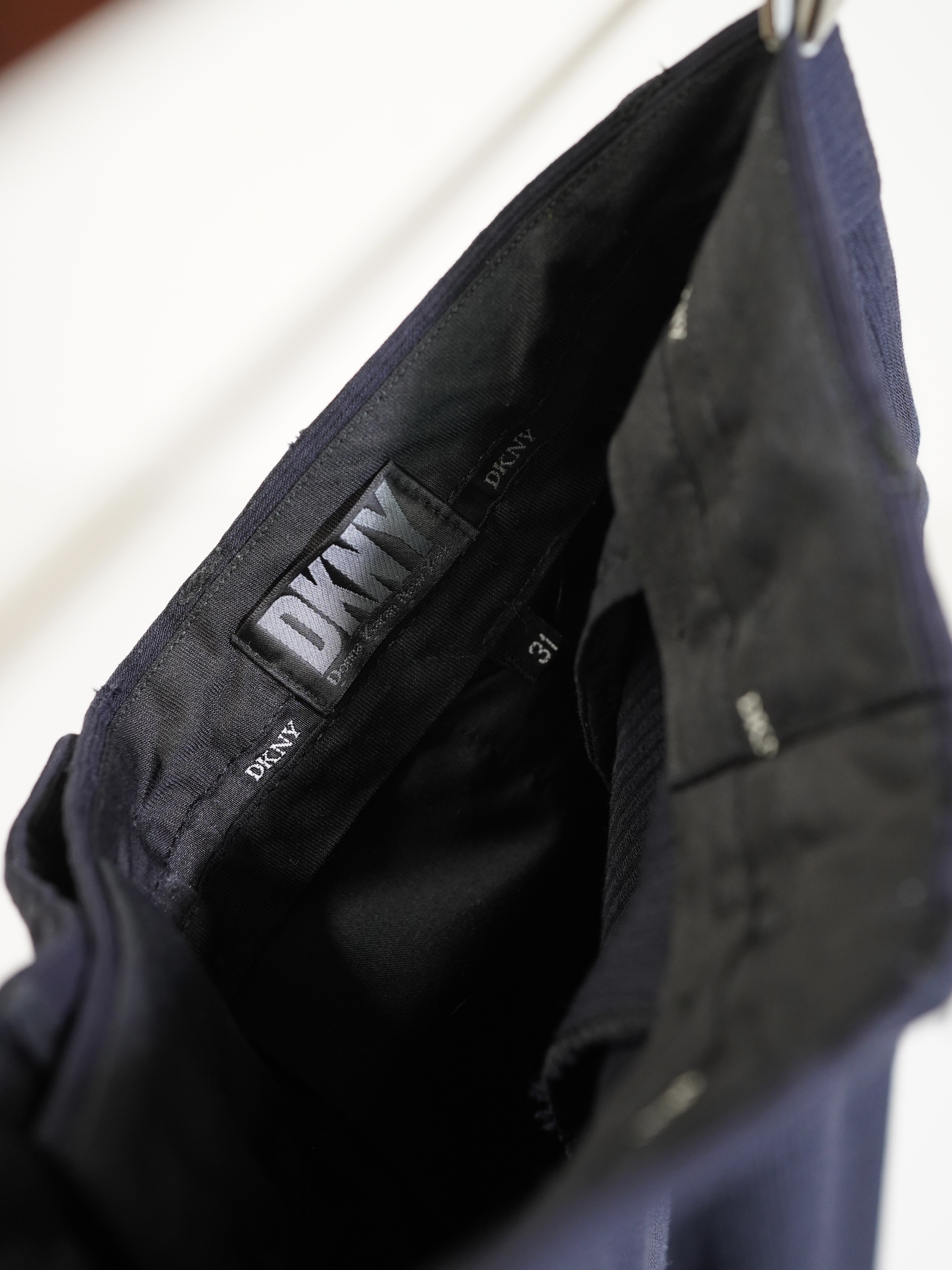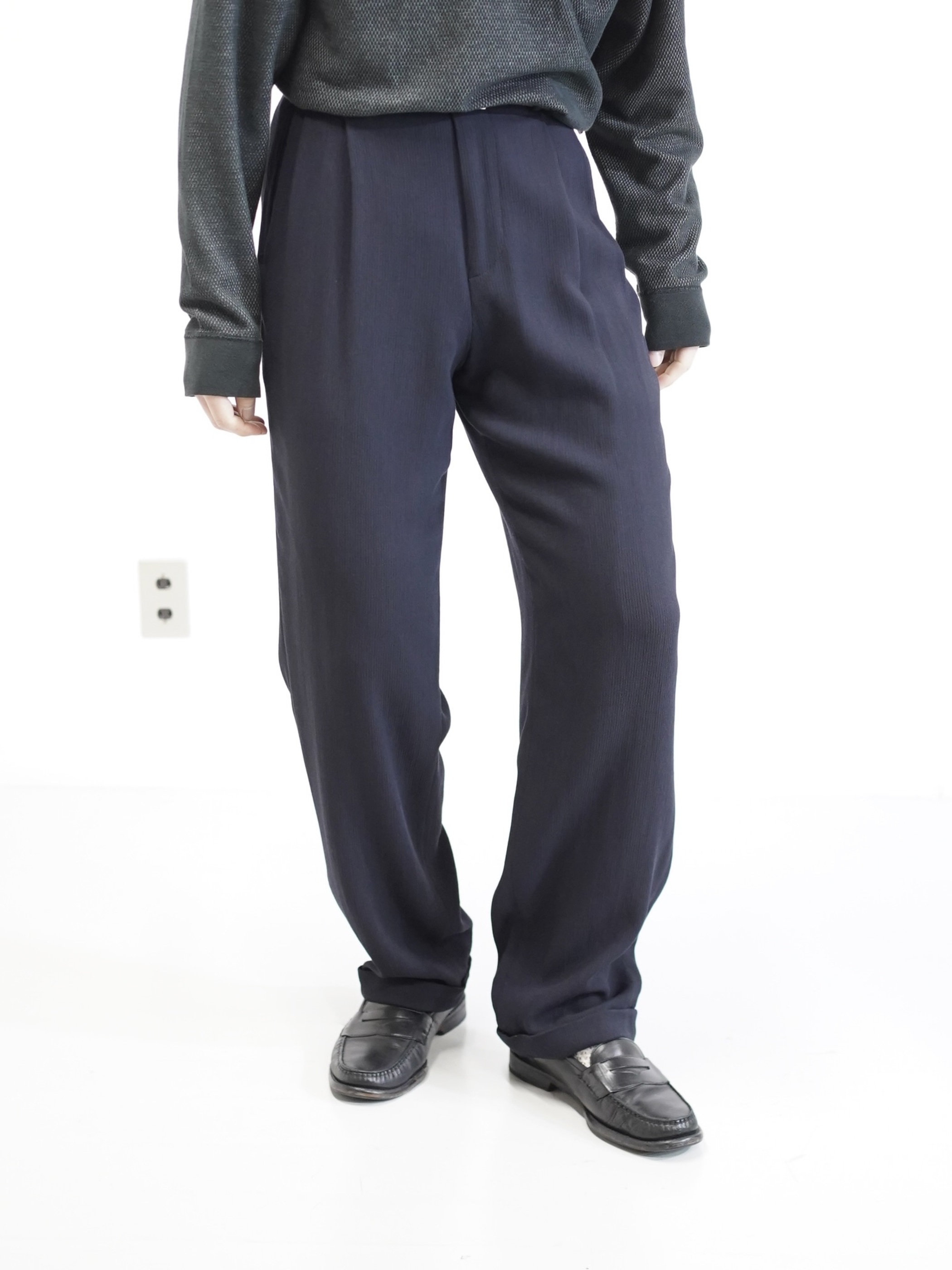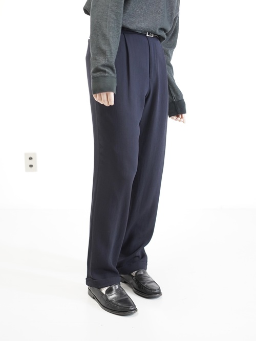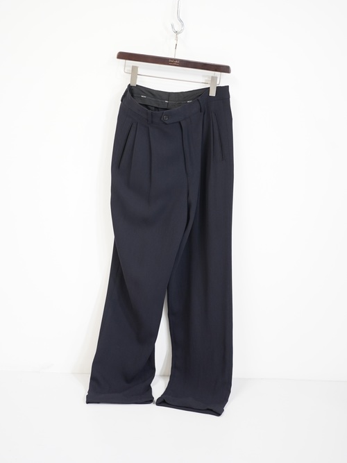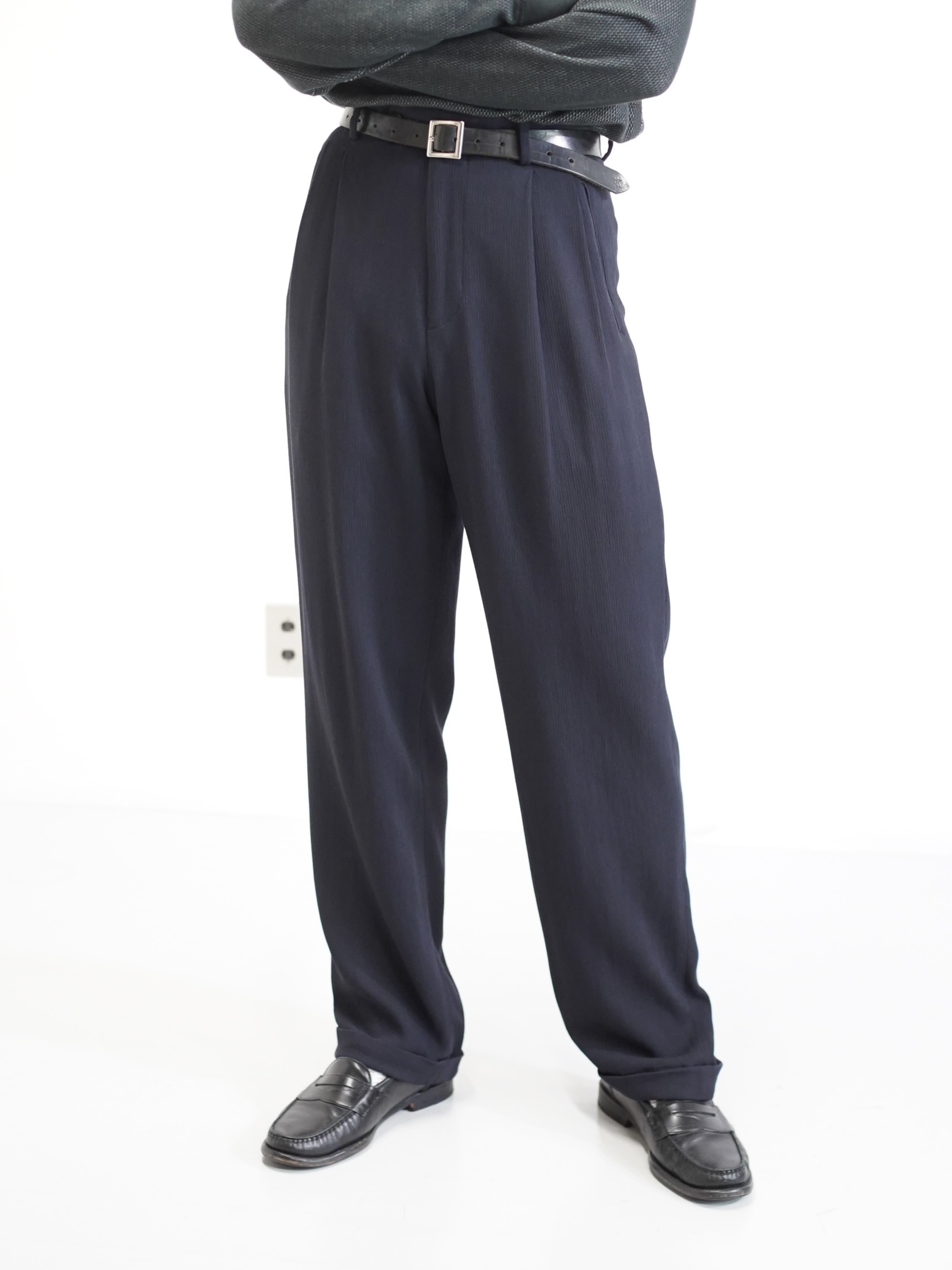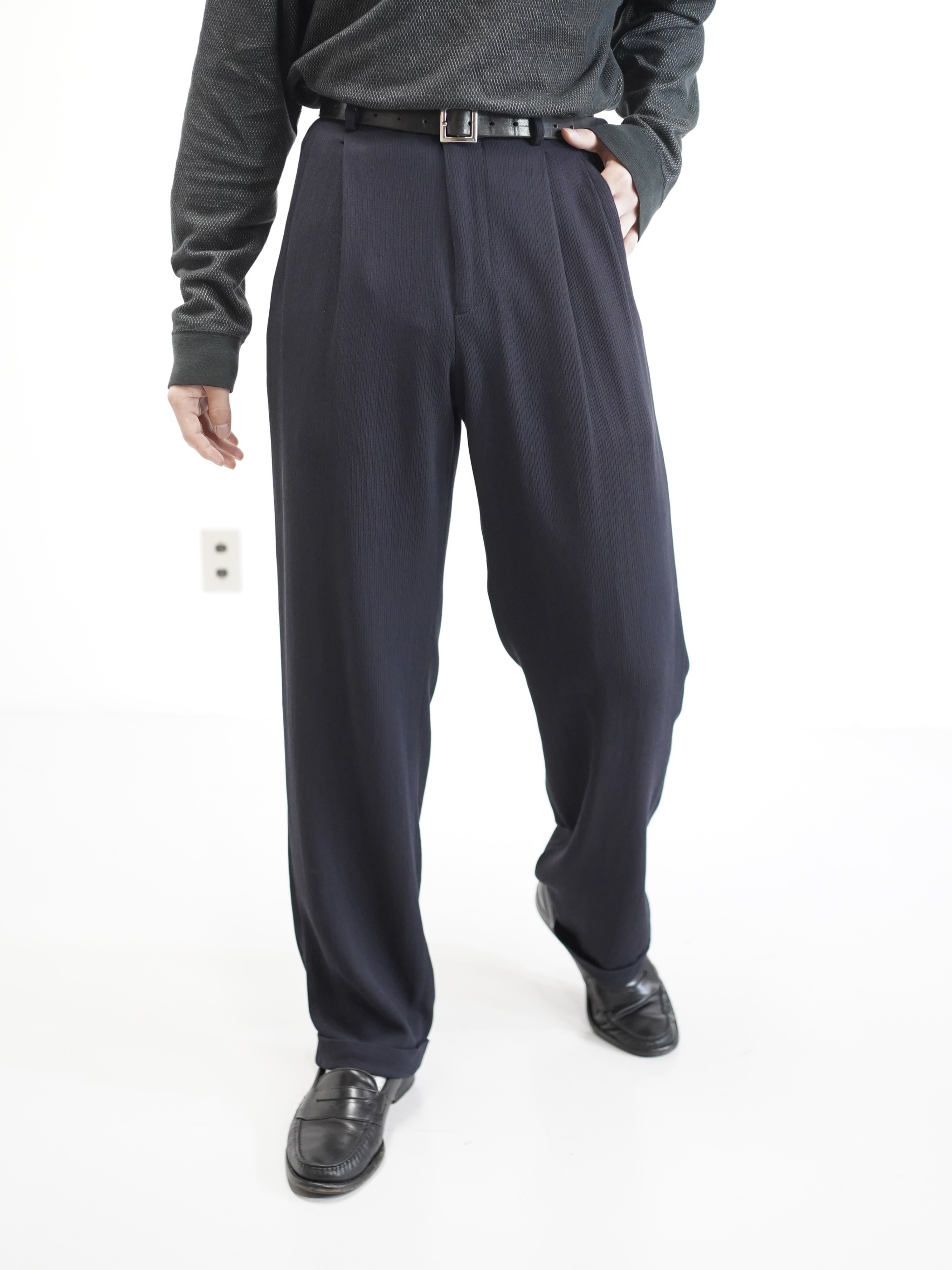 ・1990's DKNY woven stripe drape fabric 2-tuck trousers