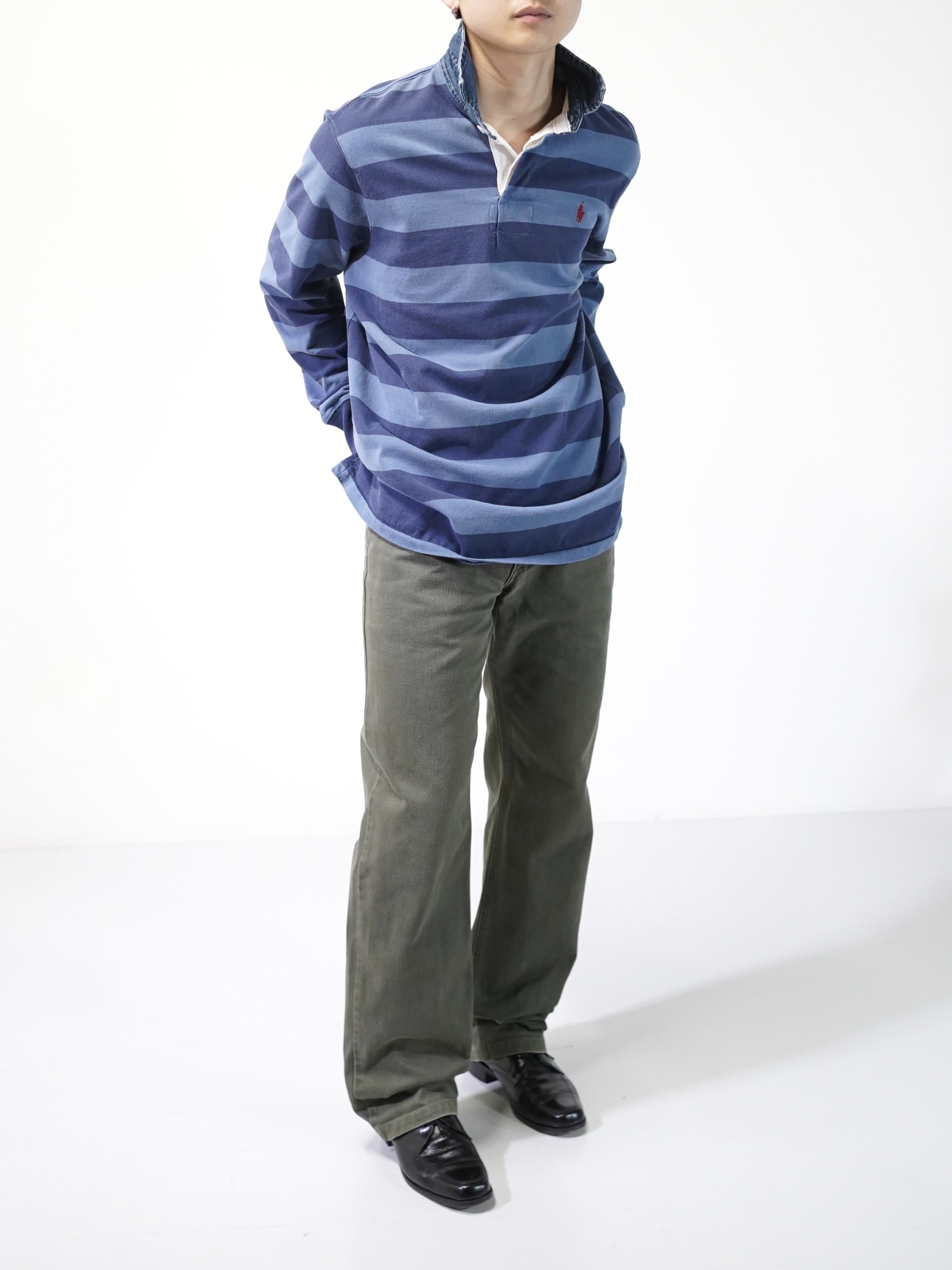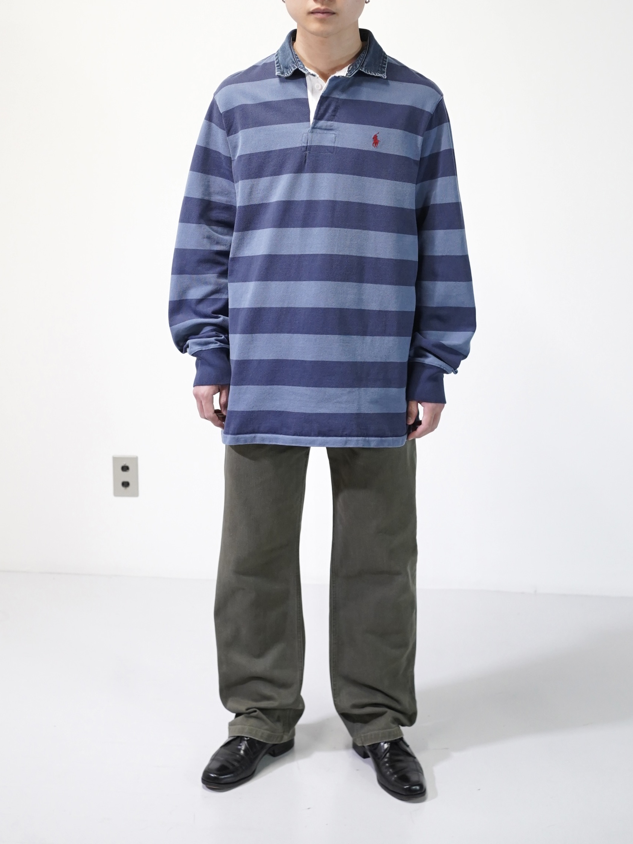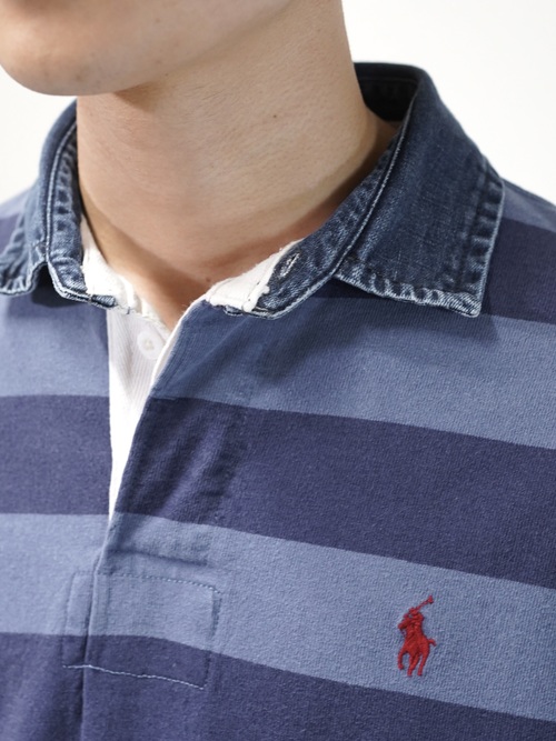 1990~00's Polo by Ralph Lauren custom-fit denim collar L/S polo shirts