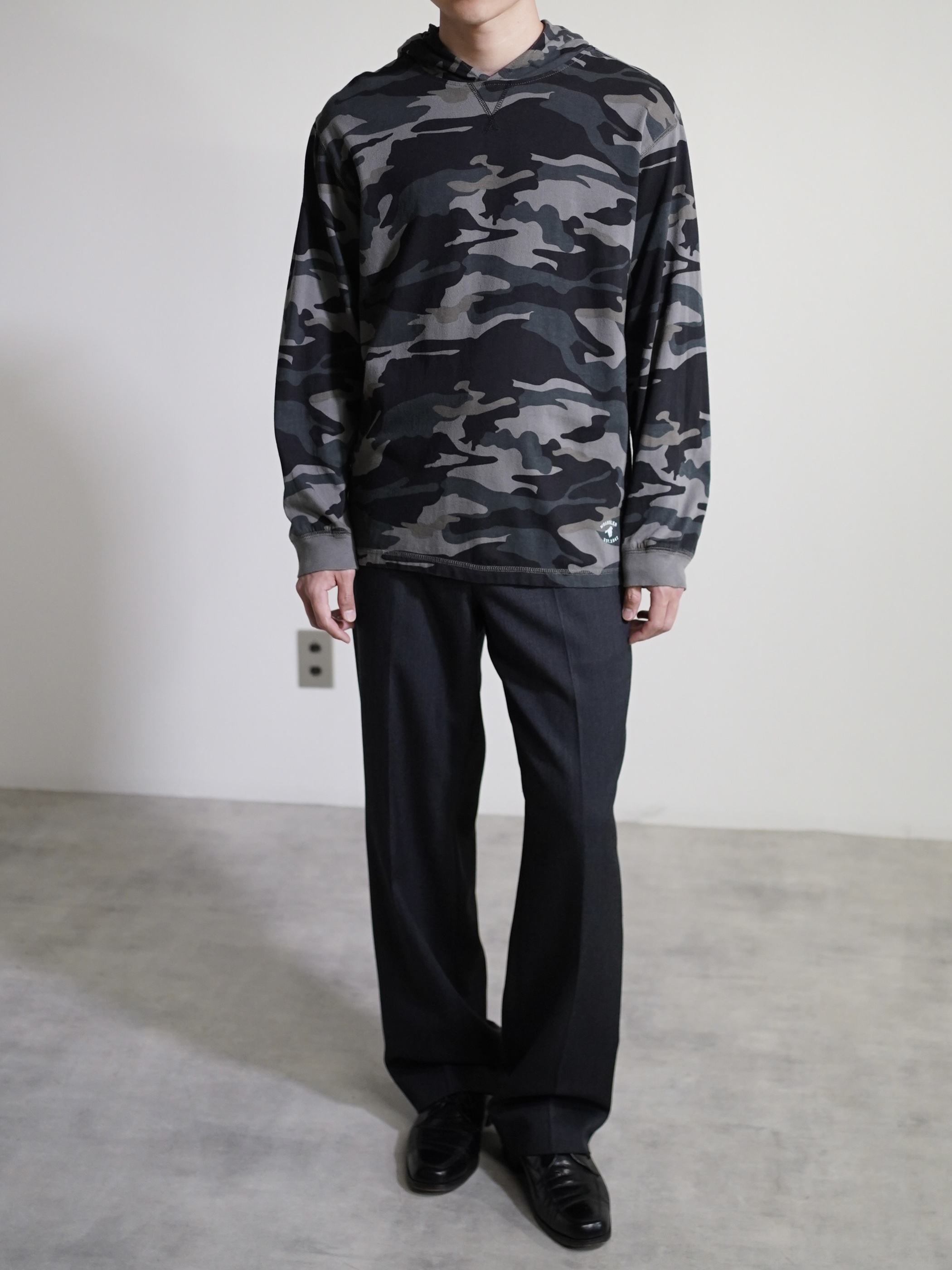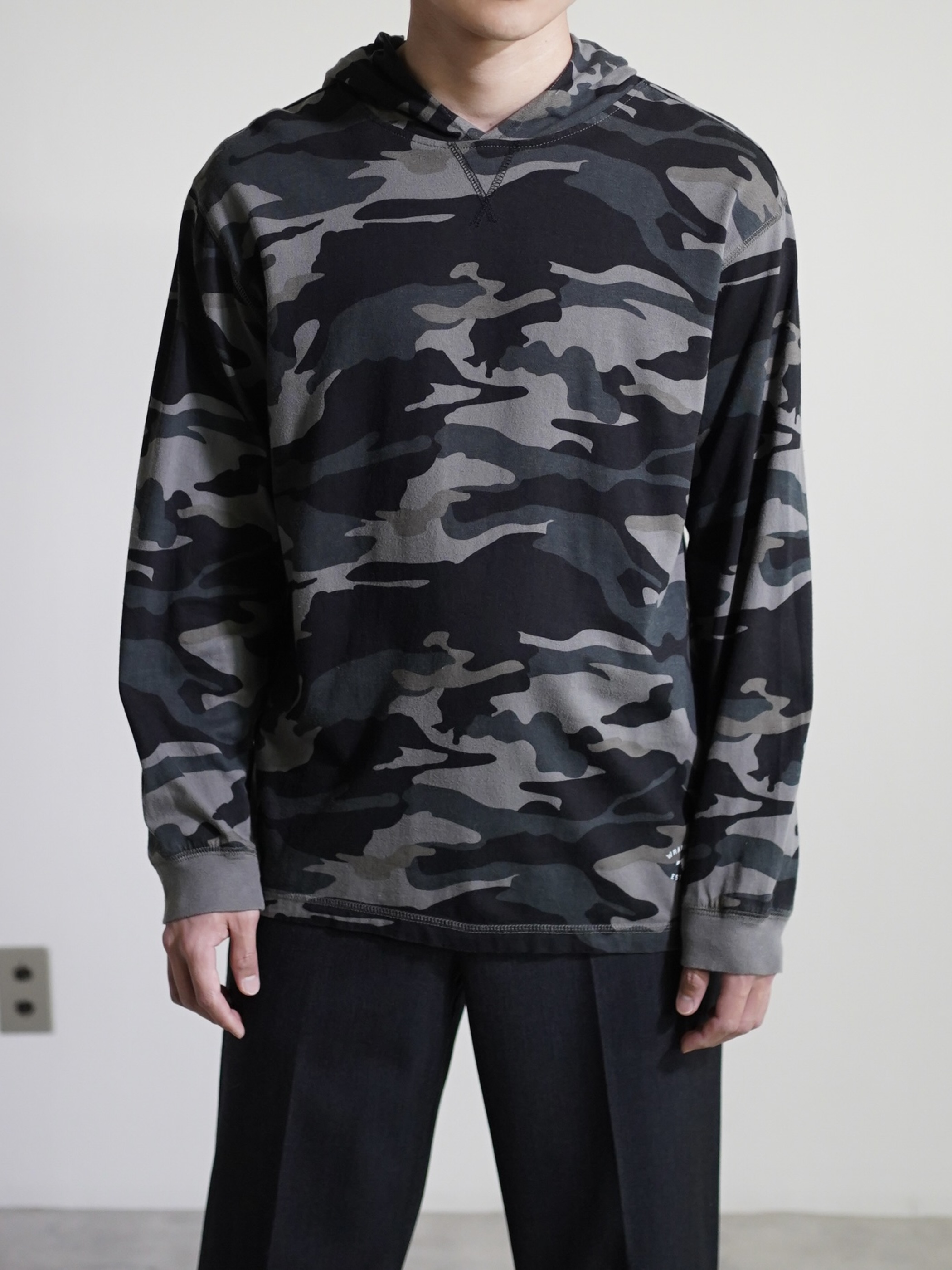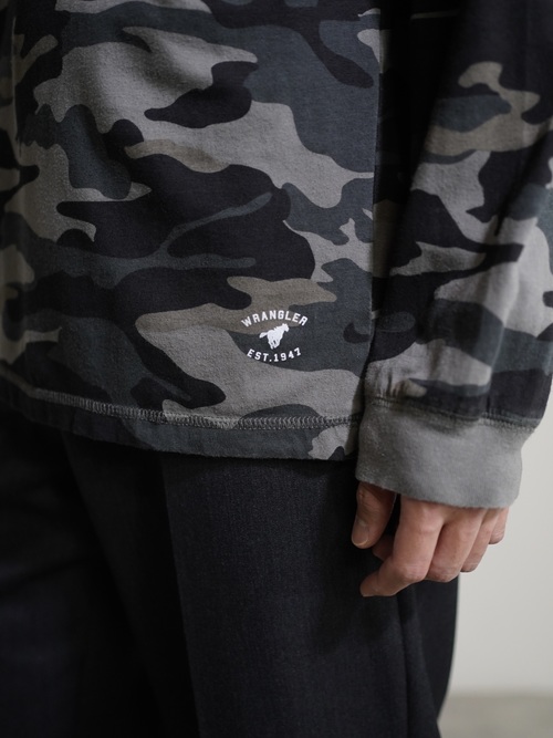 00's Wrangler monocrome camo L/S cut sew hoodie