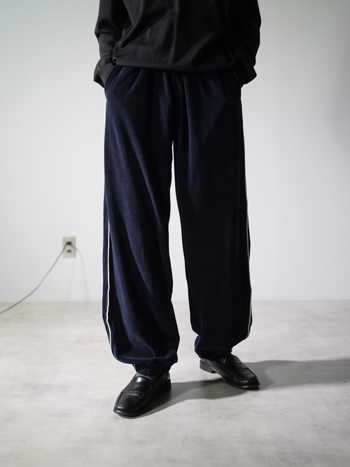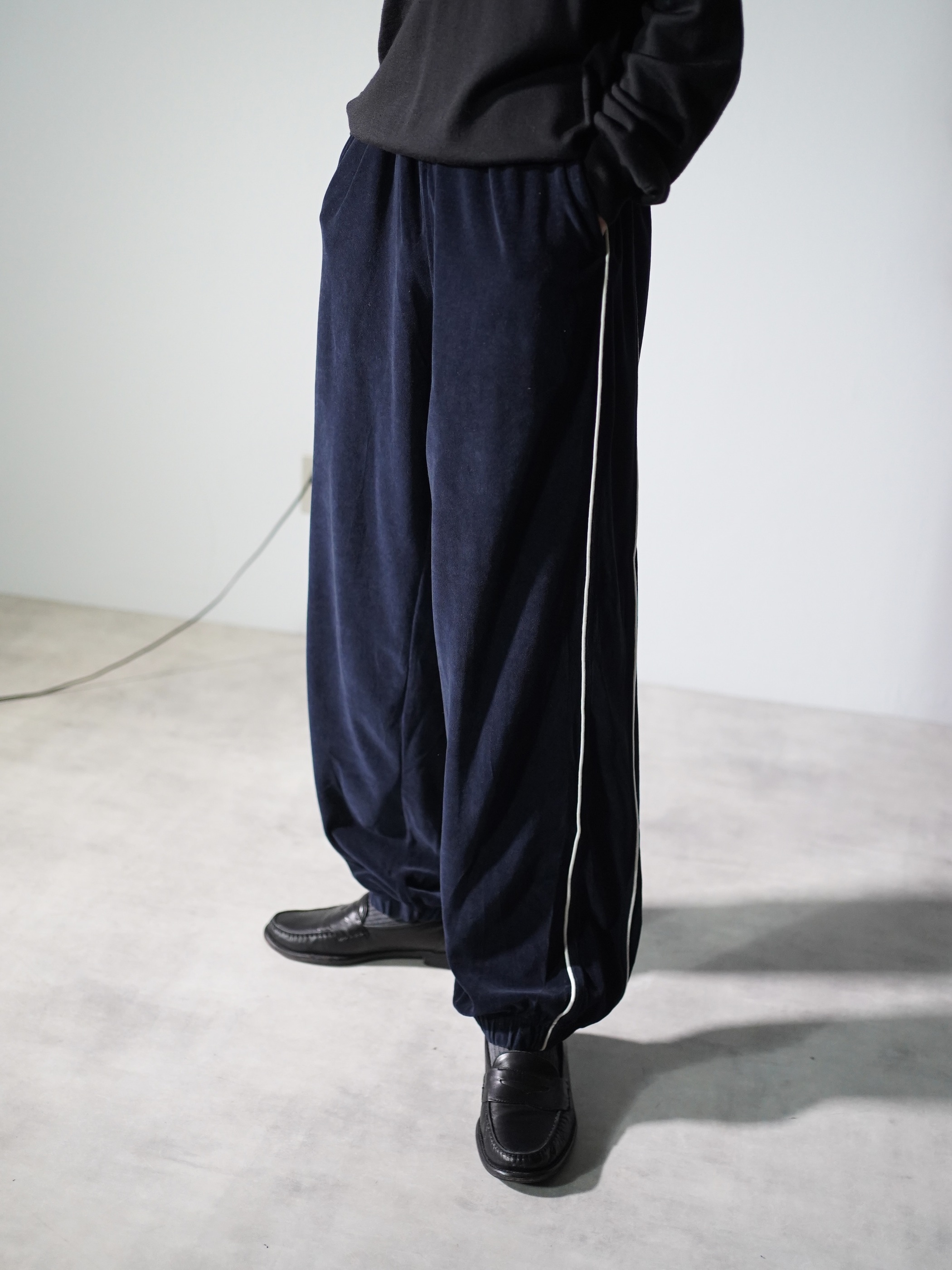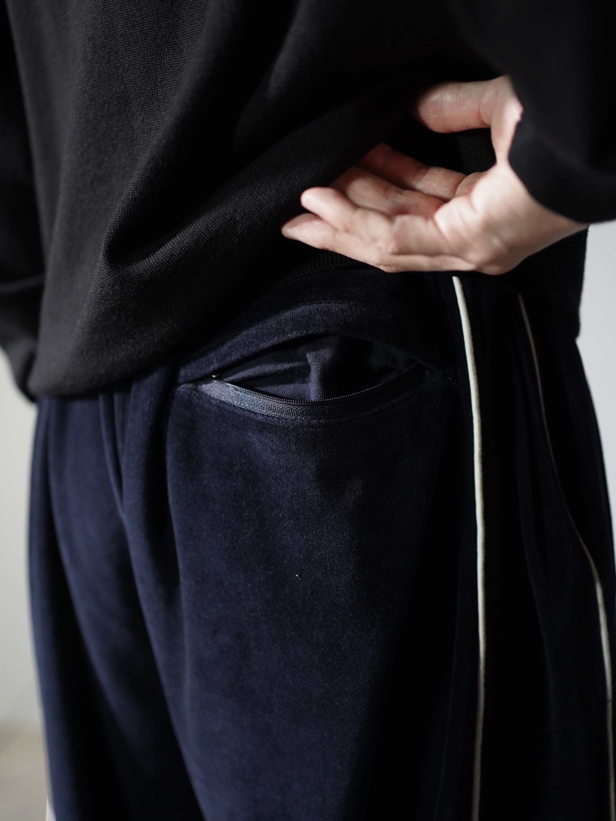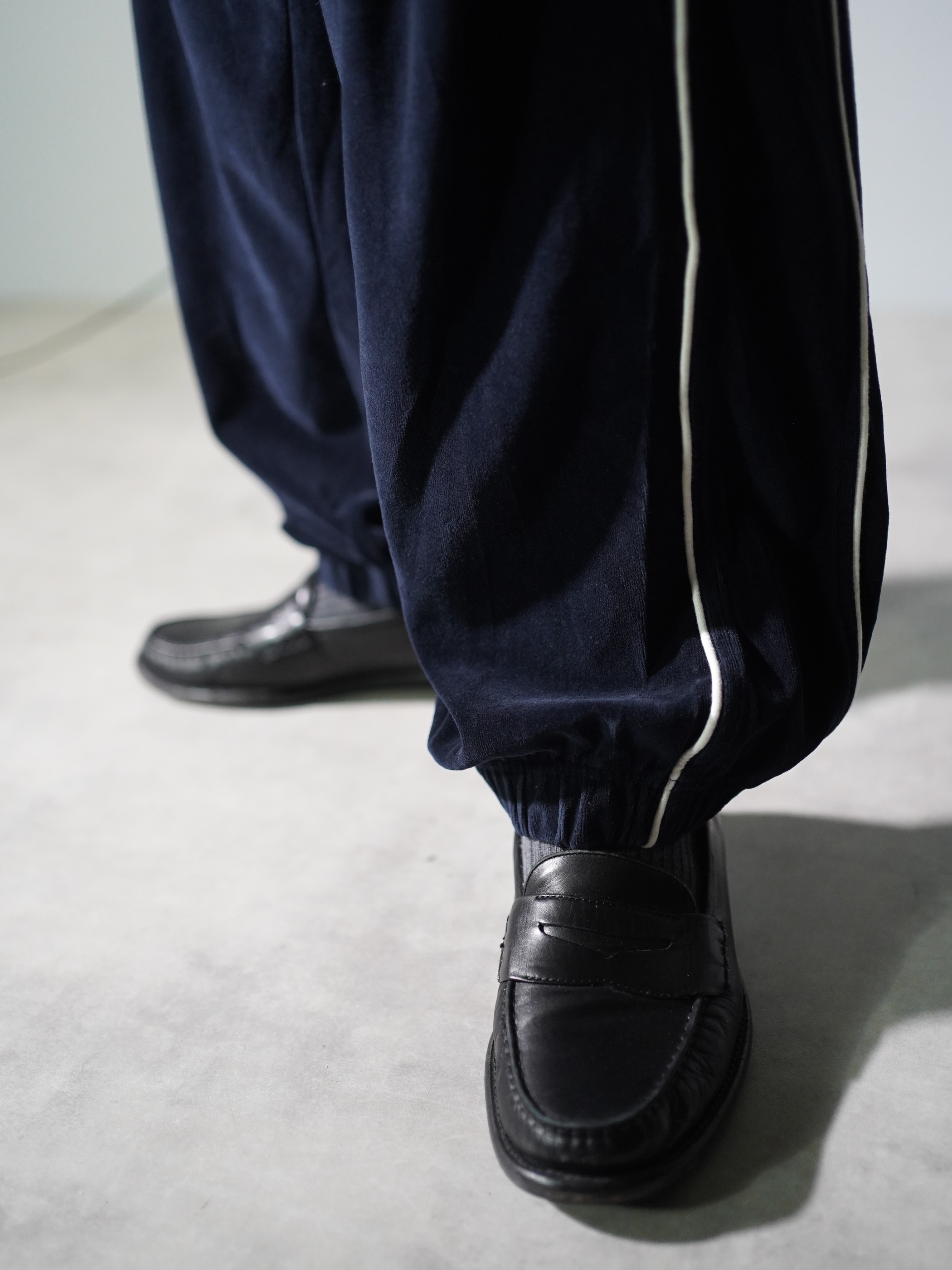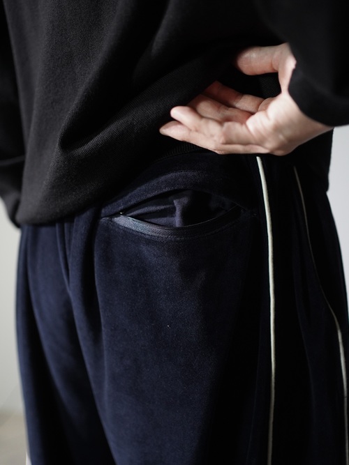 リブ付きのボリューム感は艶感のあるスウェットパンツの様です。