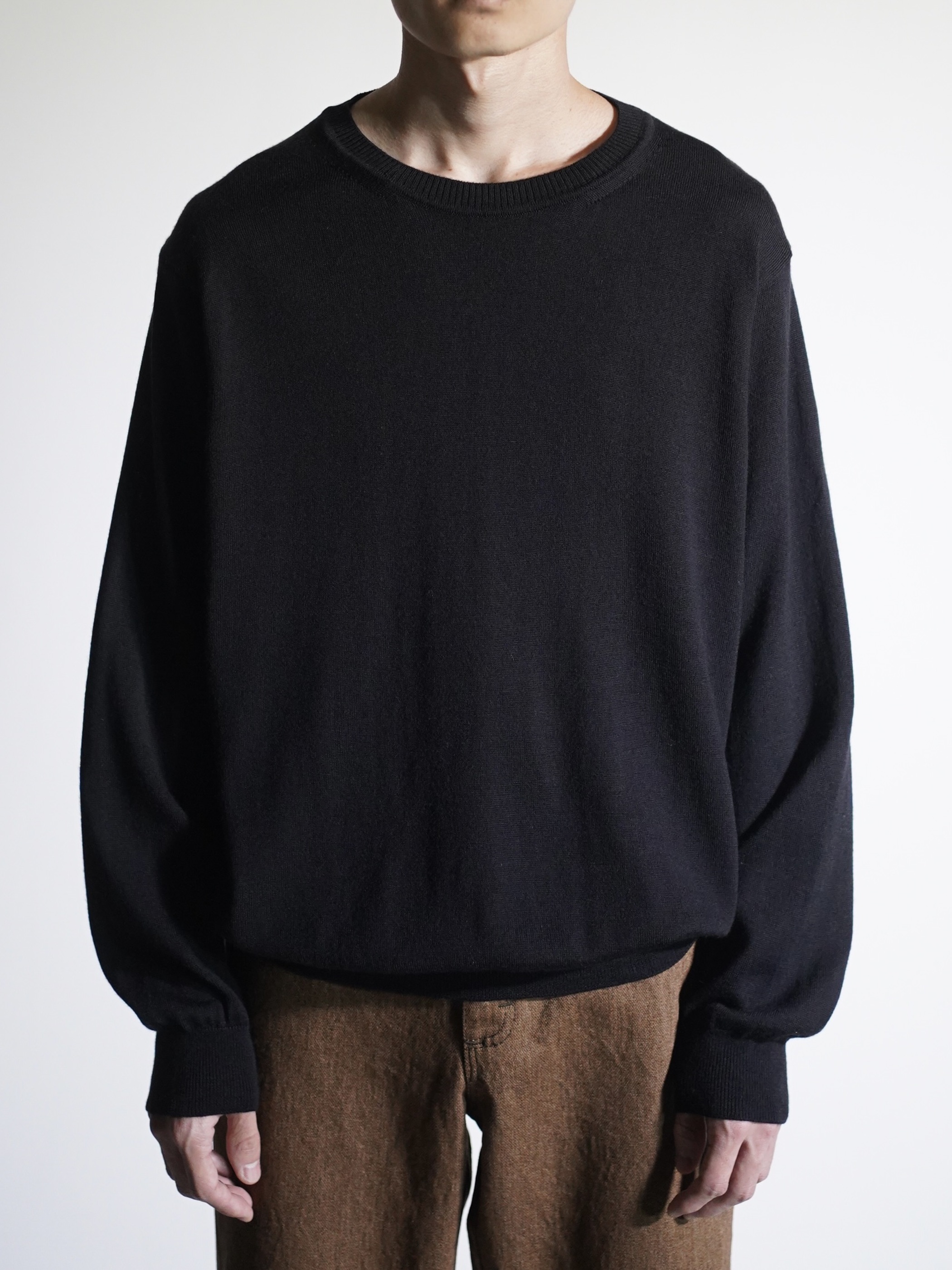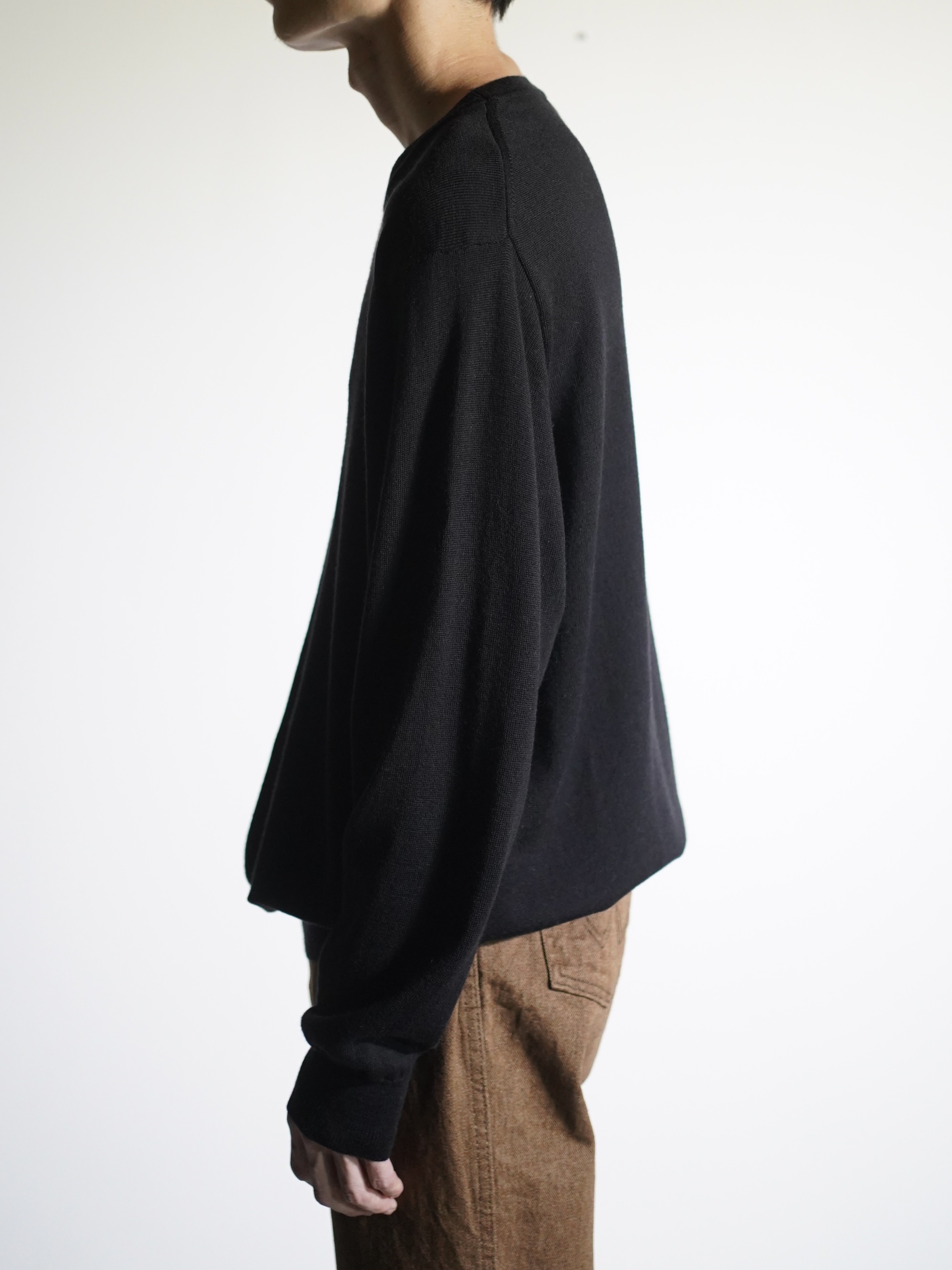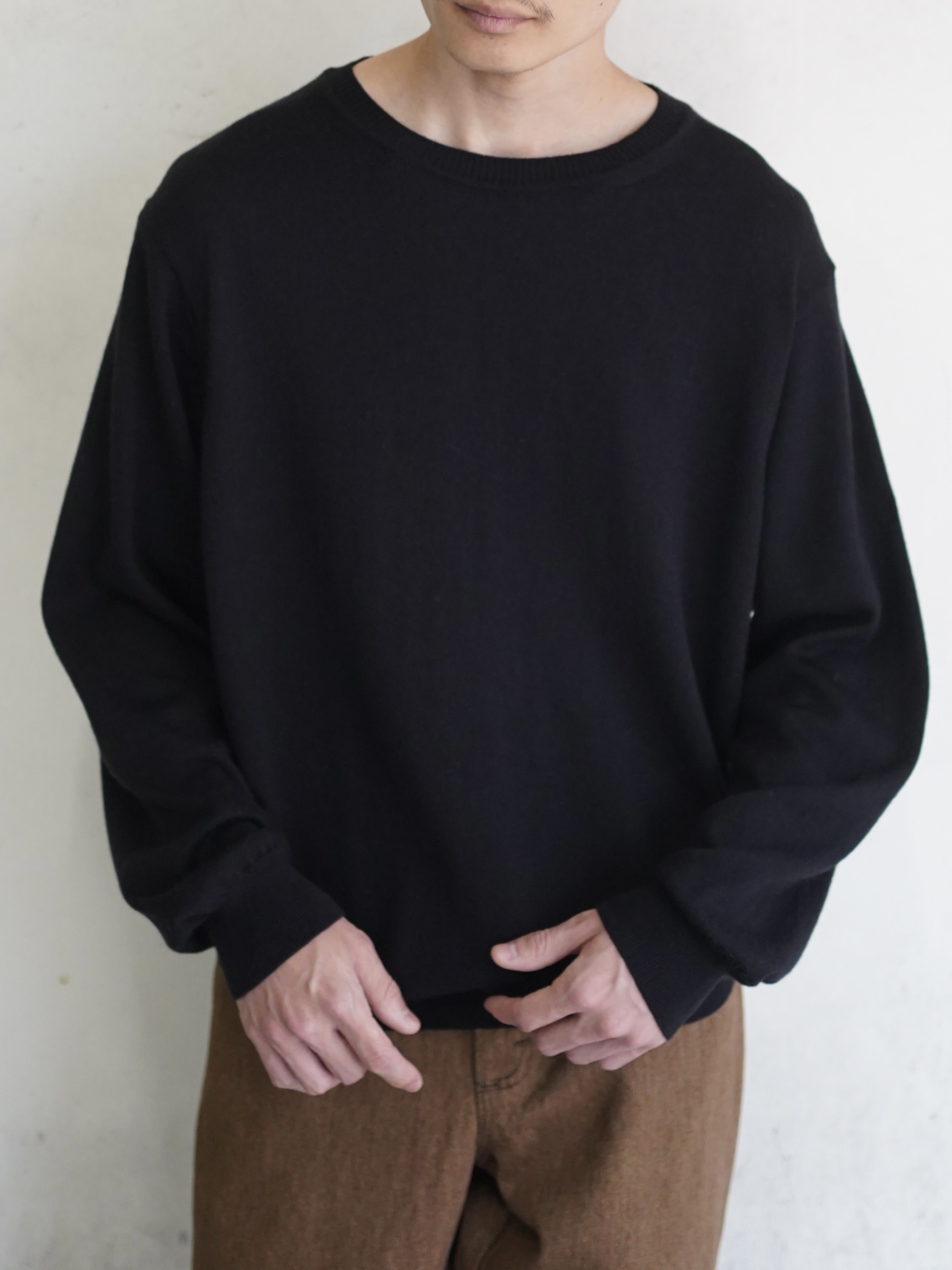 薄手のトップスはインナーでの着用のみになりがちですが、程良く袖、身幅に余白があるお陰で一枚でも様になります。