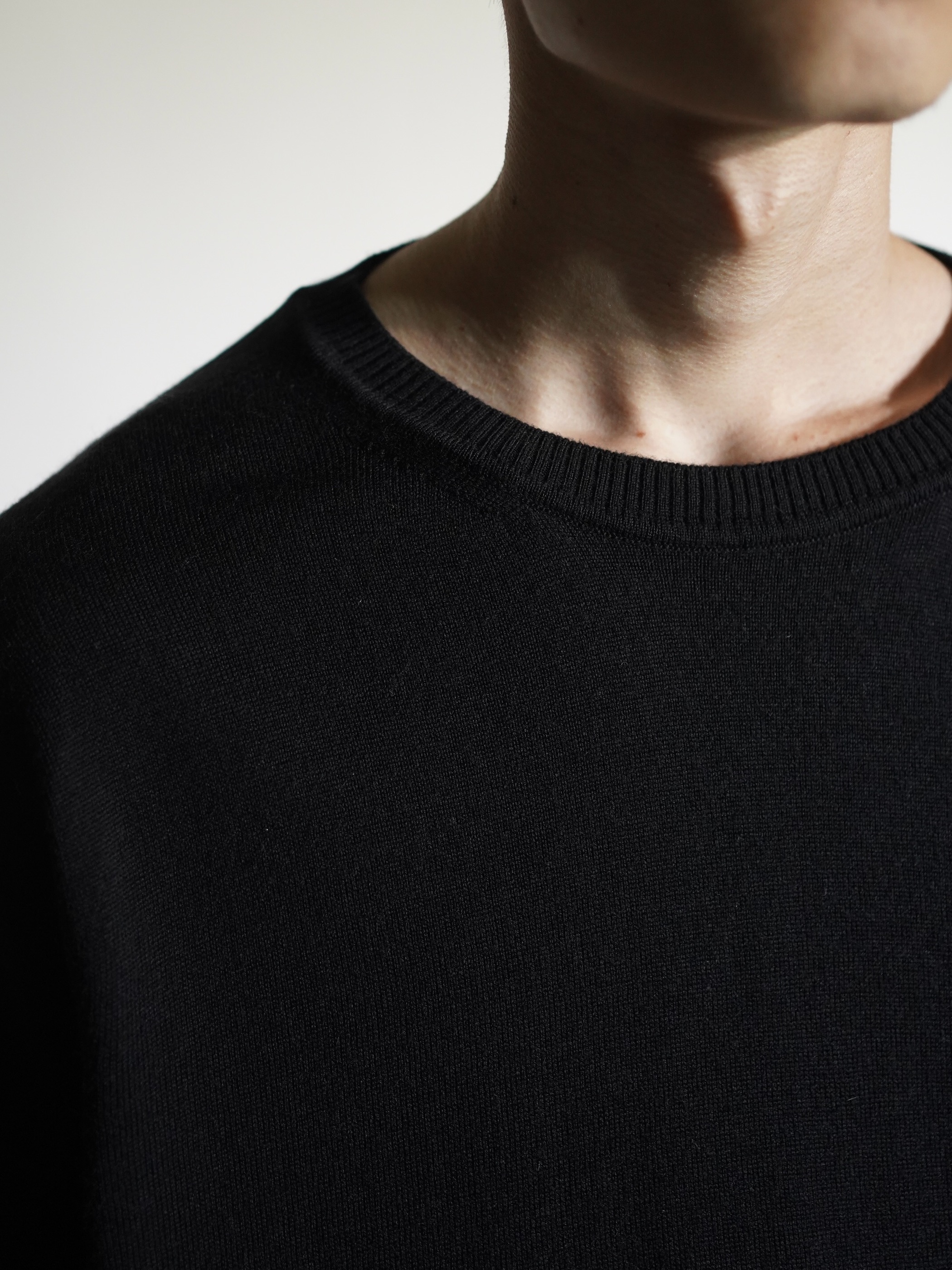 薄く上質なニット素材はシンプルな見た目ながら、品のある雰囲気。