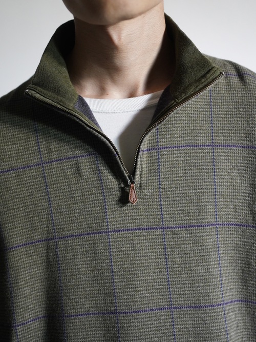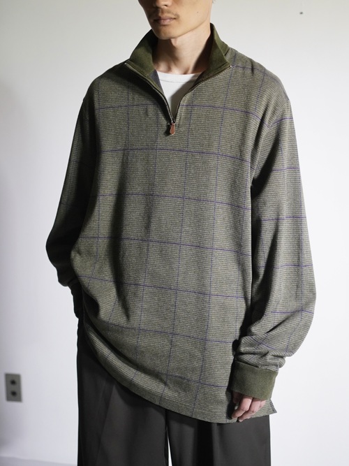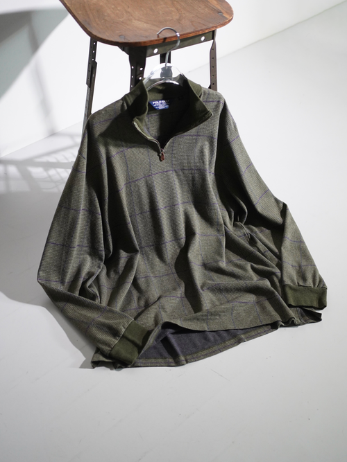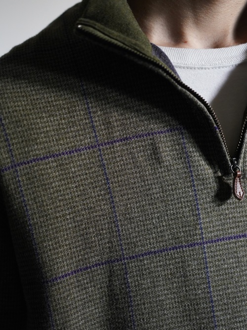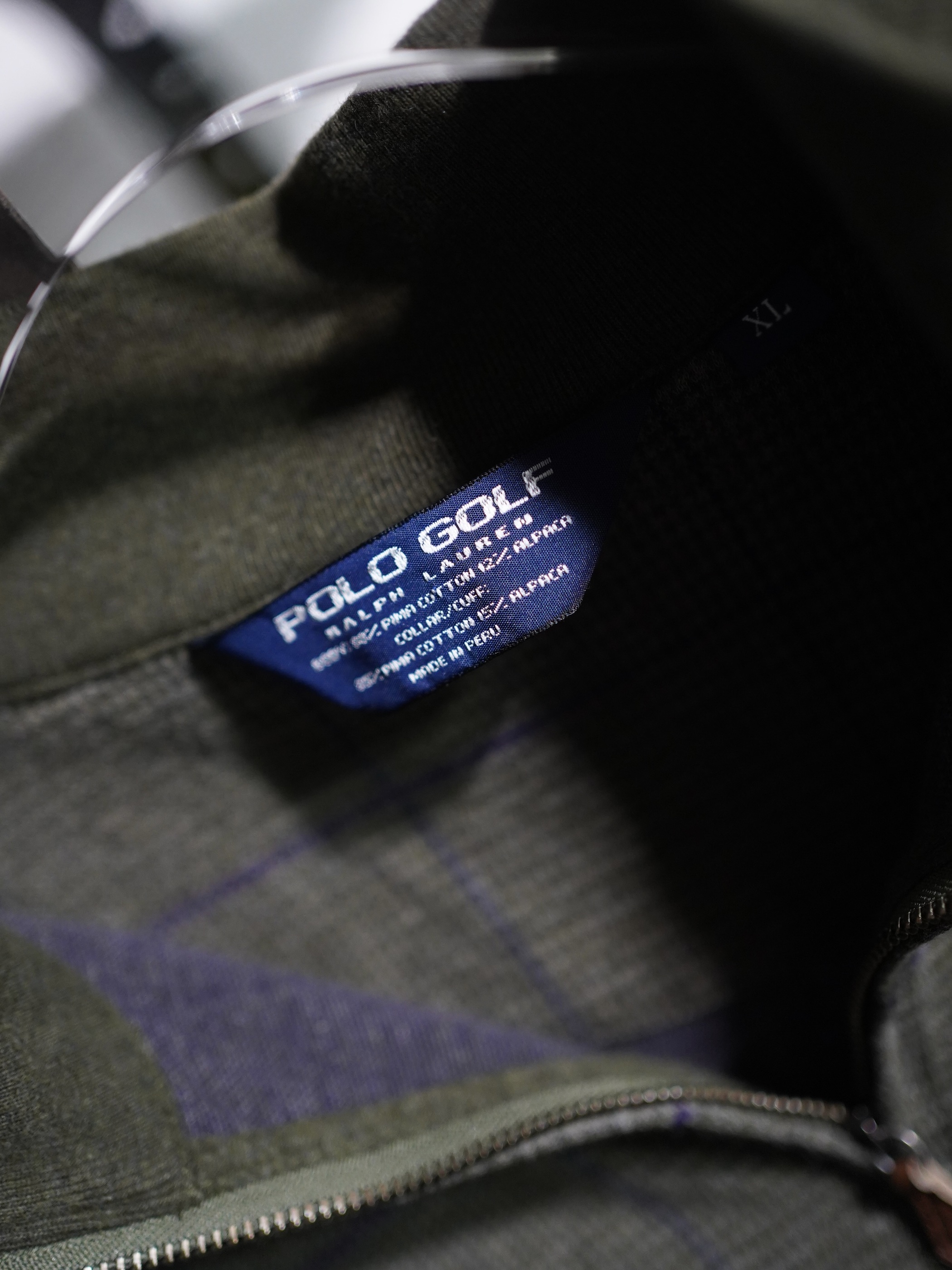 1990's POLO GOLF Pima cotton/Alpaca half-zip knit sew tops/Made in Peru