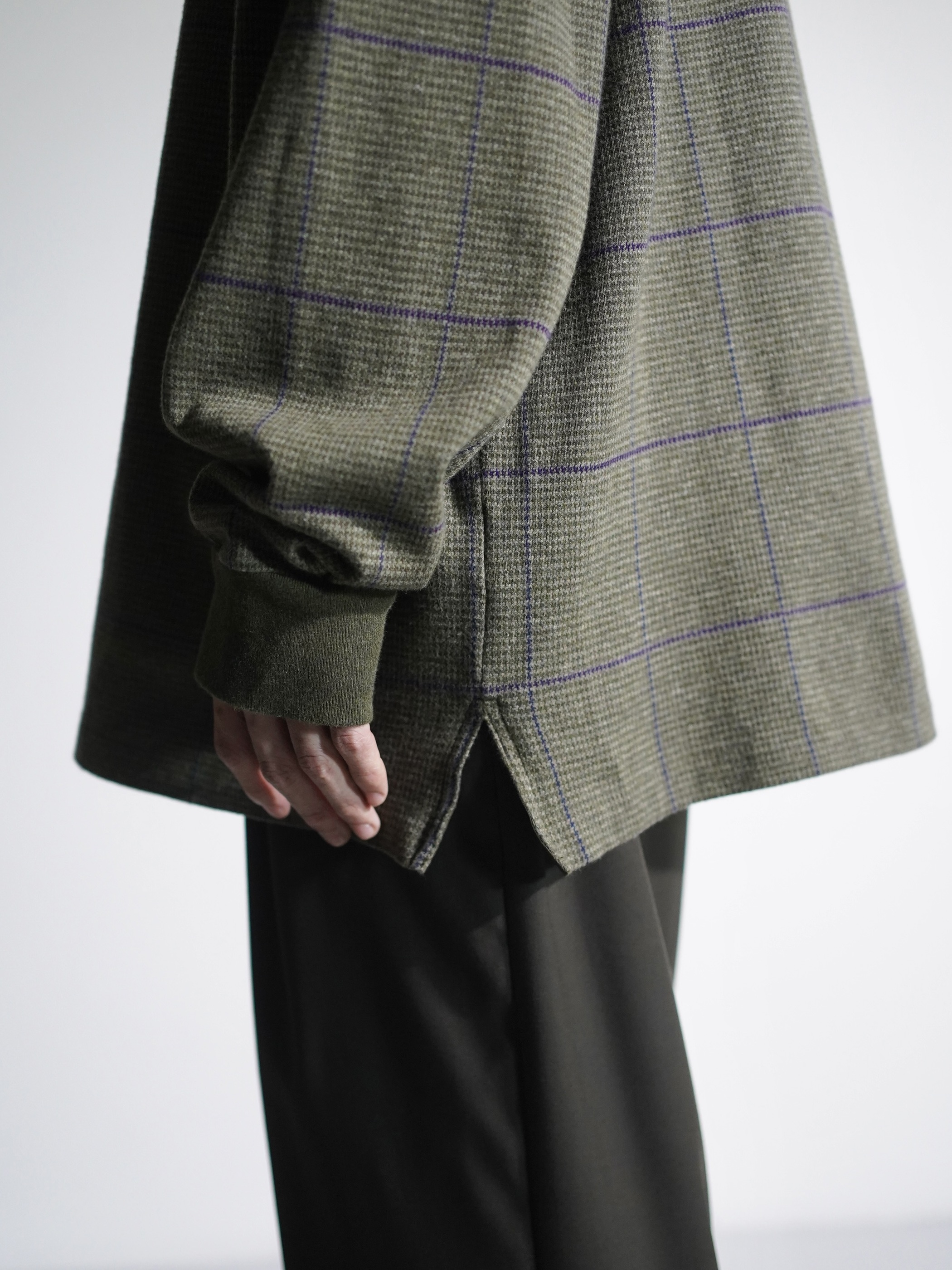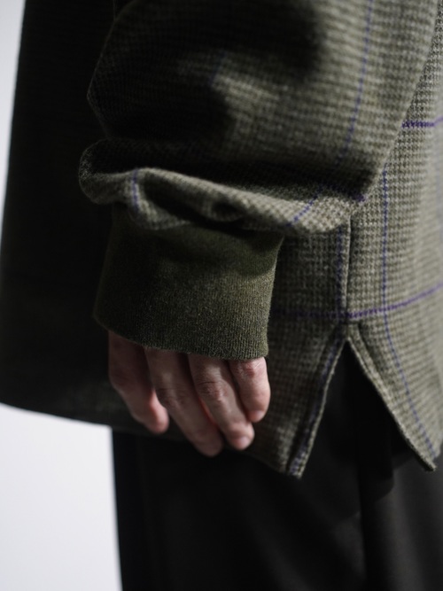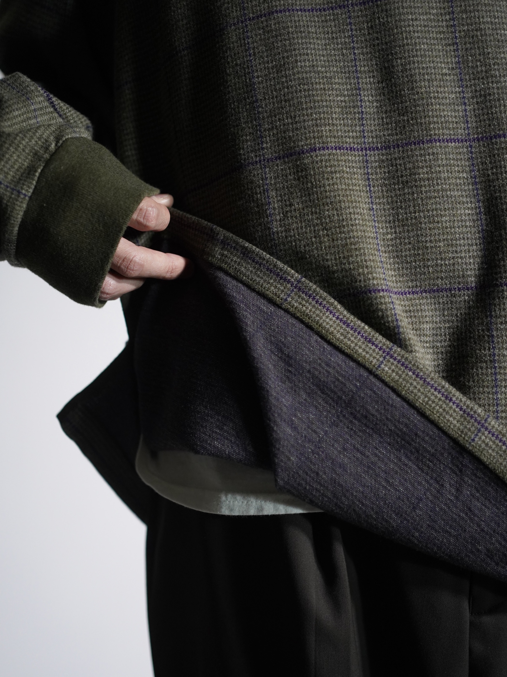 千鳥格子のボディと、リブの部分で3%のみ素材配分を変える拘り様。