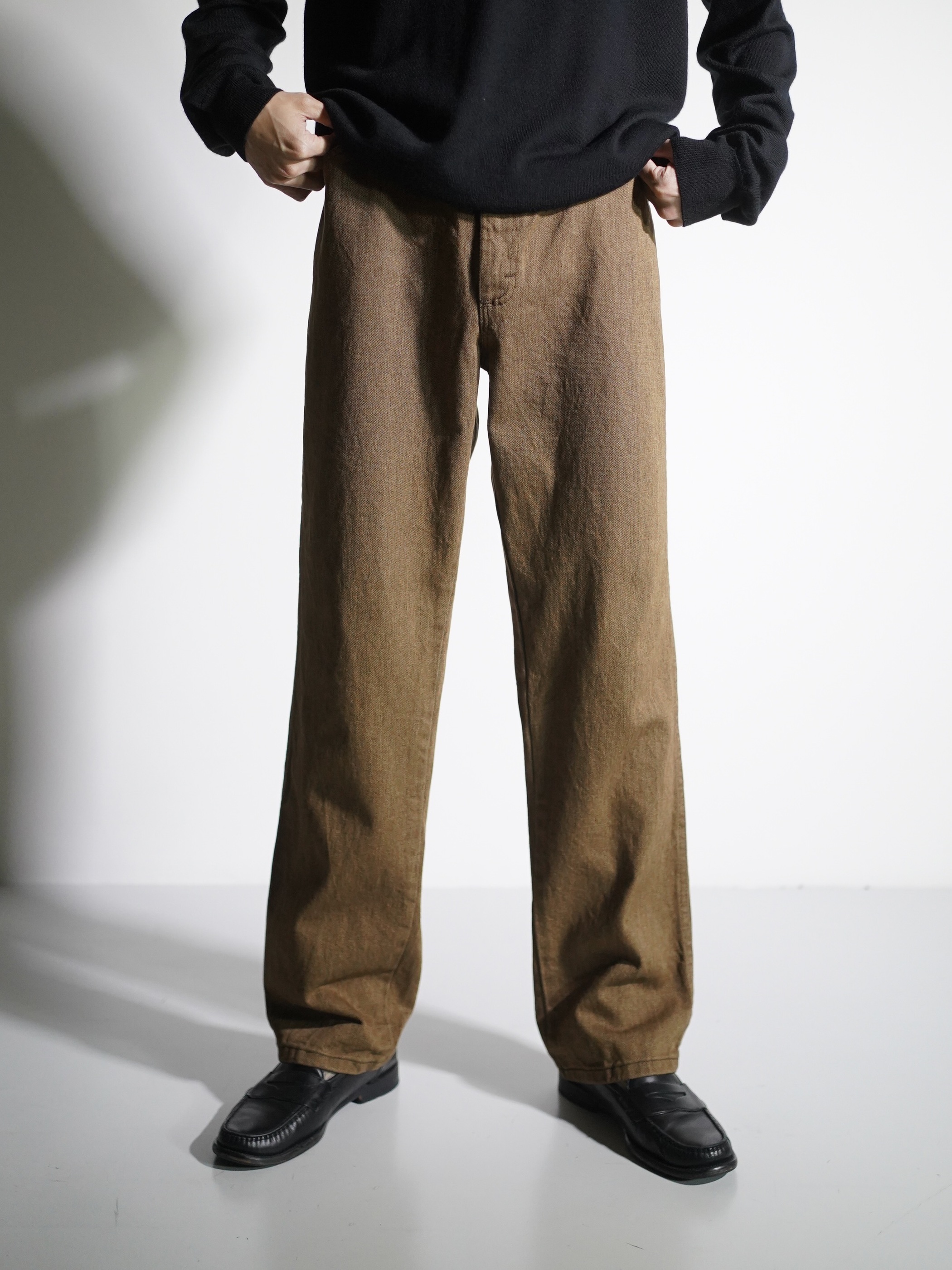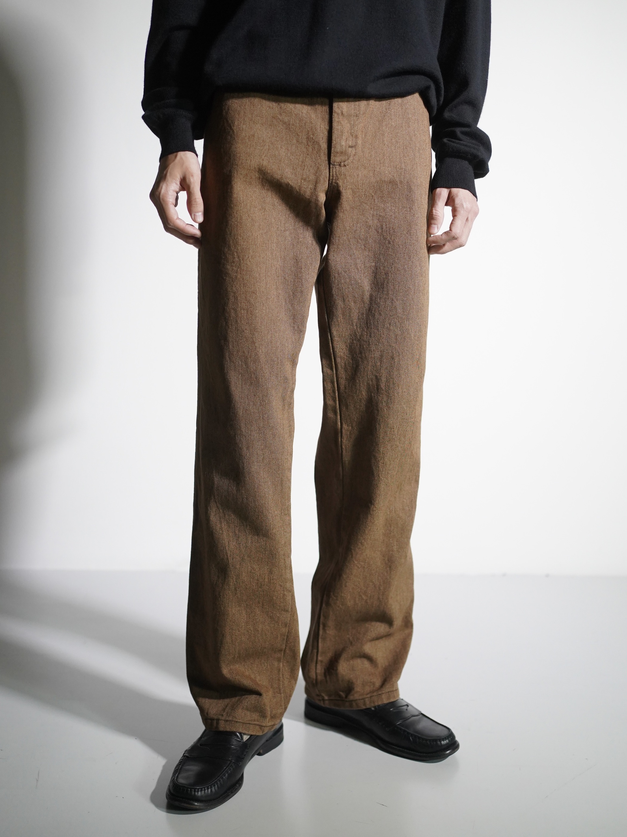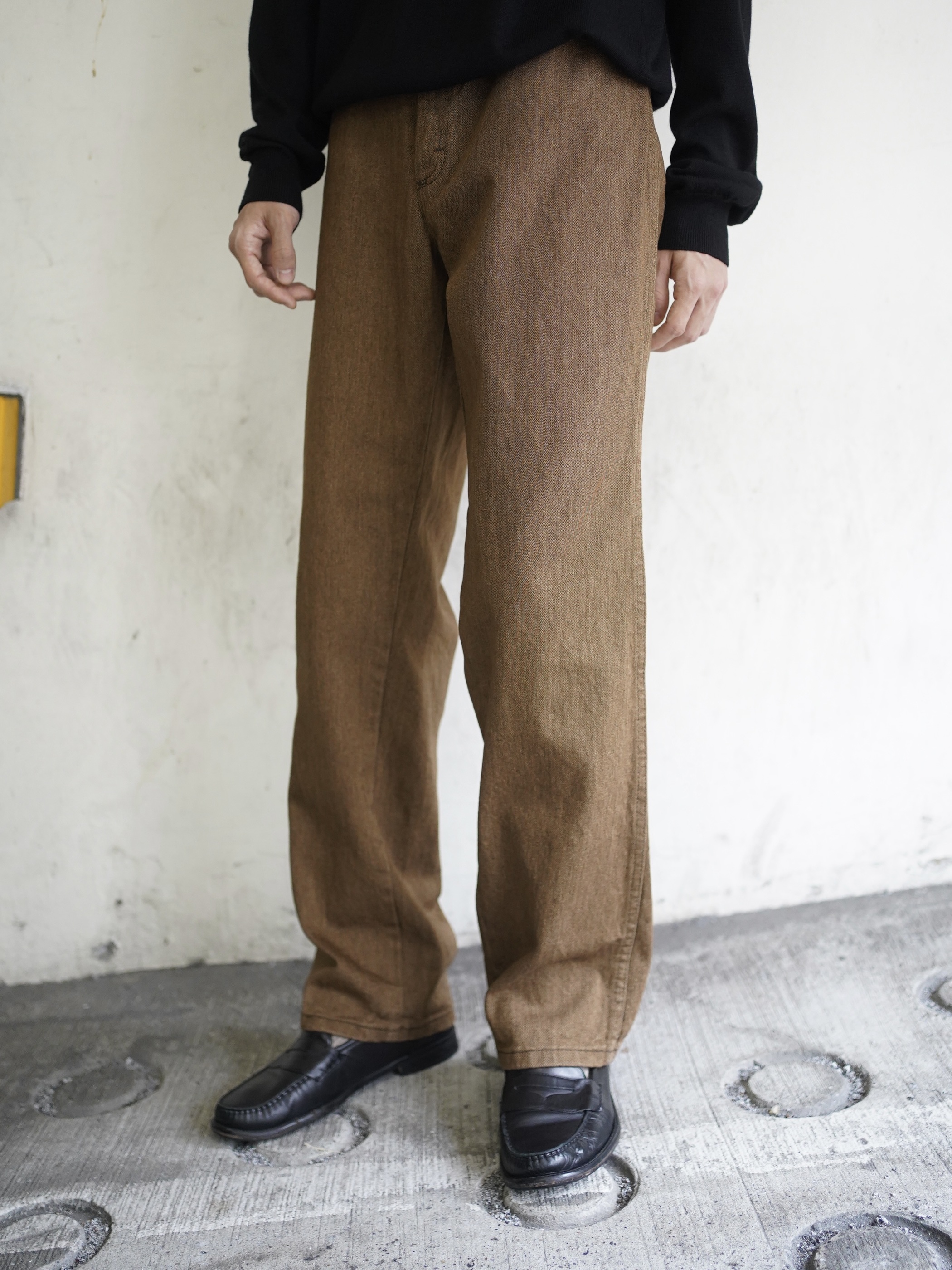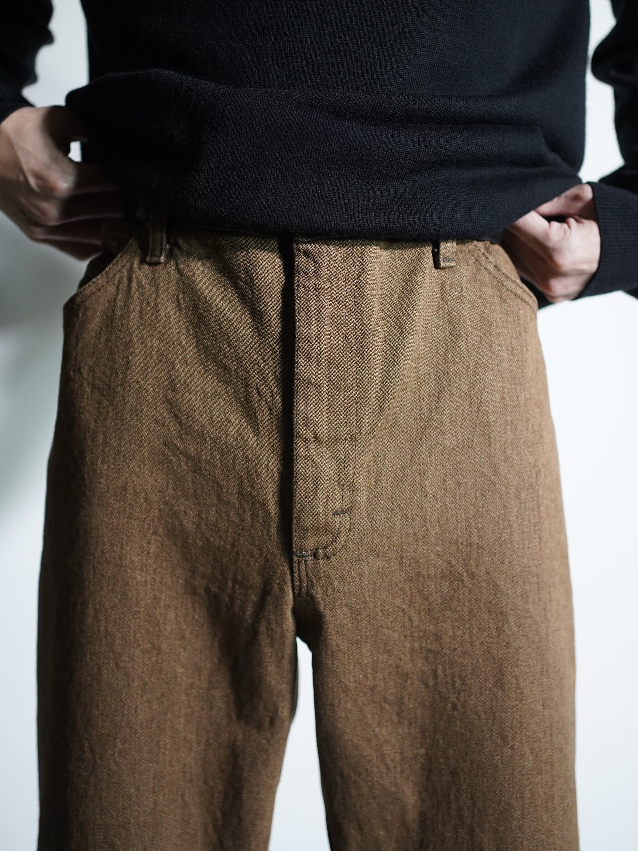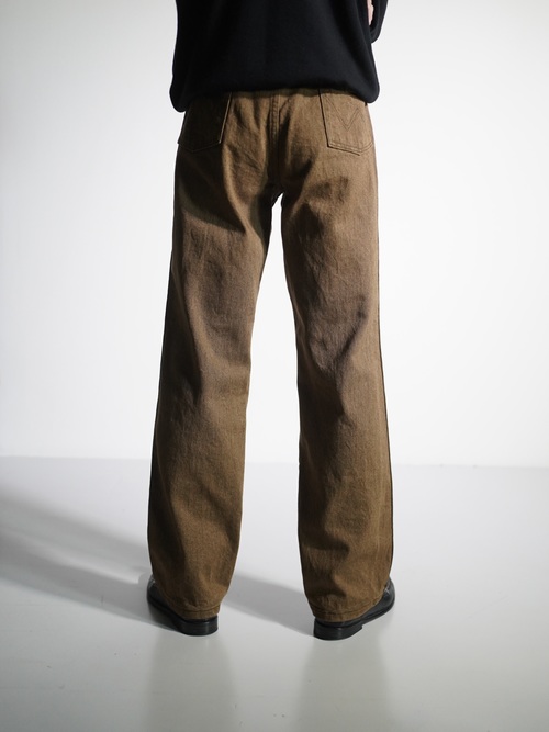 デニム(綾織生地)ではなく、打ち込みの高い平織生地であるダックを用いた5Pジーンズ。