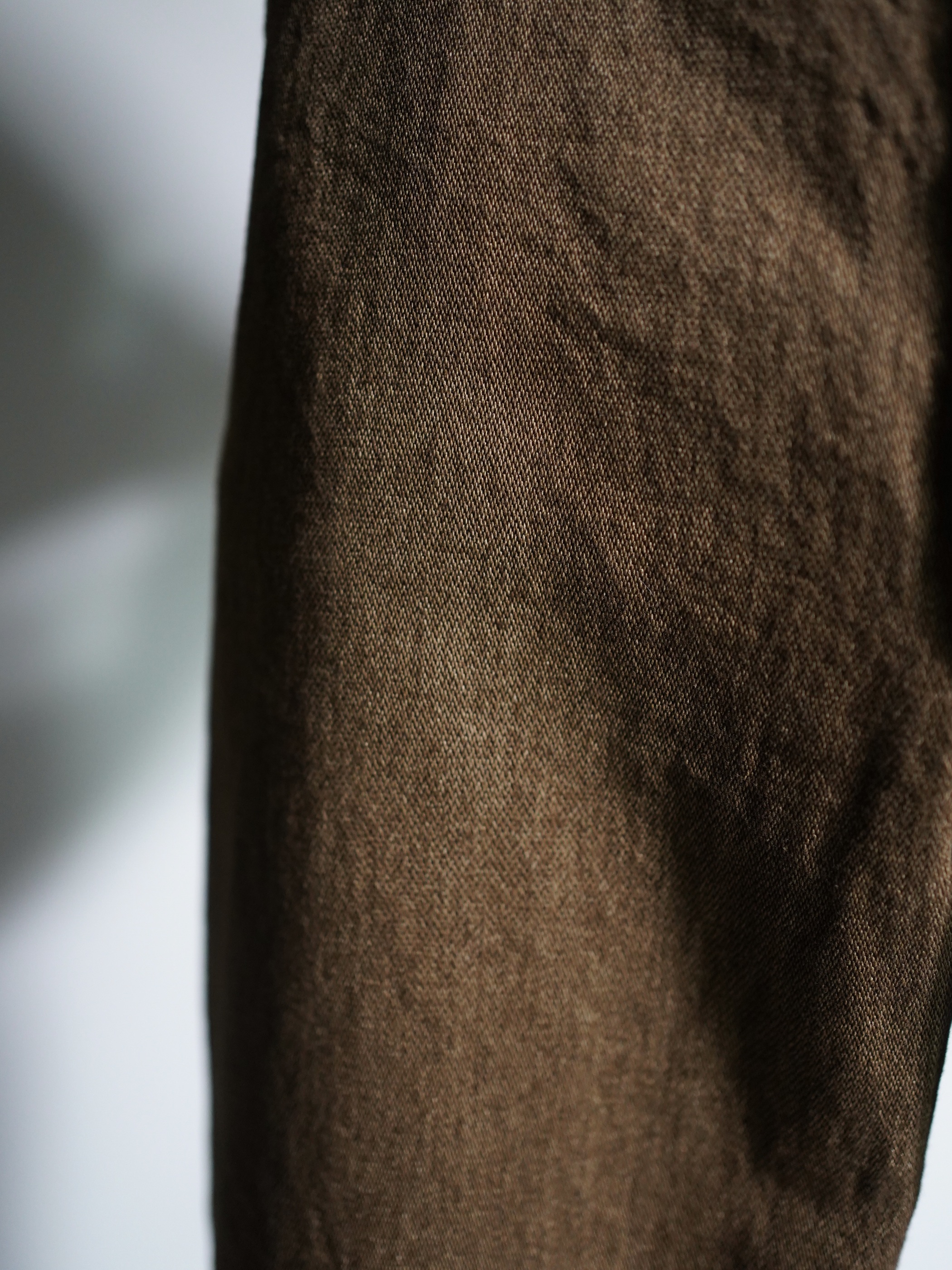 色落ちはデニムのような落ち方ではなく、全体的にじんわりと薄くなっていき味が出ていきます。