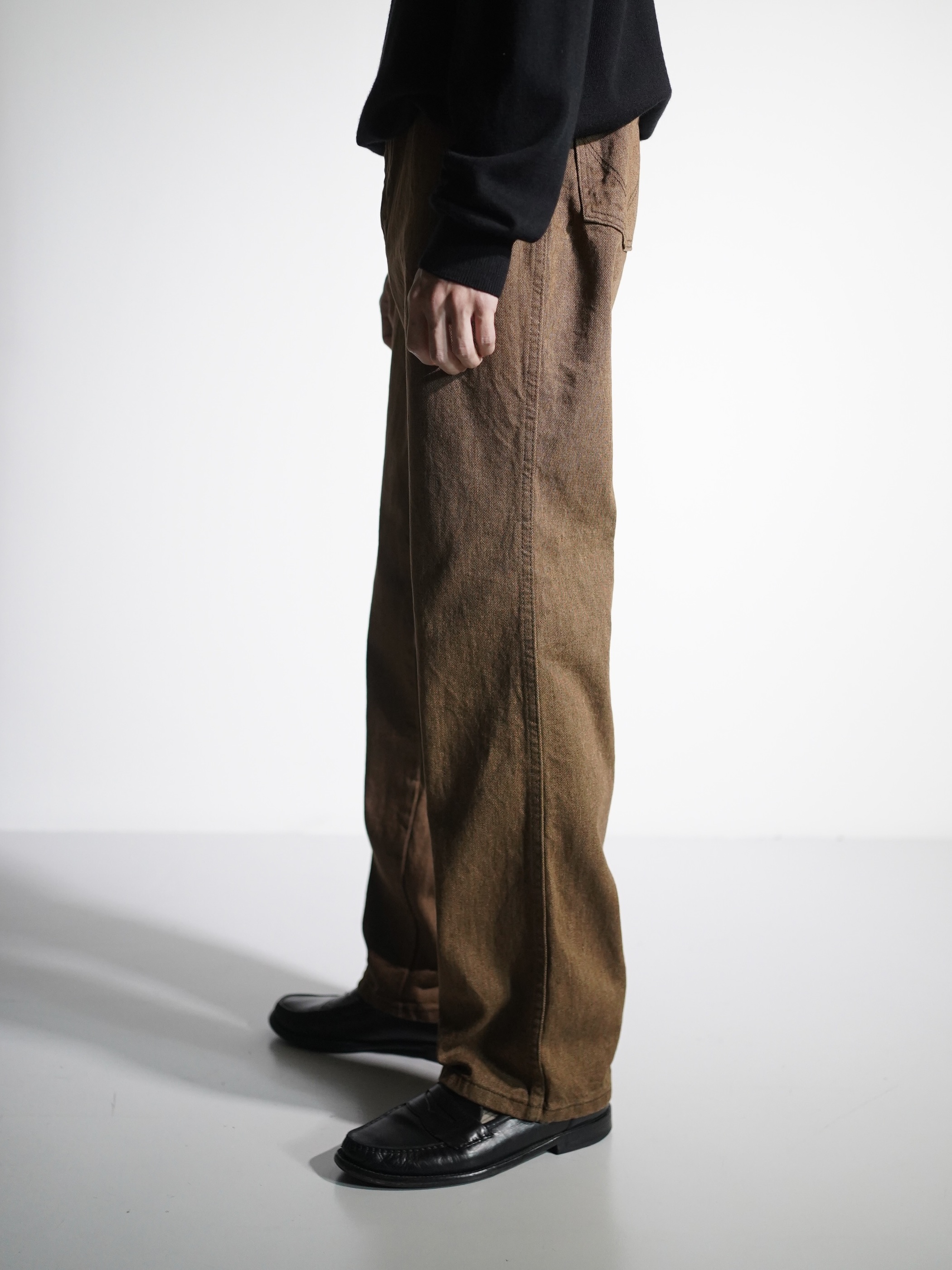 ムラがない表情のお陰でワークパンツですがカジュアルになり過ぎず、綺麗な合わせやトップスとも相性が良い。