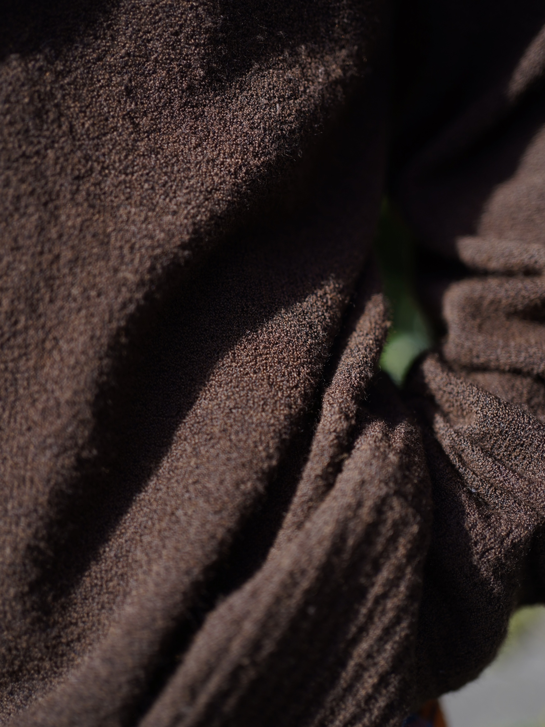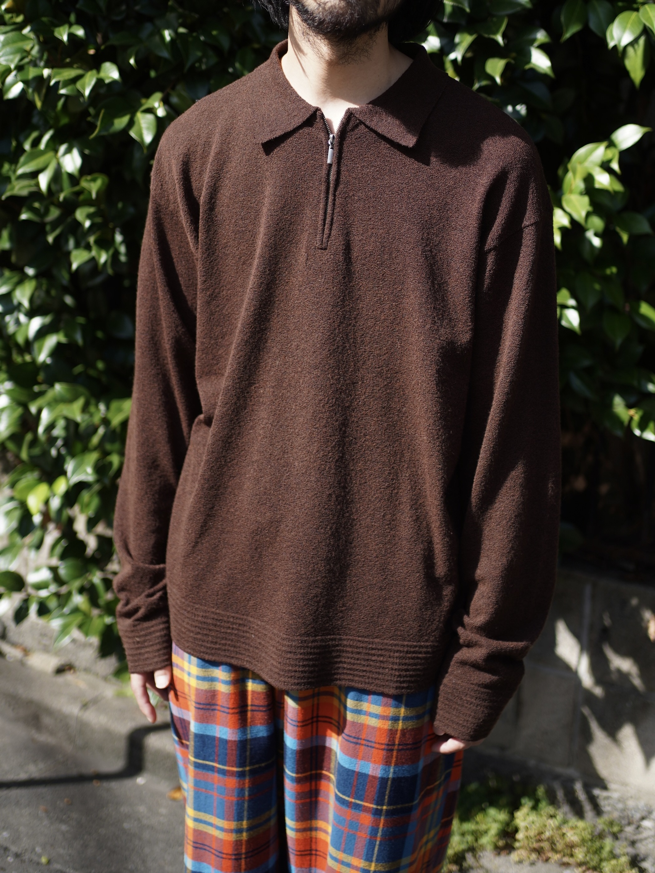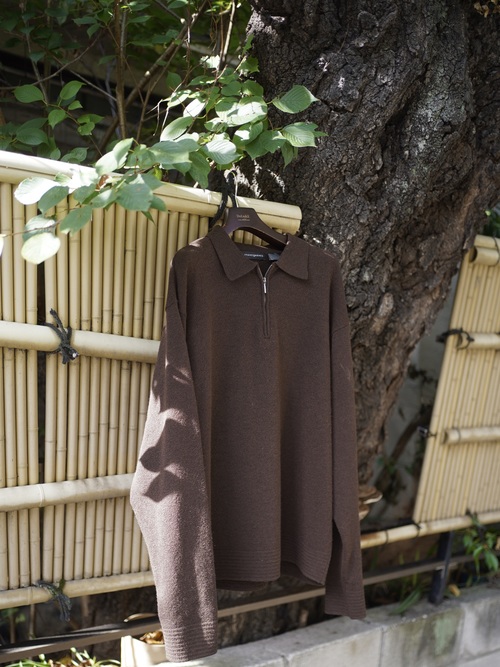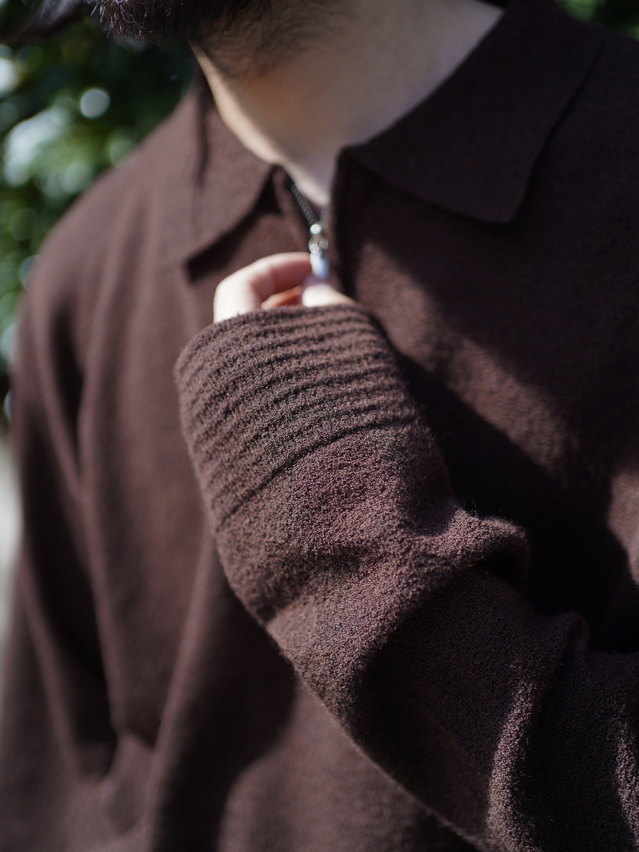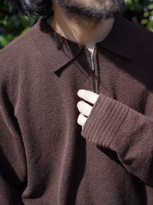 ボイルドメランジボディに畝感のある裾始末。シルバーのハーフジップが良く映えます。