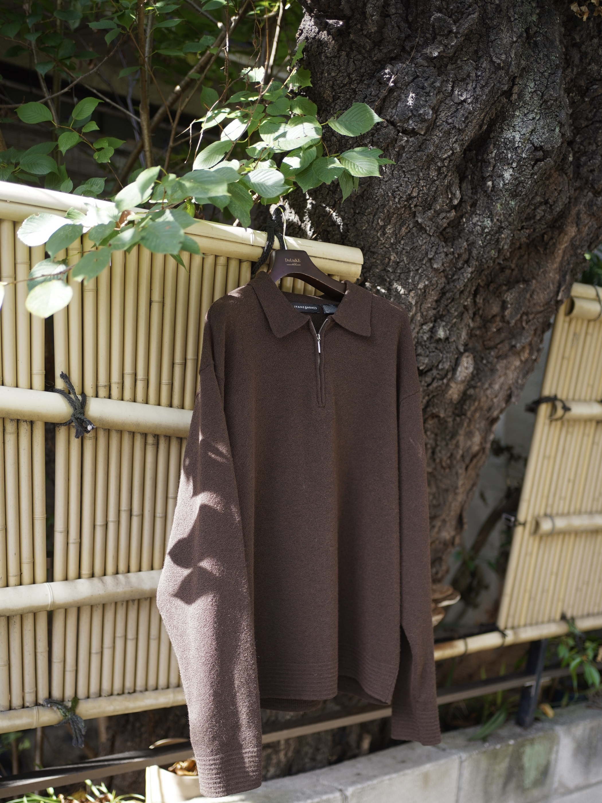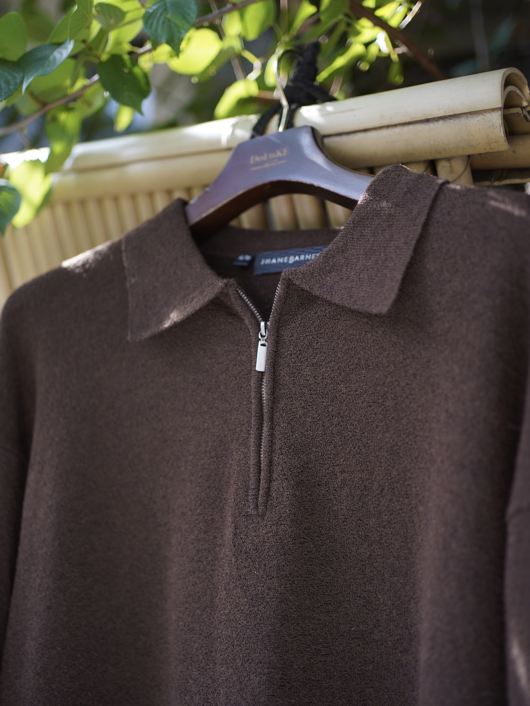 ・1990's JHANE BARNES Wool Nylon Boiled Half-zip knit polo shirt