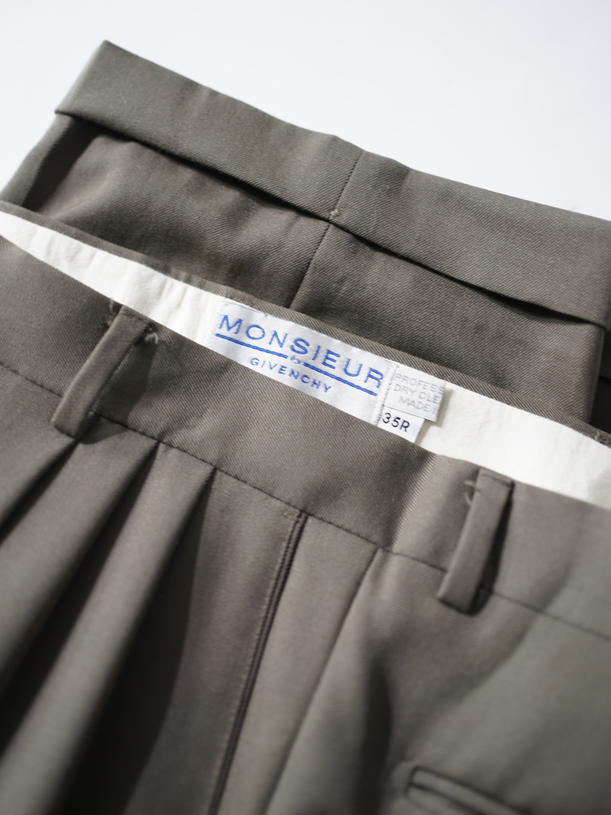 とろみある肉厚なウールギャバジンを使用したヴィンテージ『GIVENCHY』3タックドレストラウザーズ。