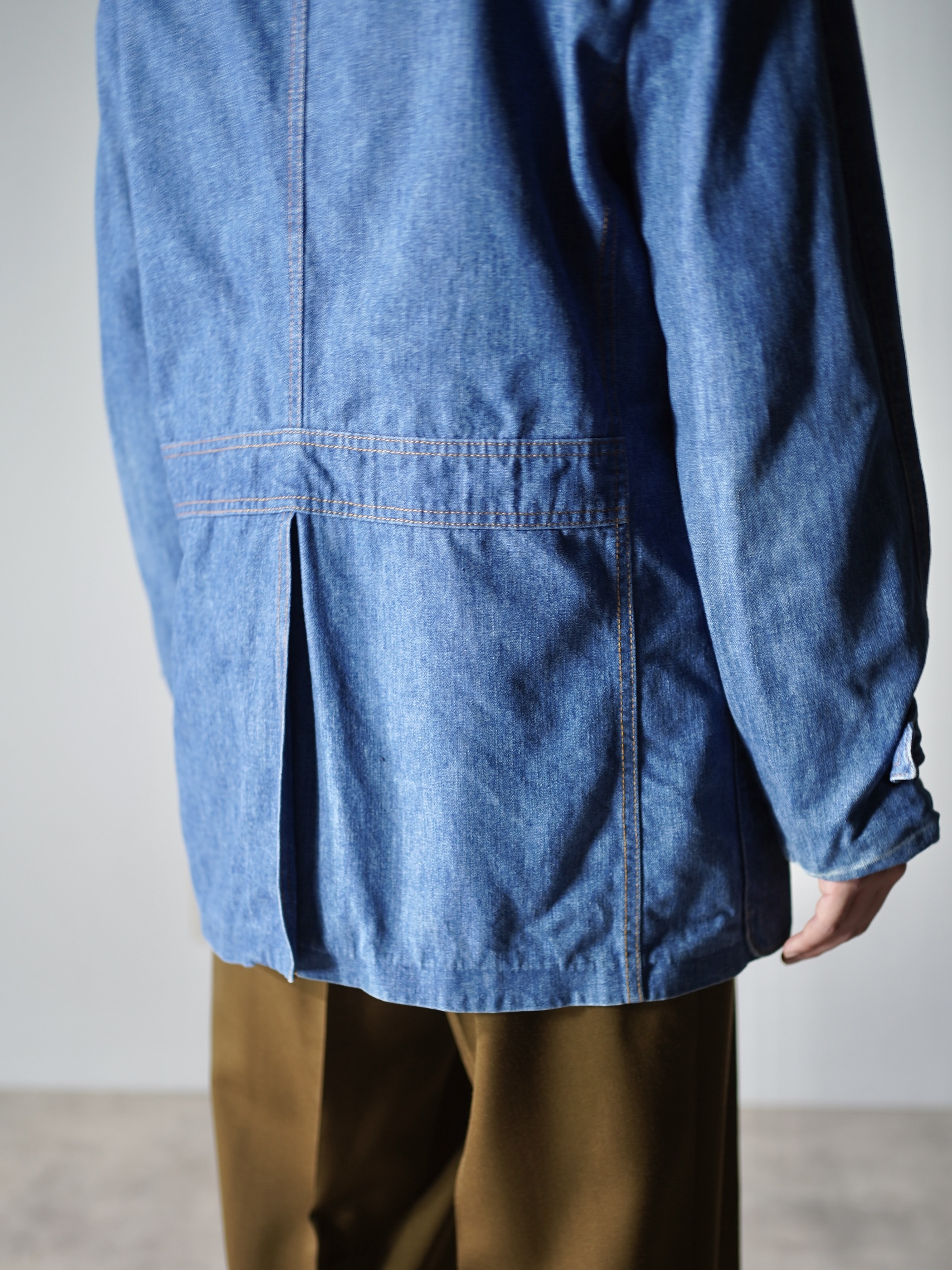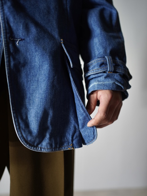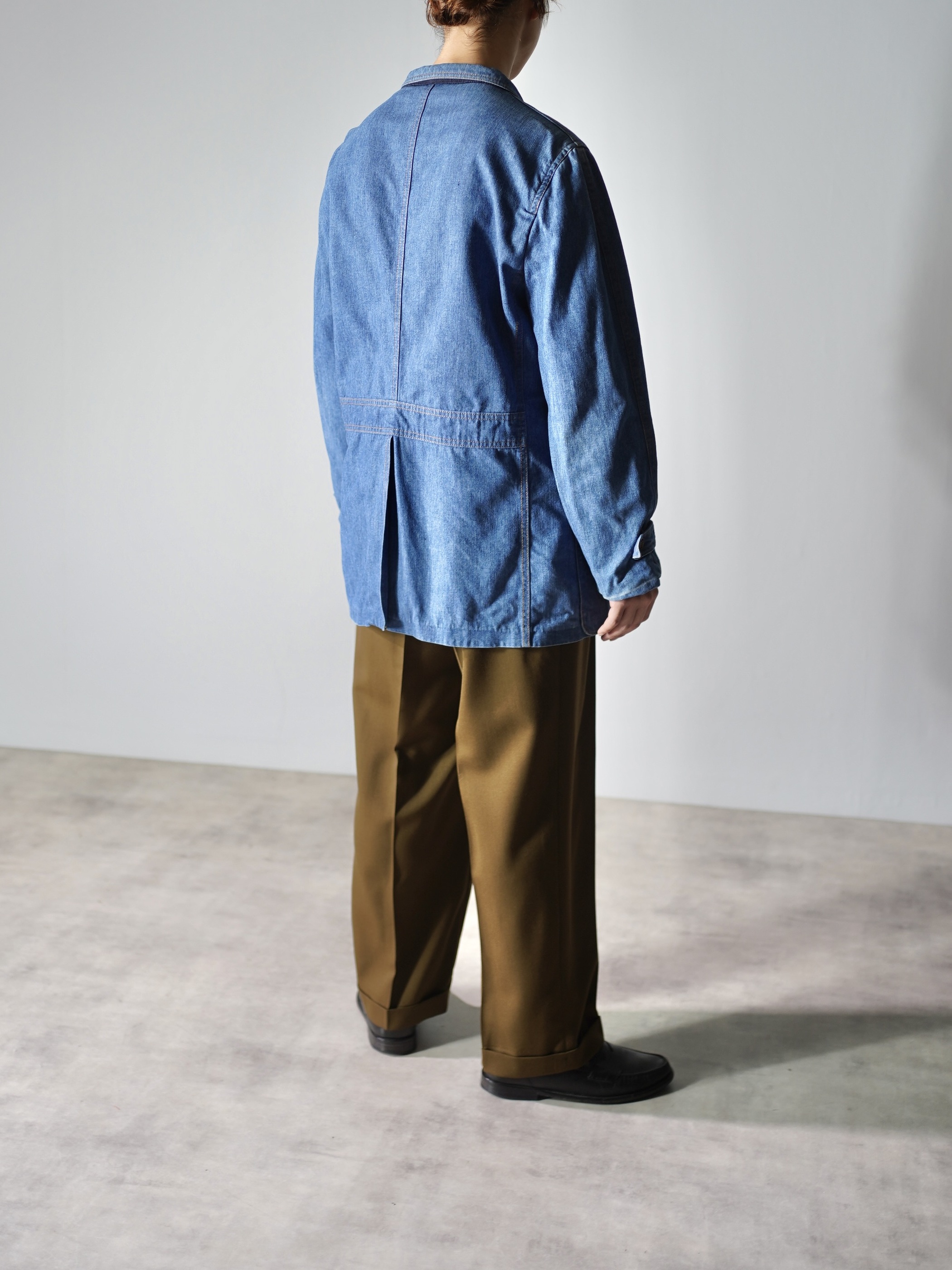 背抜き仕様でばさっと羽織れるカバーオールとテーラードの中間着です