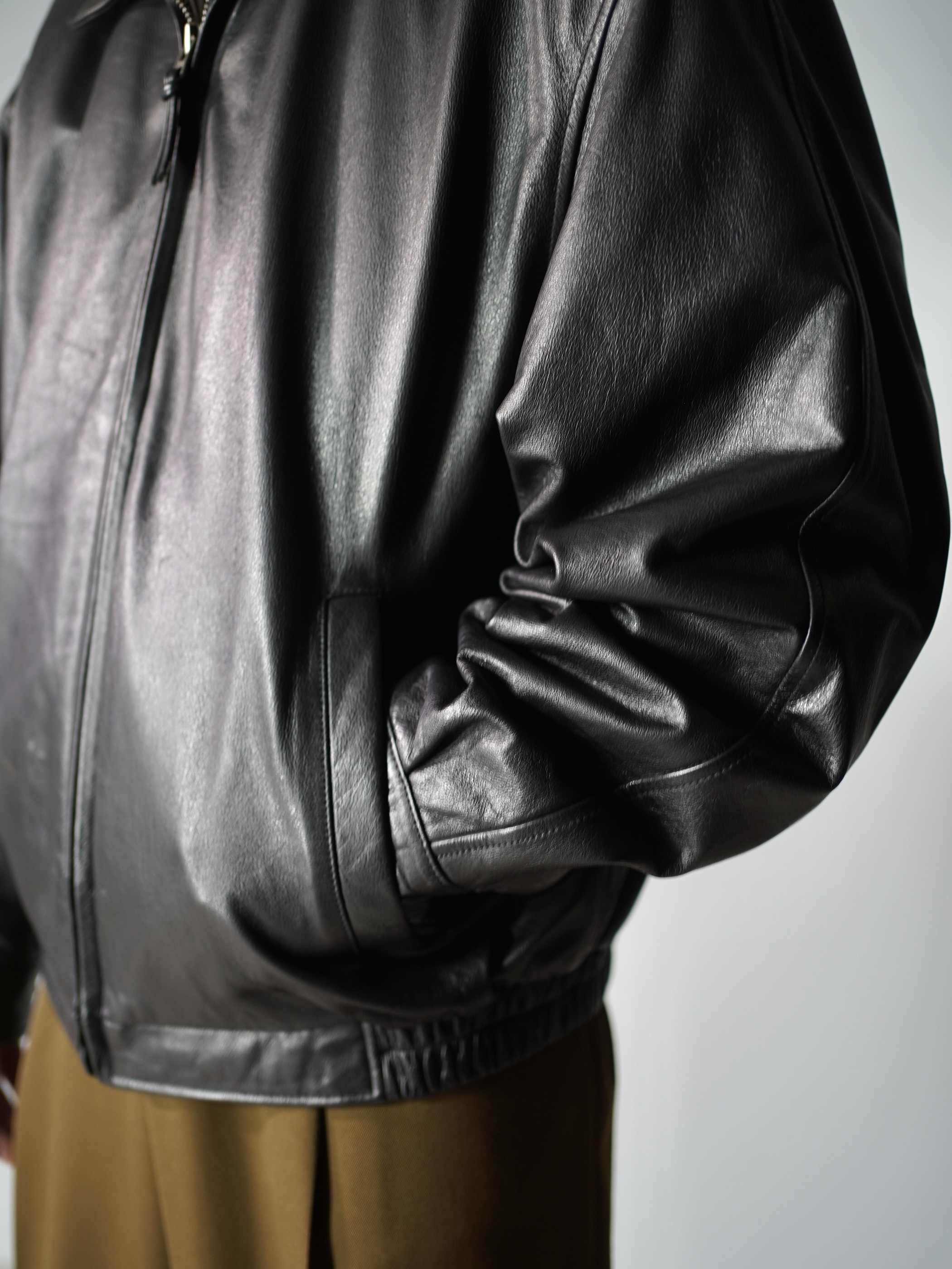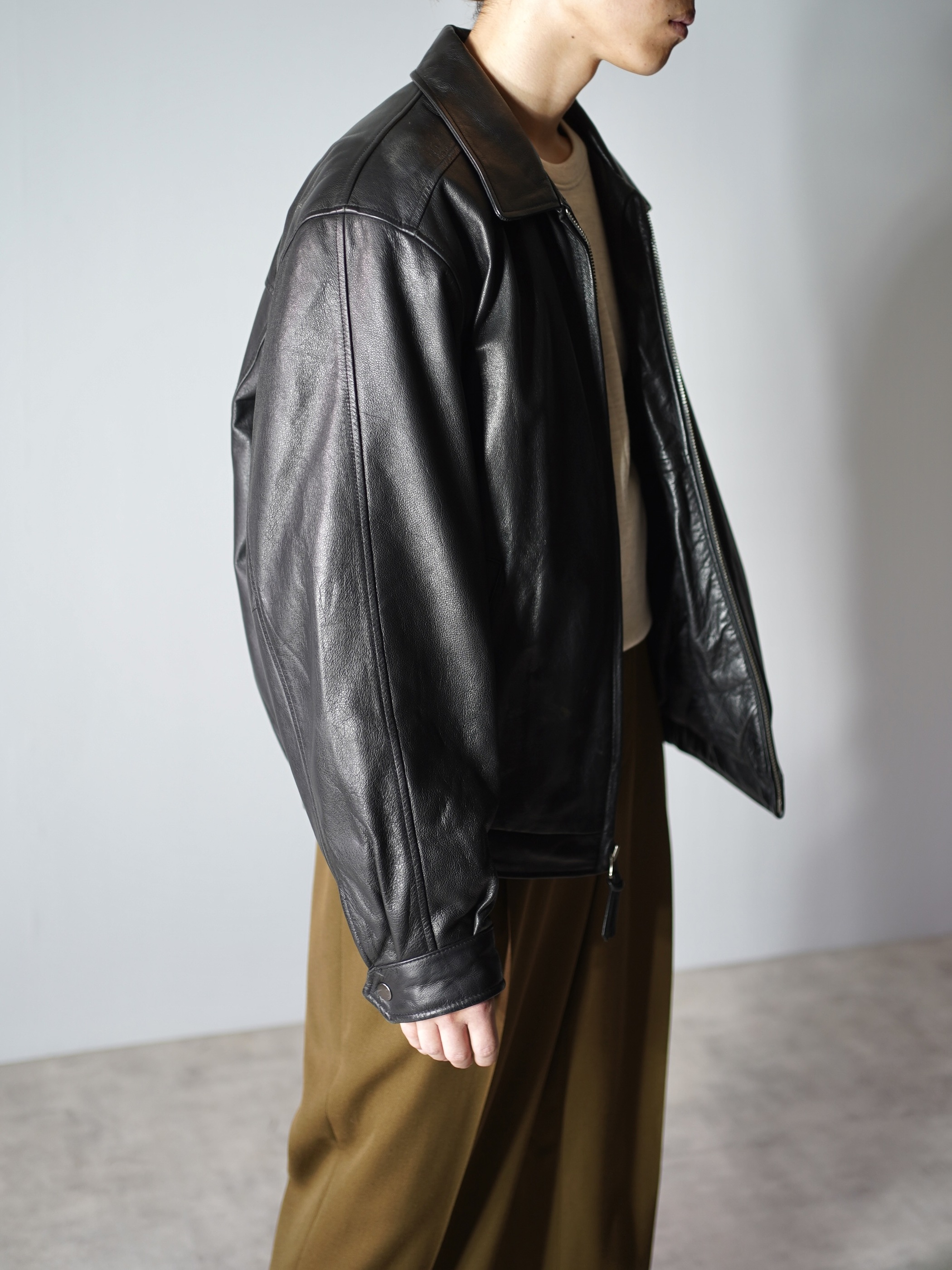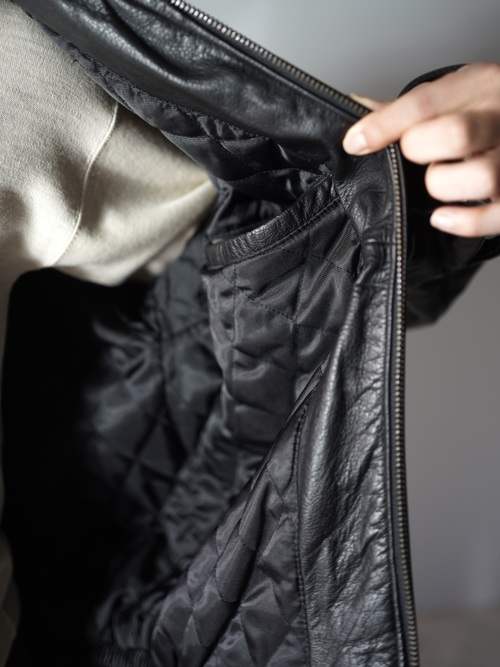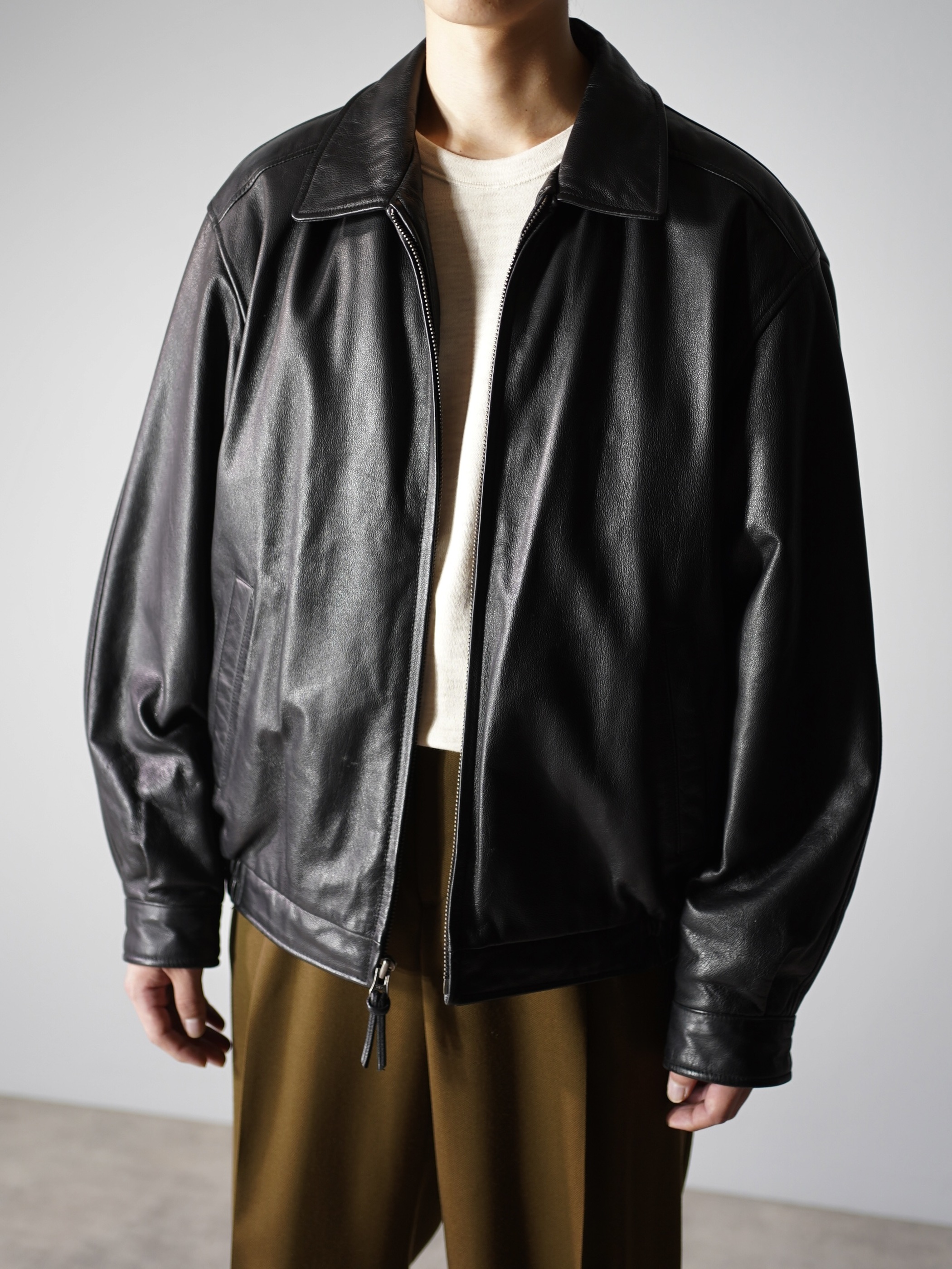 カジュアルでありつつもしっかりとしたクオリティを思わす、堅牢な革質のレザーブルゾンです。