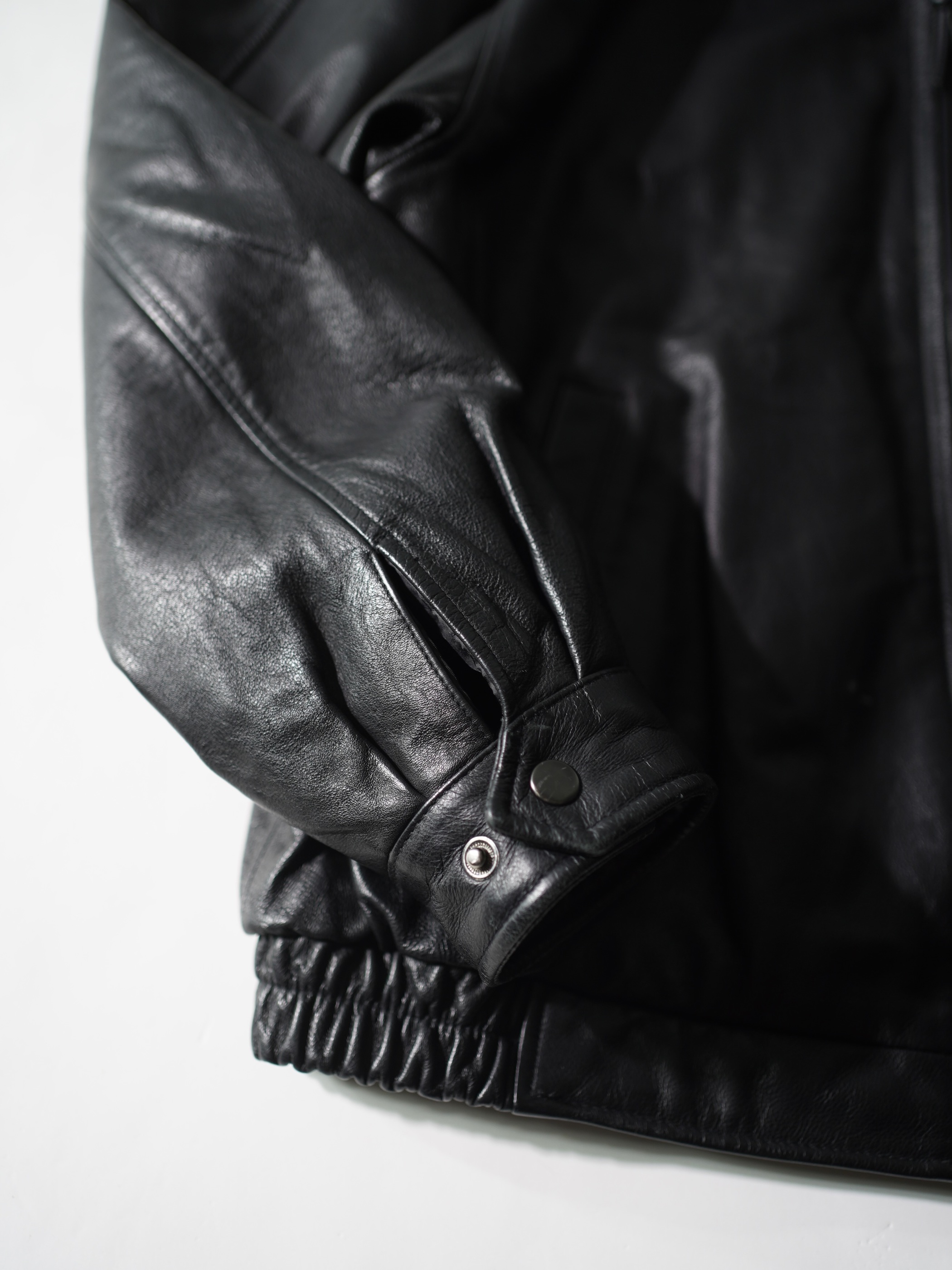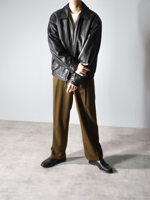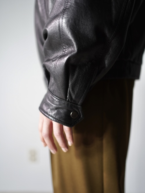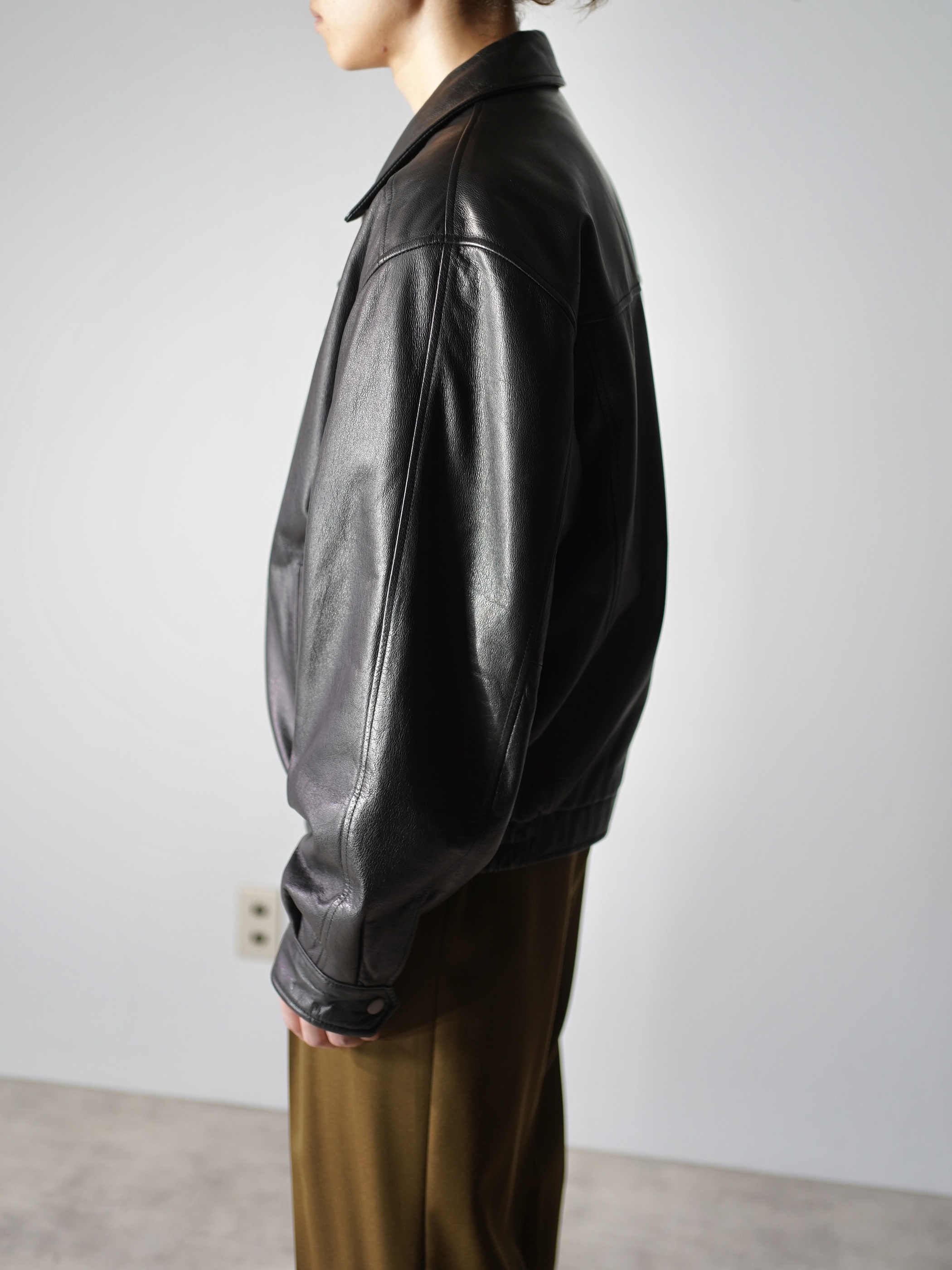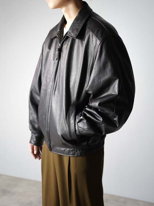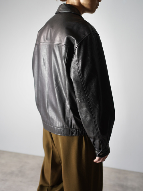 カジュアルでありつつもしっかりとしたクオリティを思わす、堅牢な革質のレザーブルゾンです。