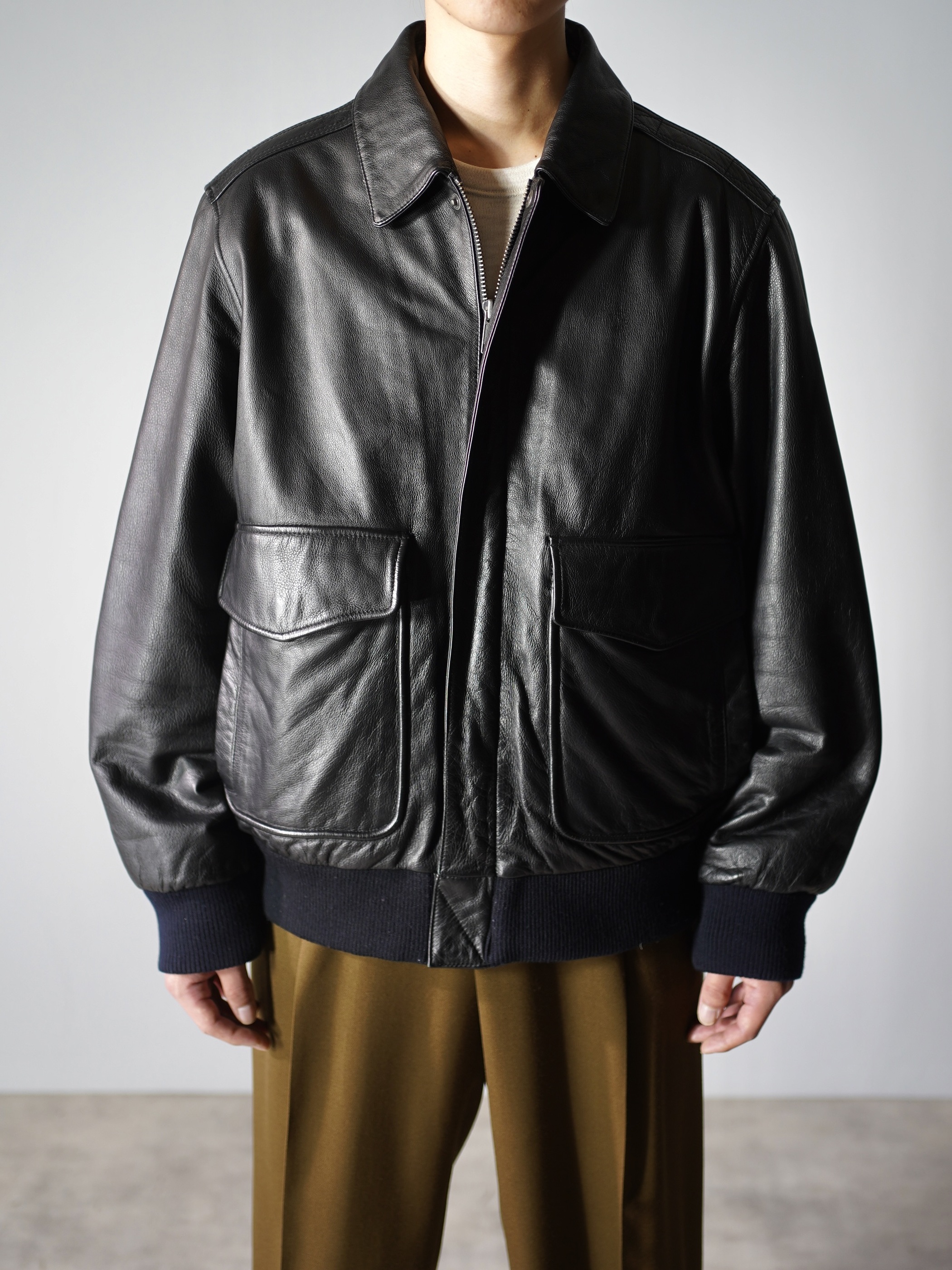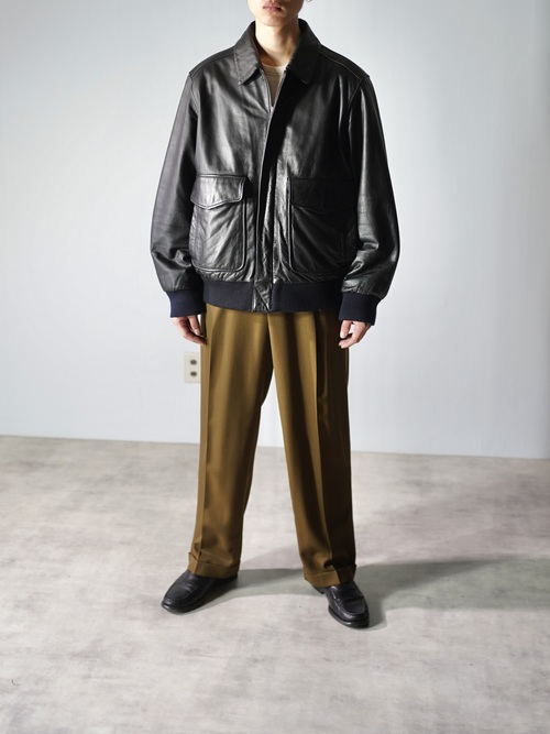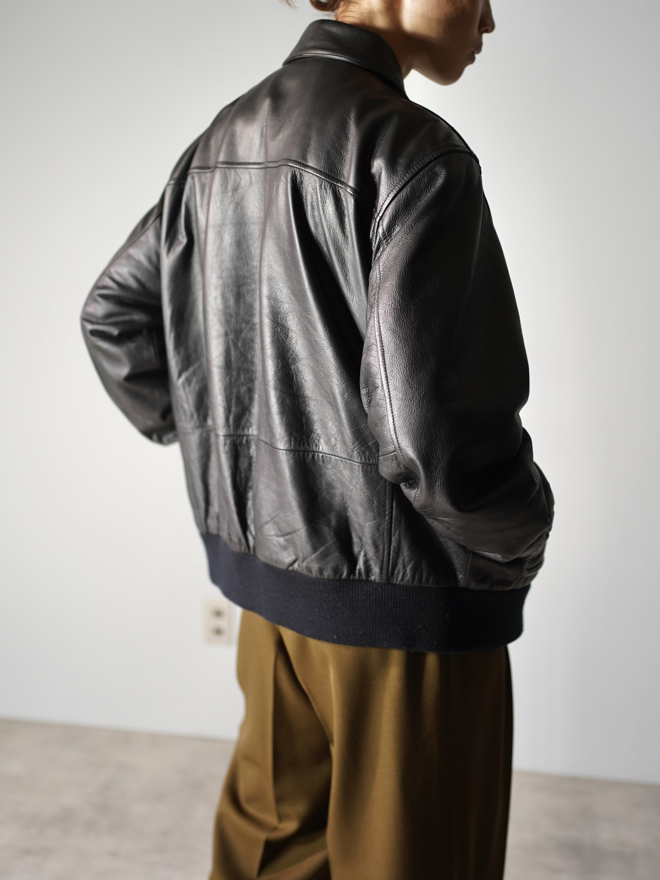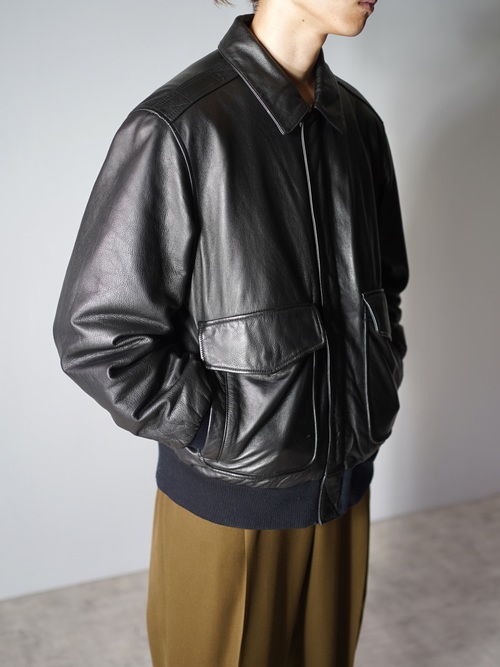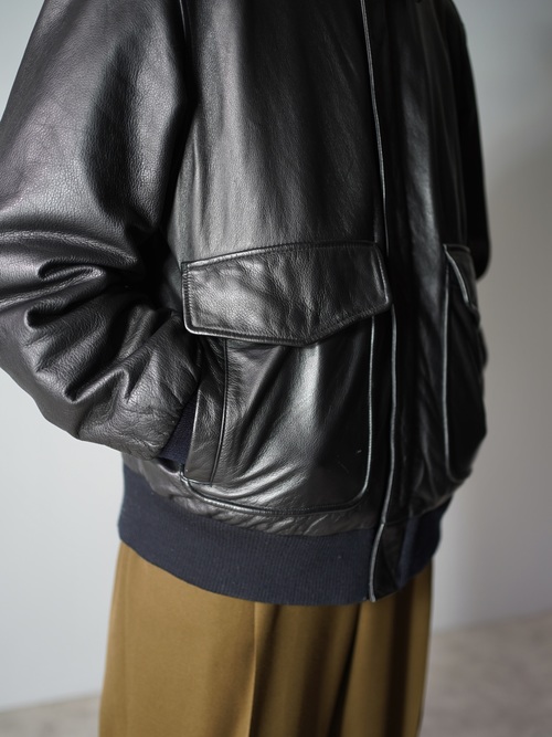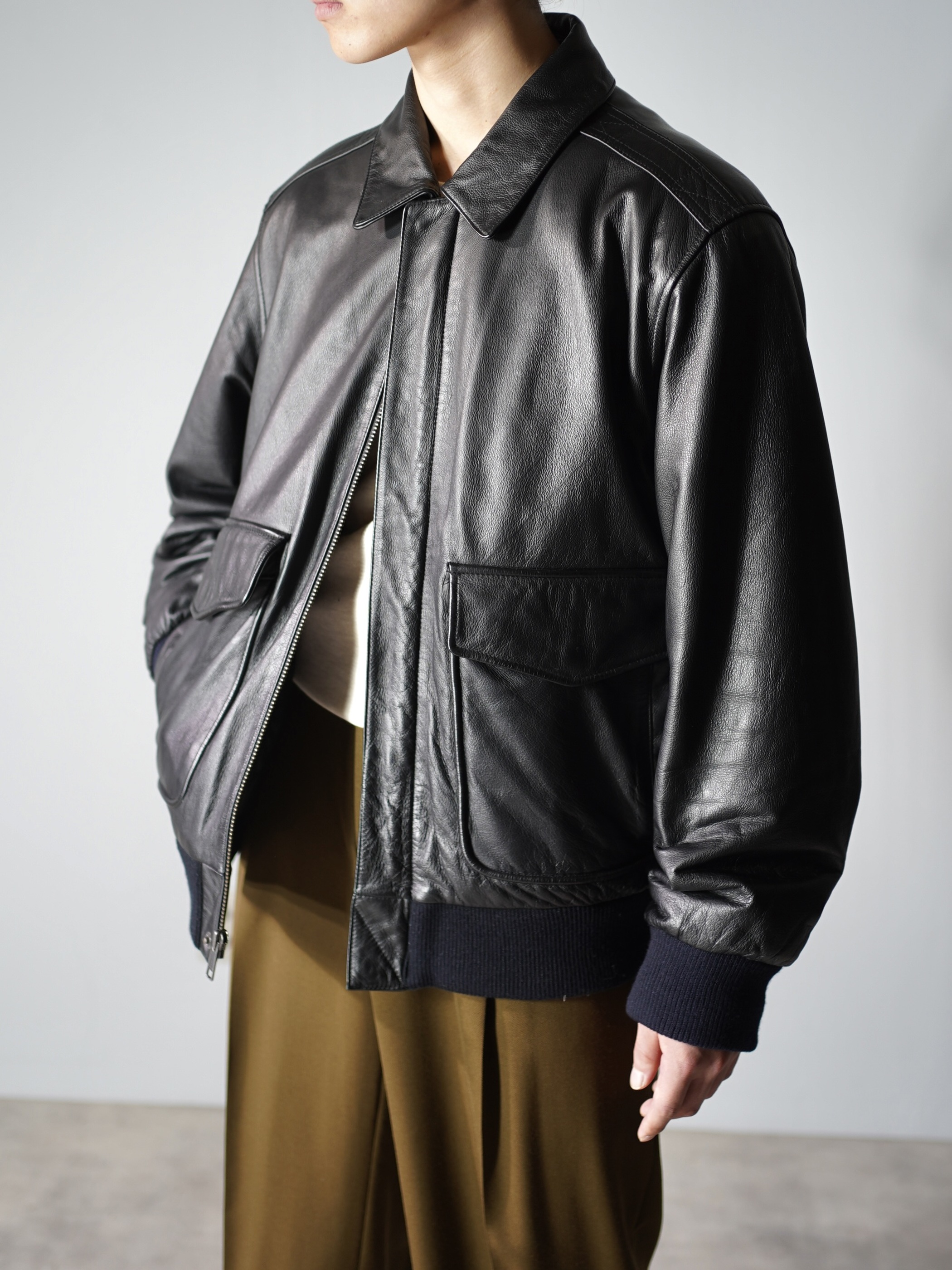 フライトジャケット型のレザージャケット。