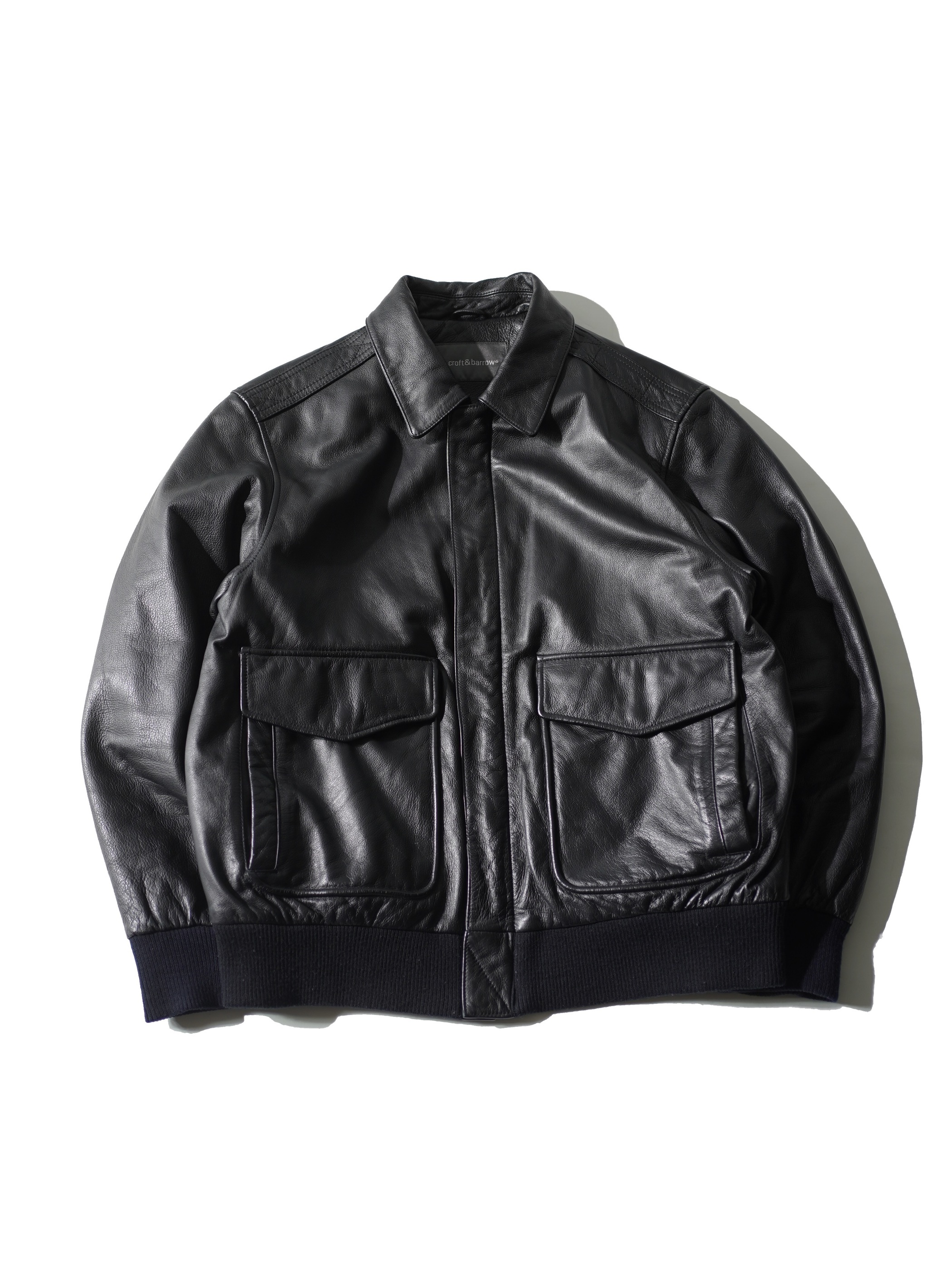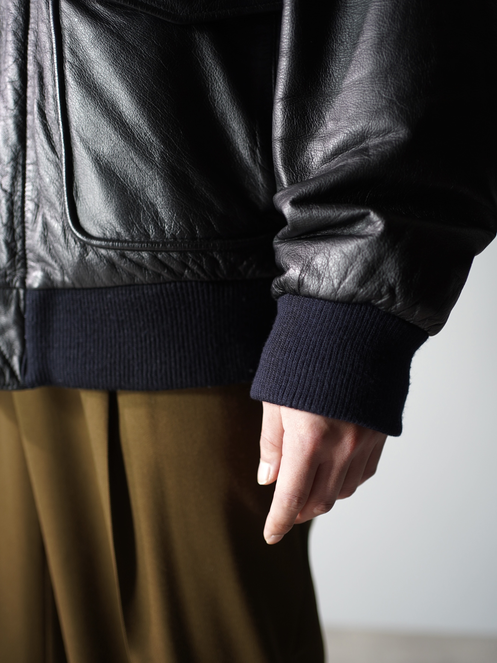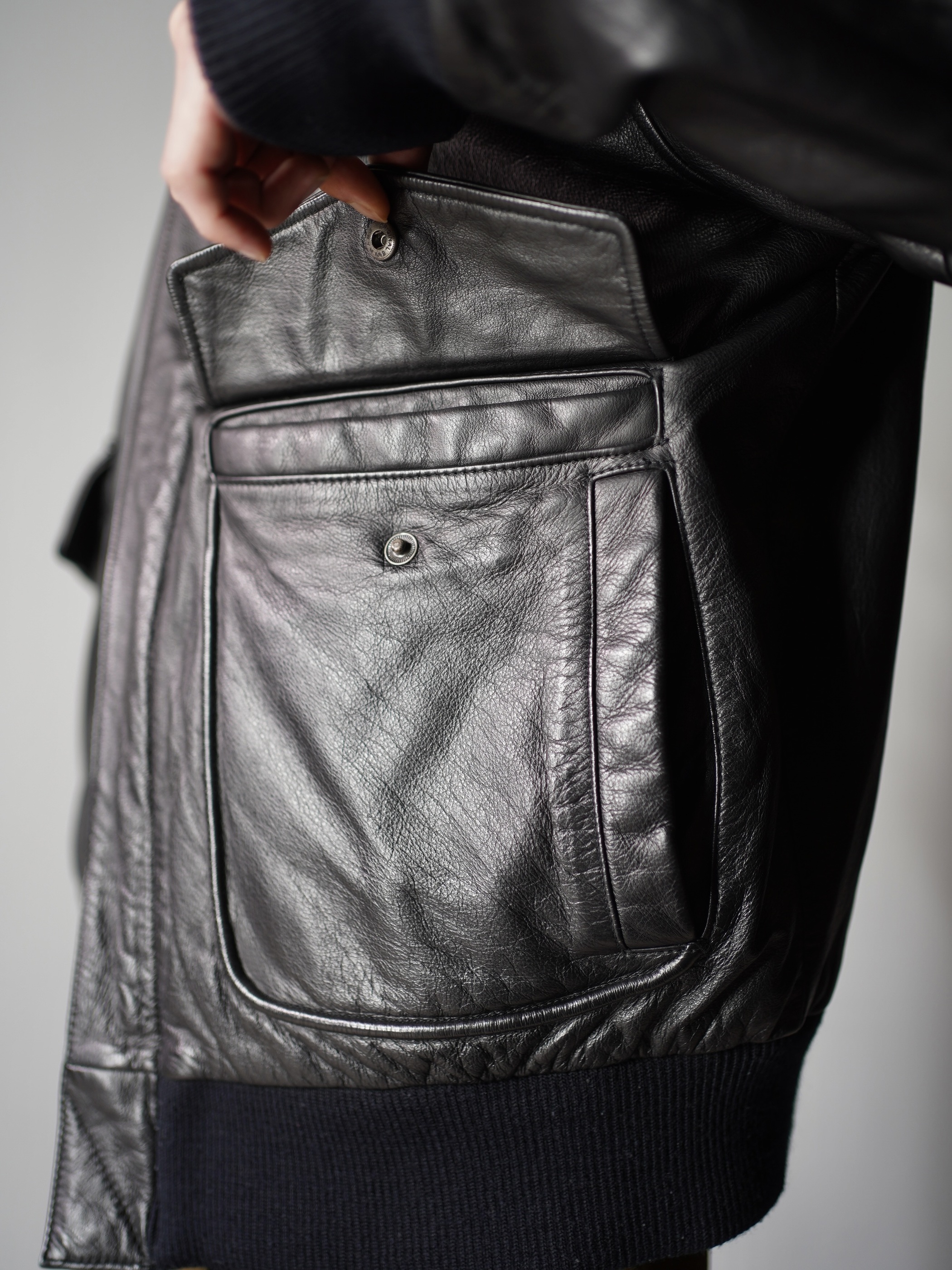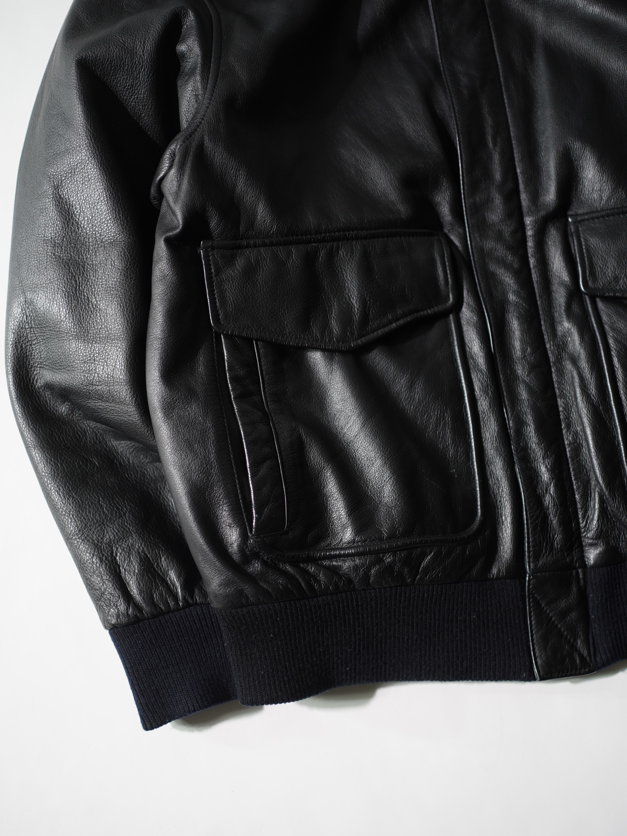 フライトジャケット型のレザージャケット。