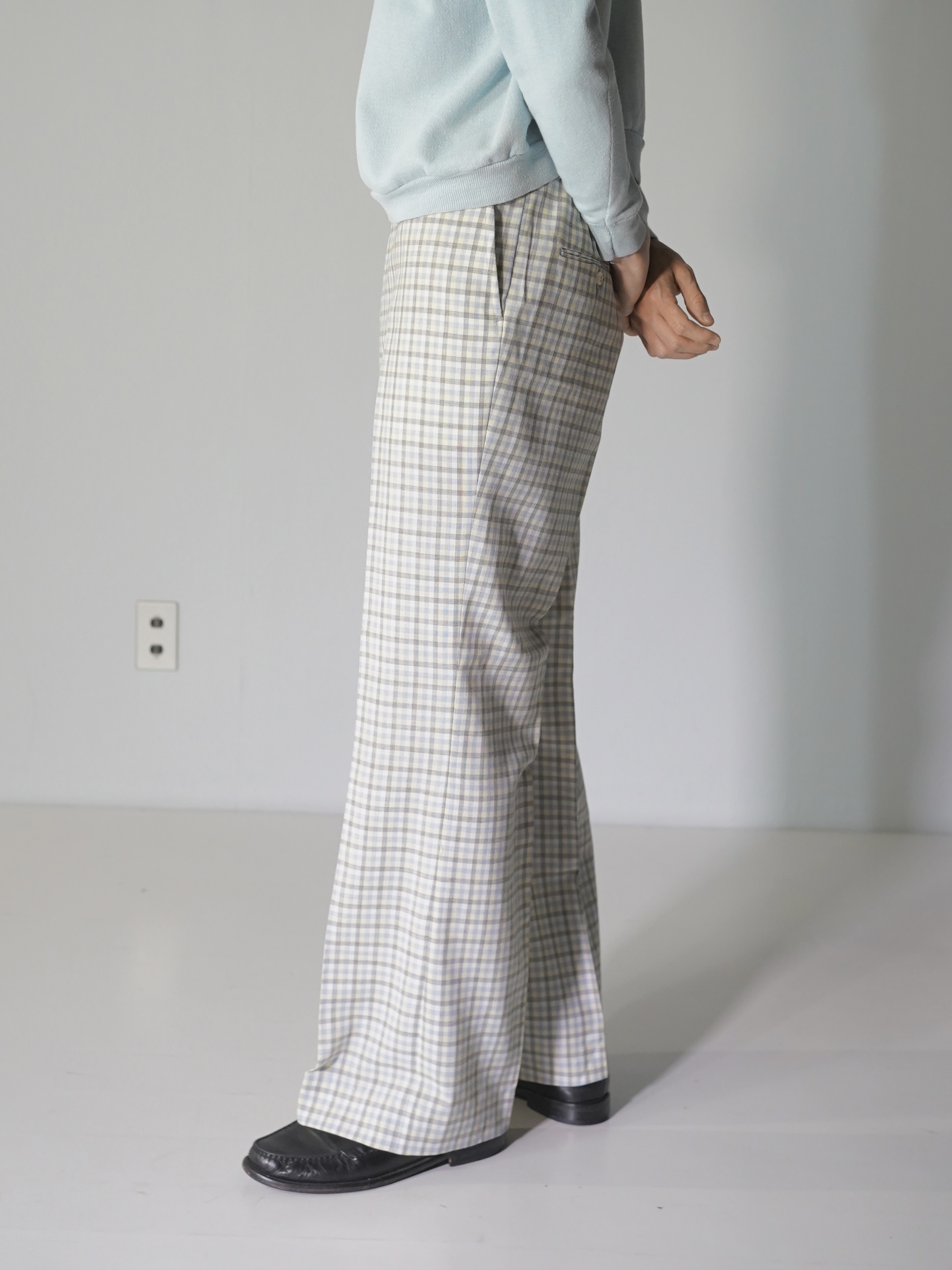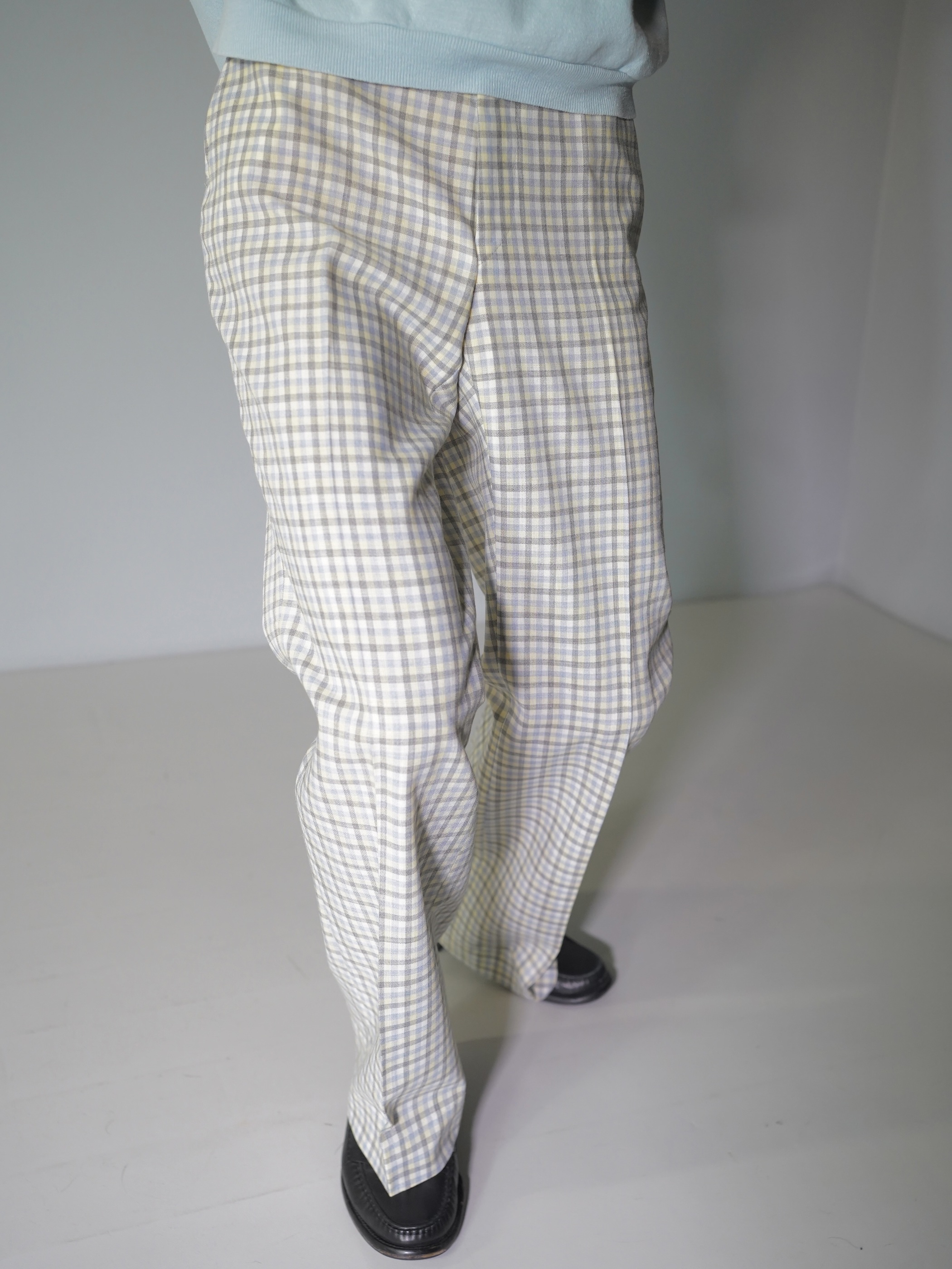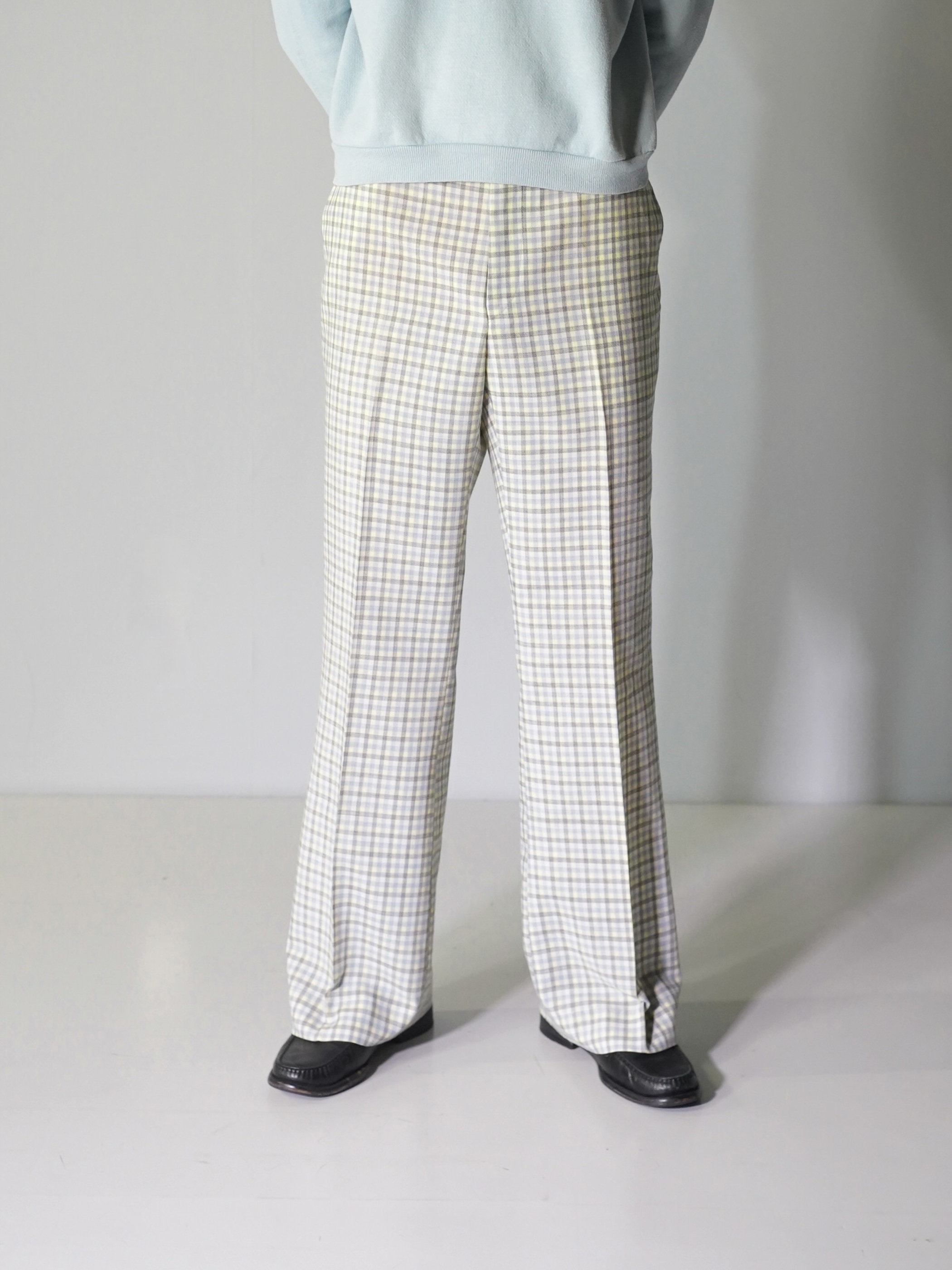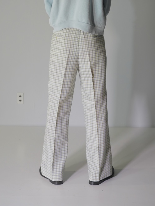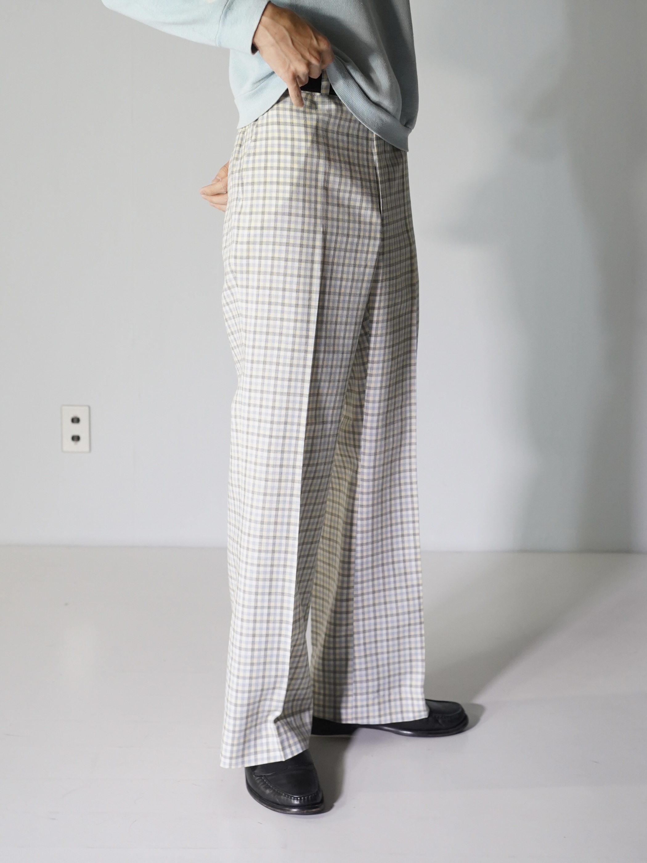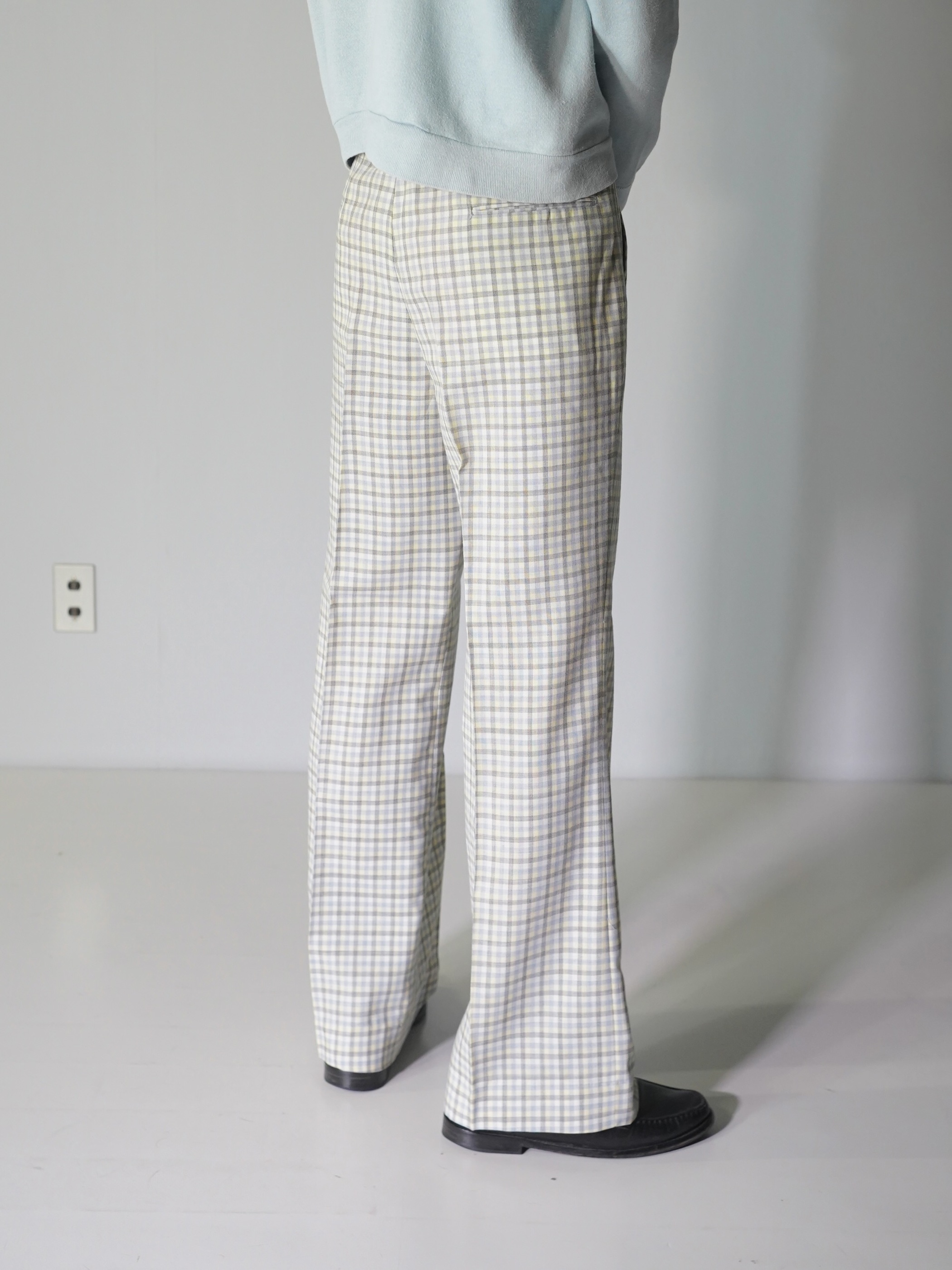 スタイリッシュなブーツカットに乗る柔らかなトーンのギンガムチェック