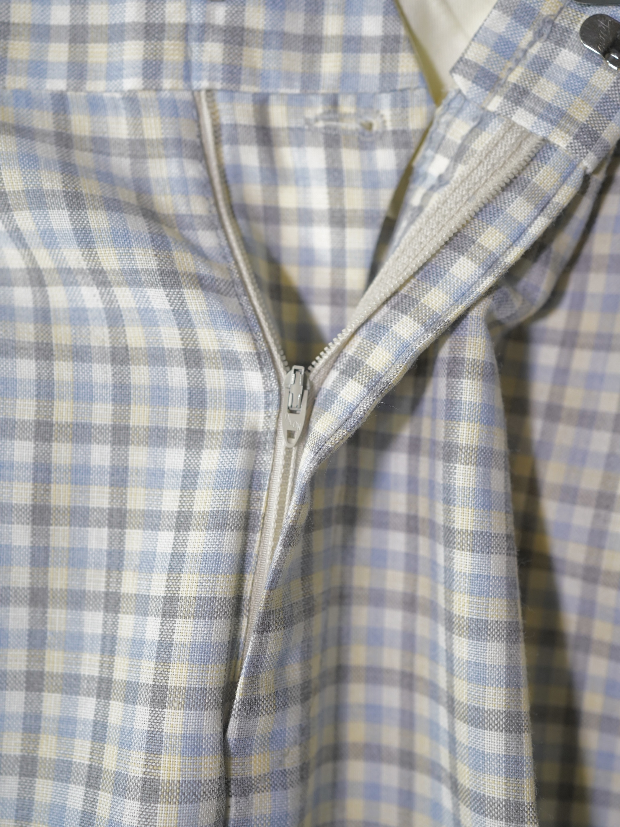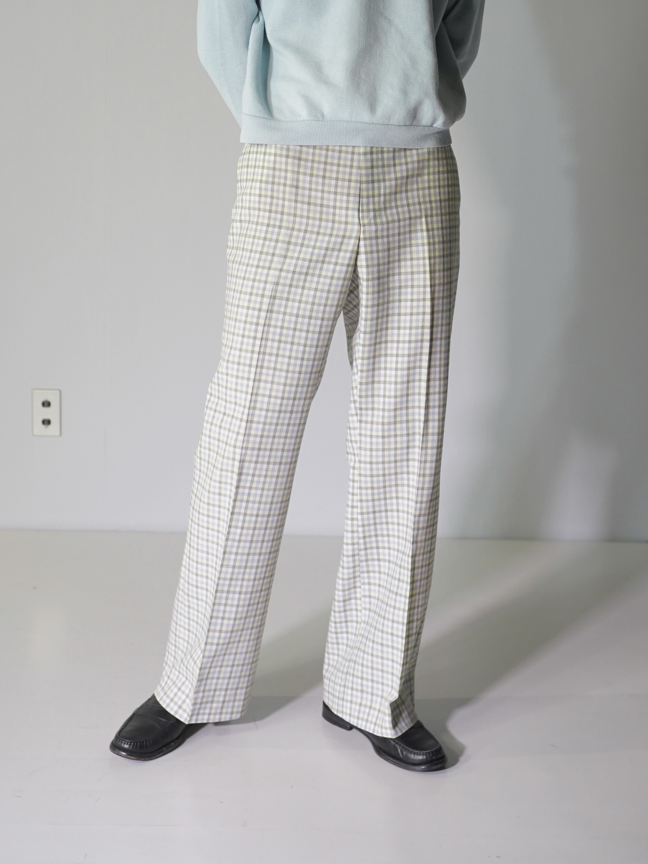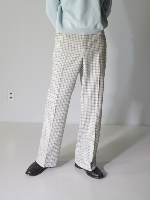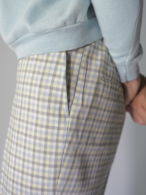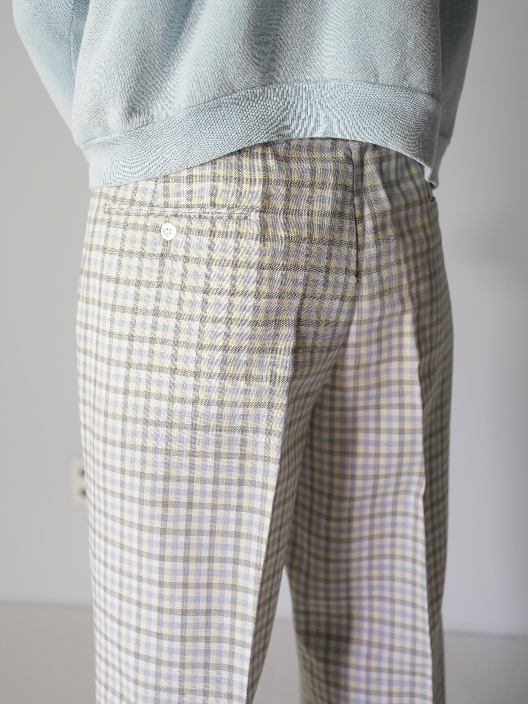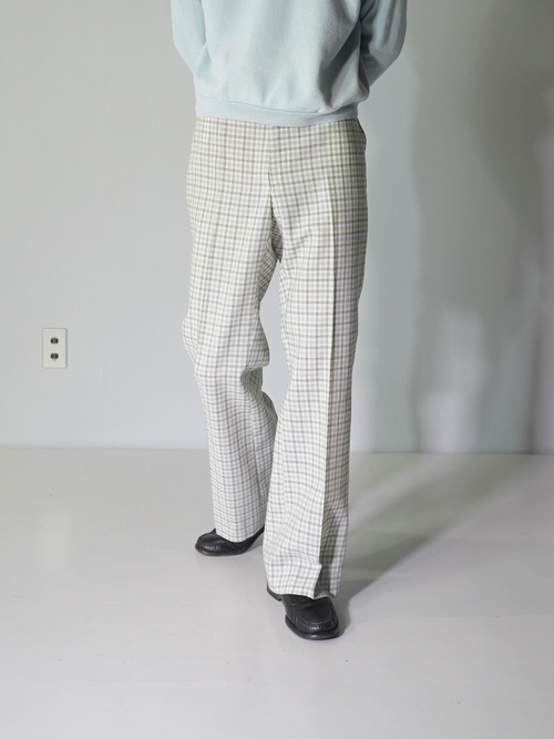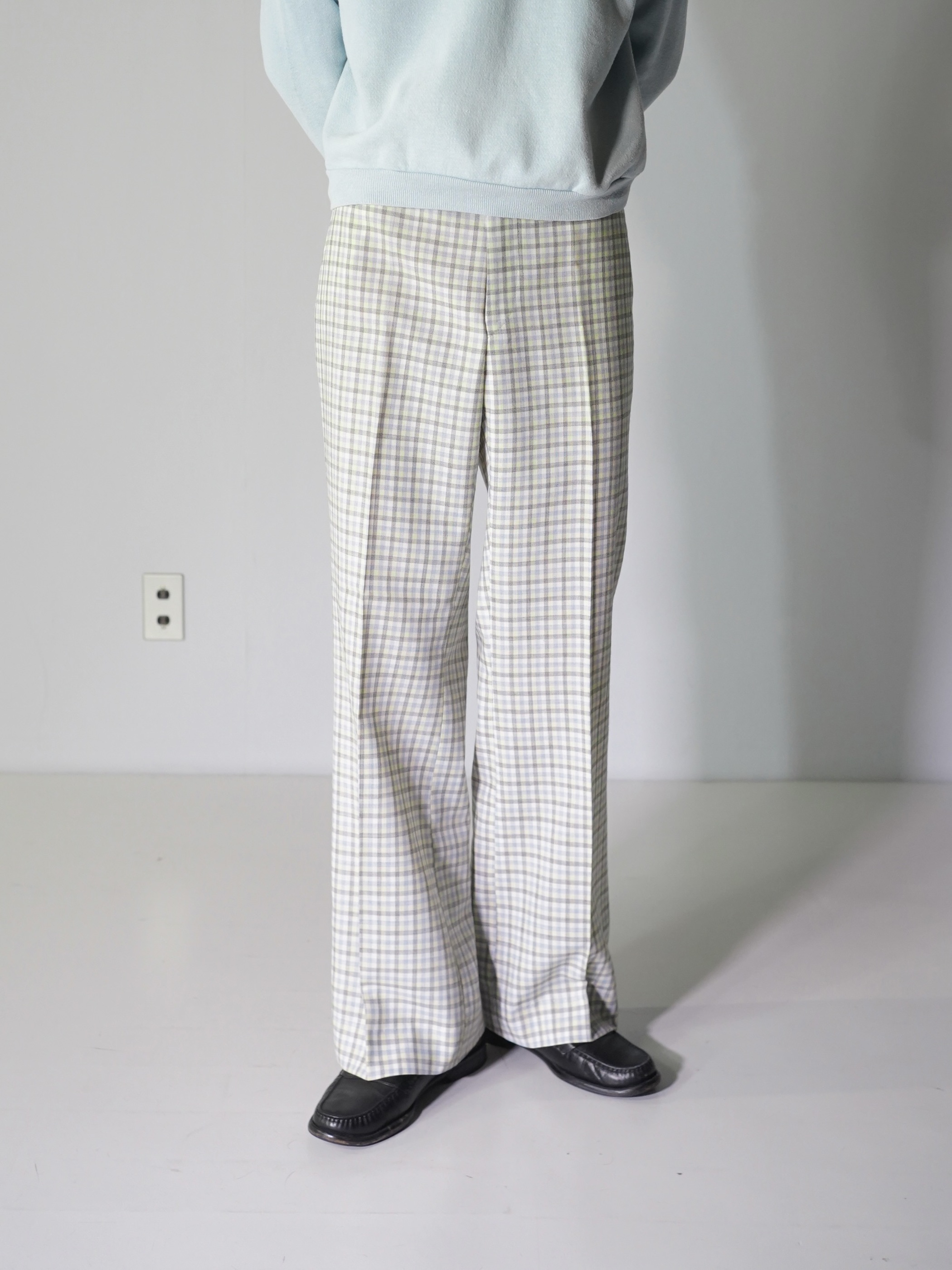 スタイリッシュなブーツカットに乗る柔らかなトーンのギンガムチェック