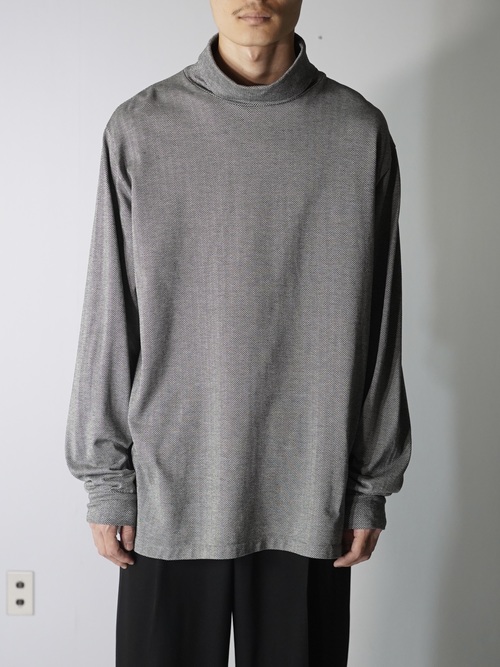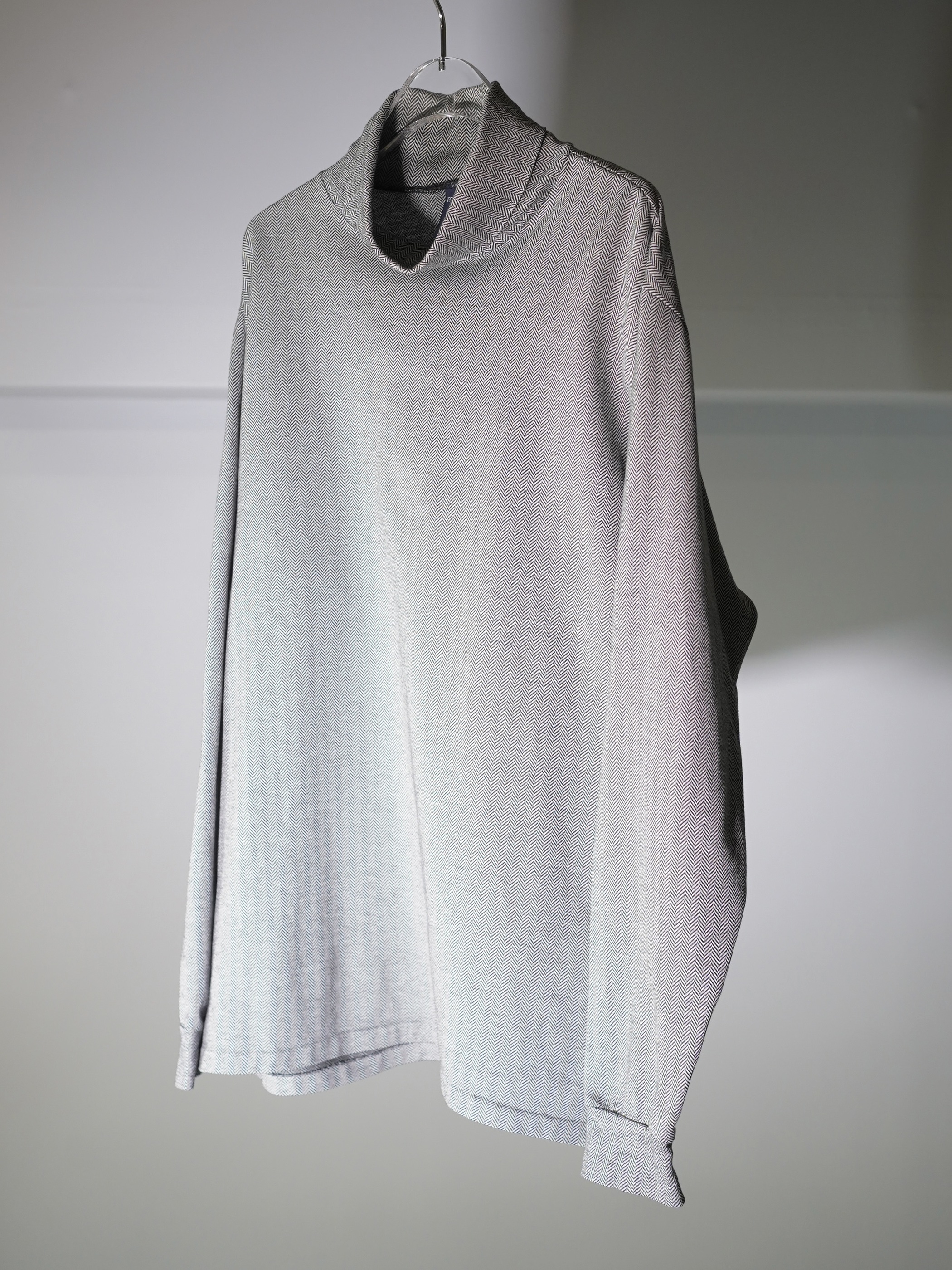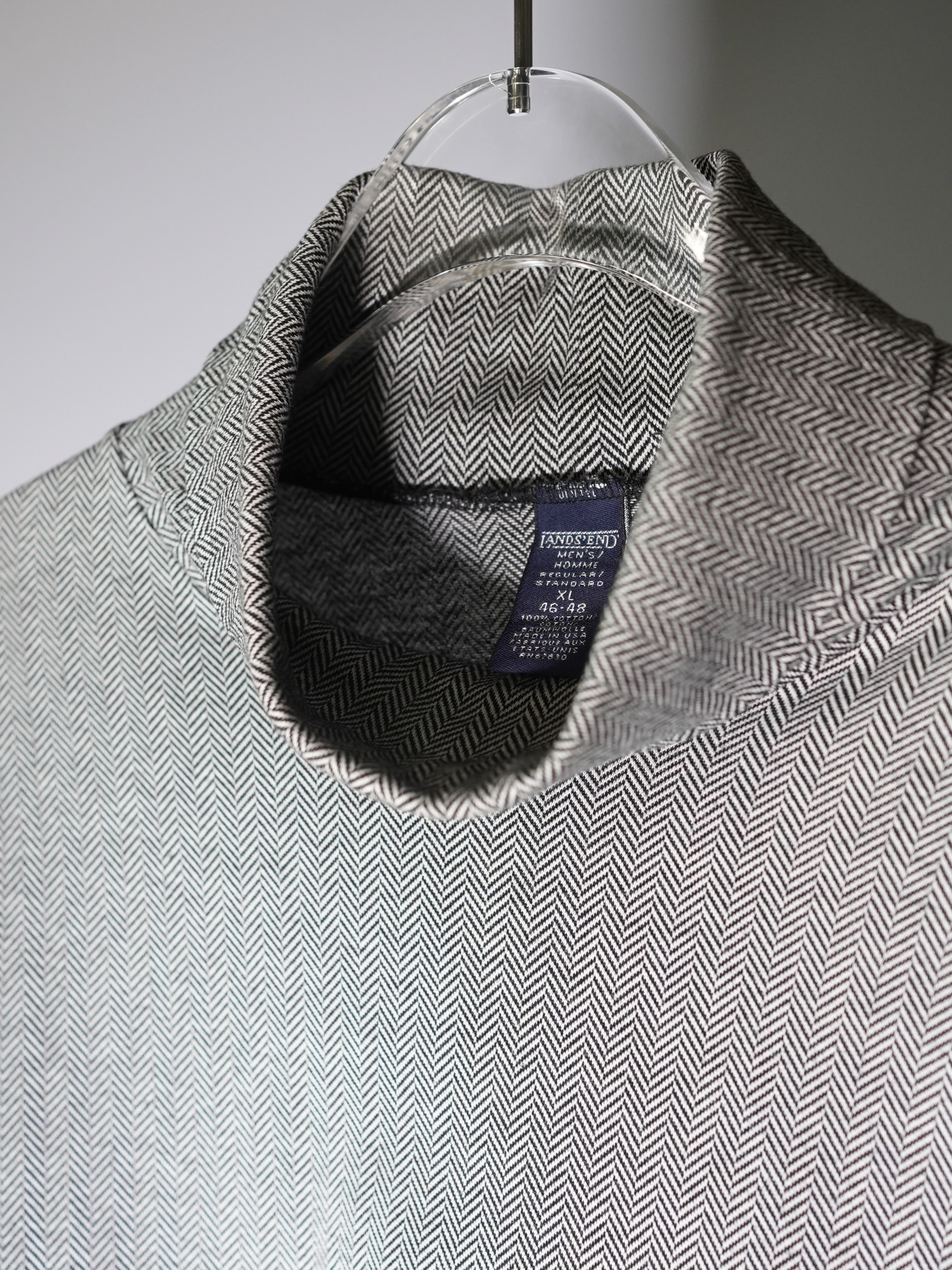 LANDS'END Herringbone high neck cotton cut sew / Made in U.S.A