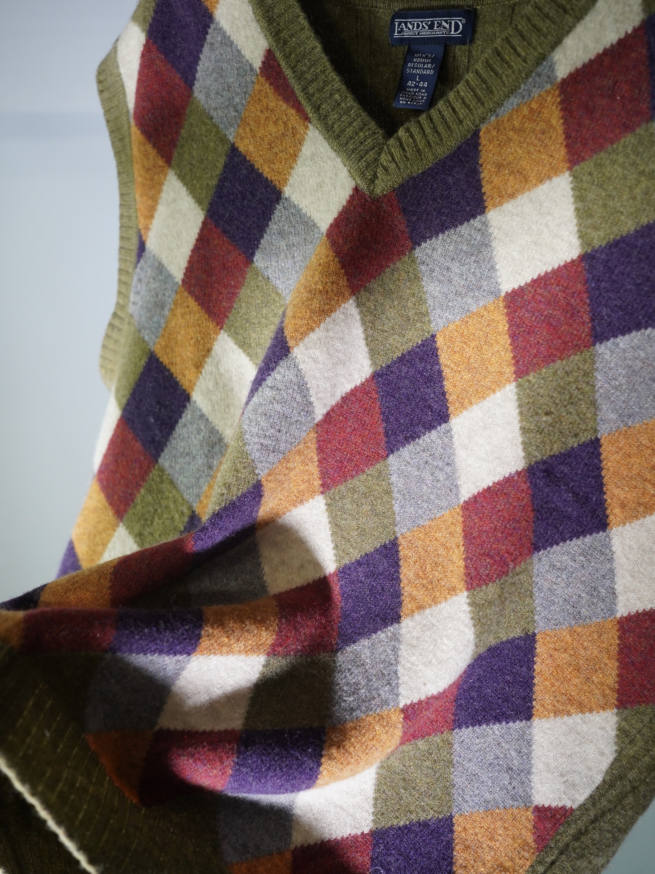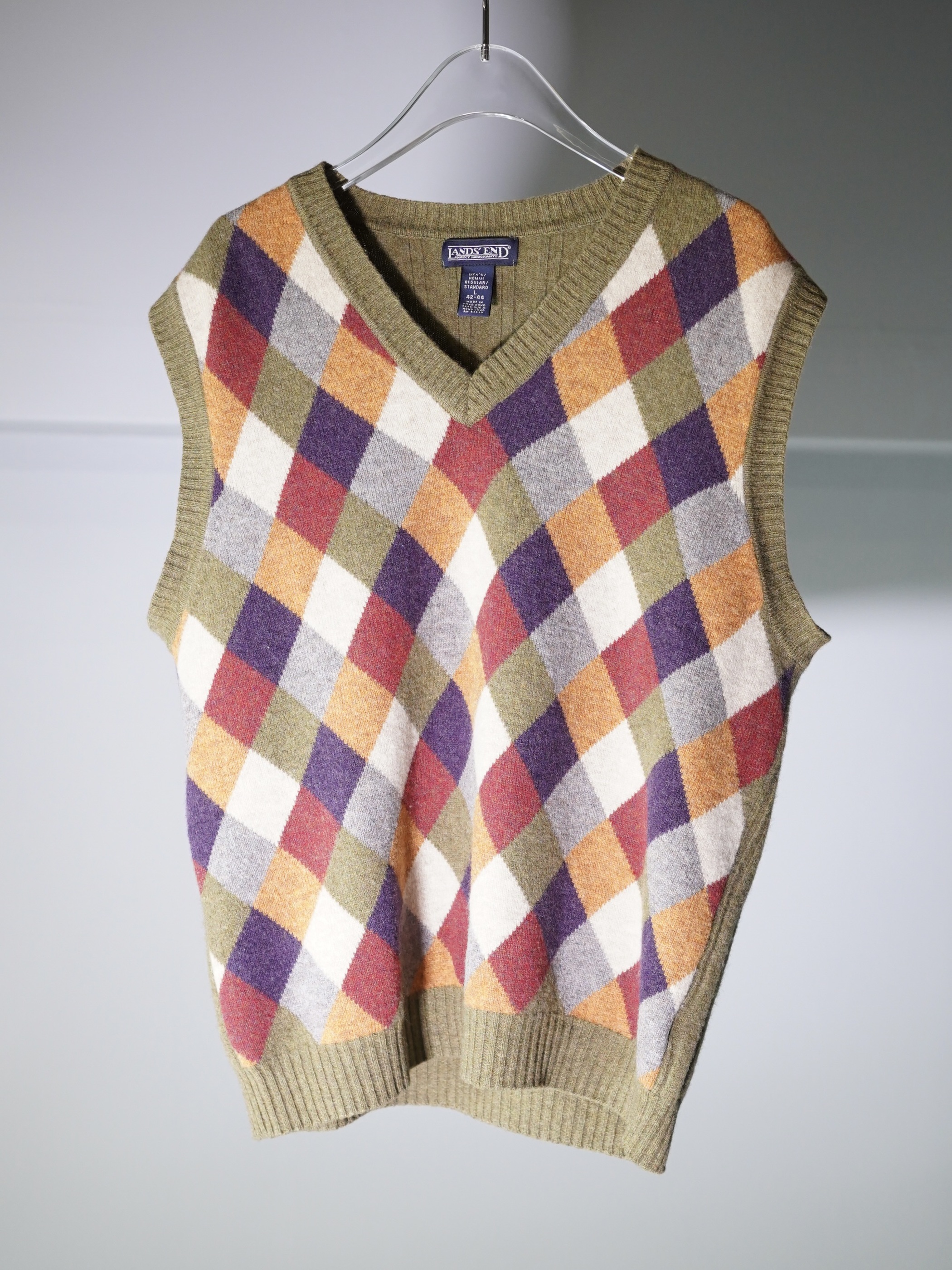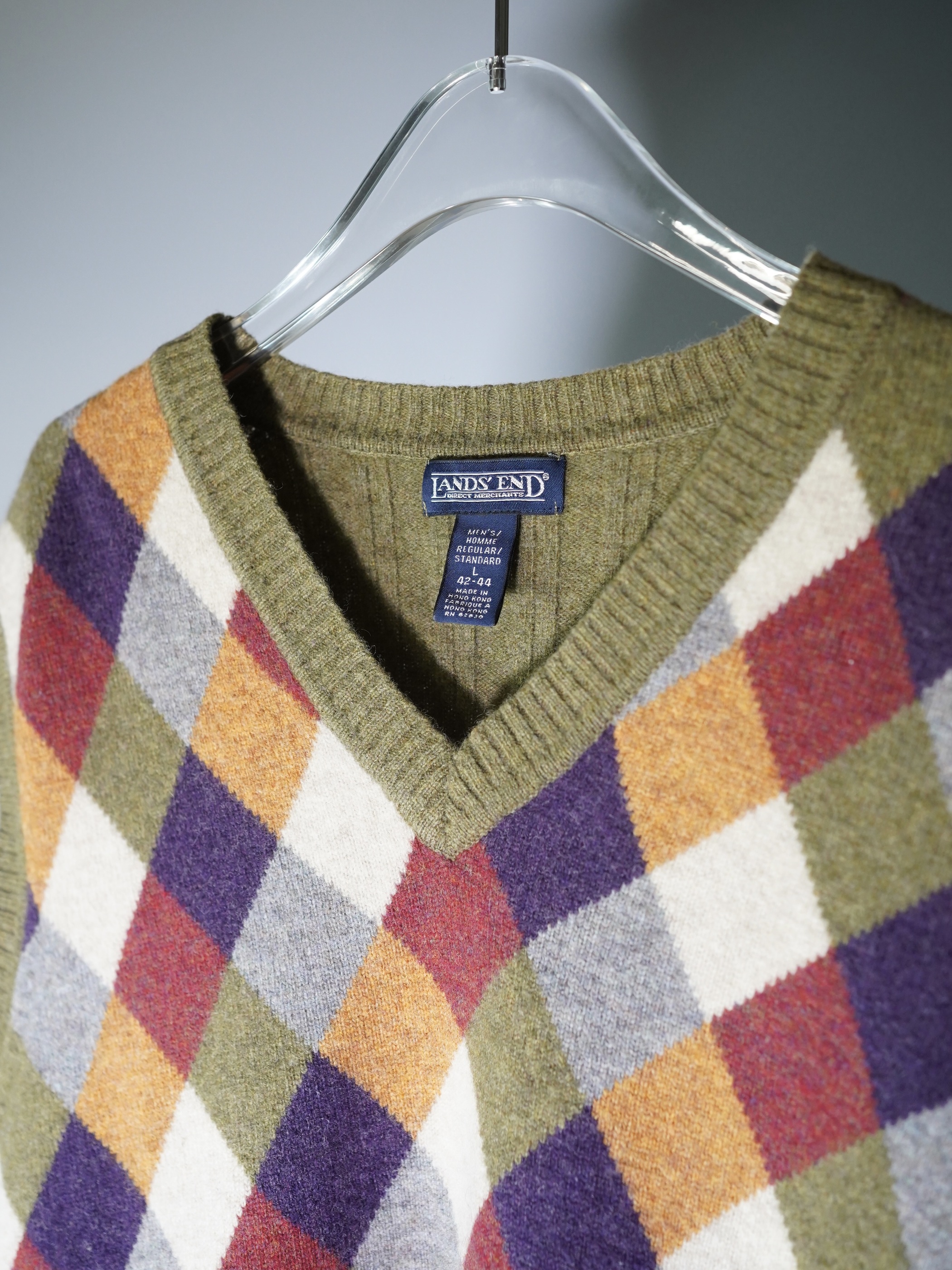 LANDS'END Argyle LAMBS wool knit vest / Made in HONG KONG
