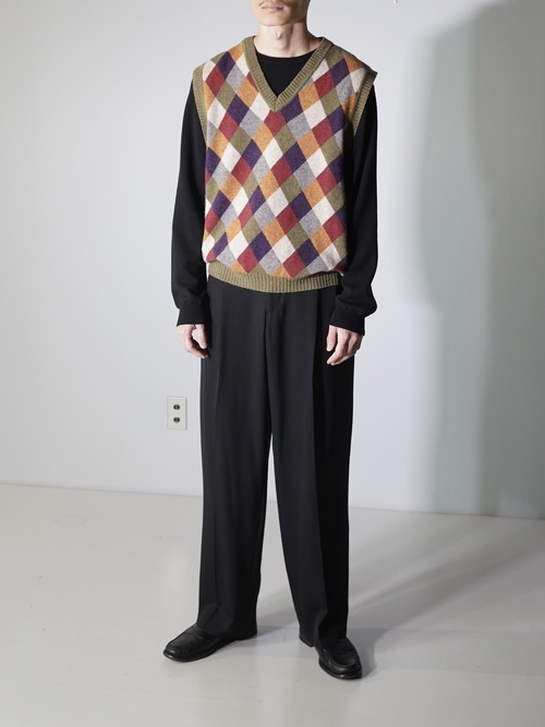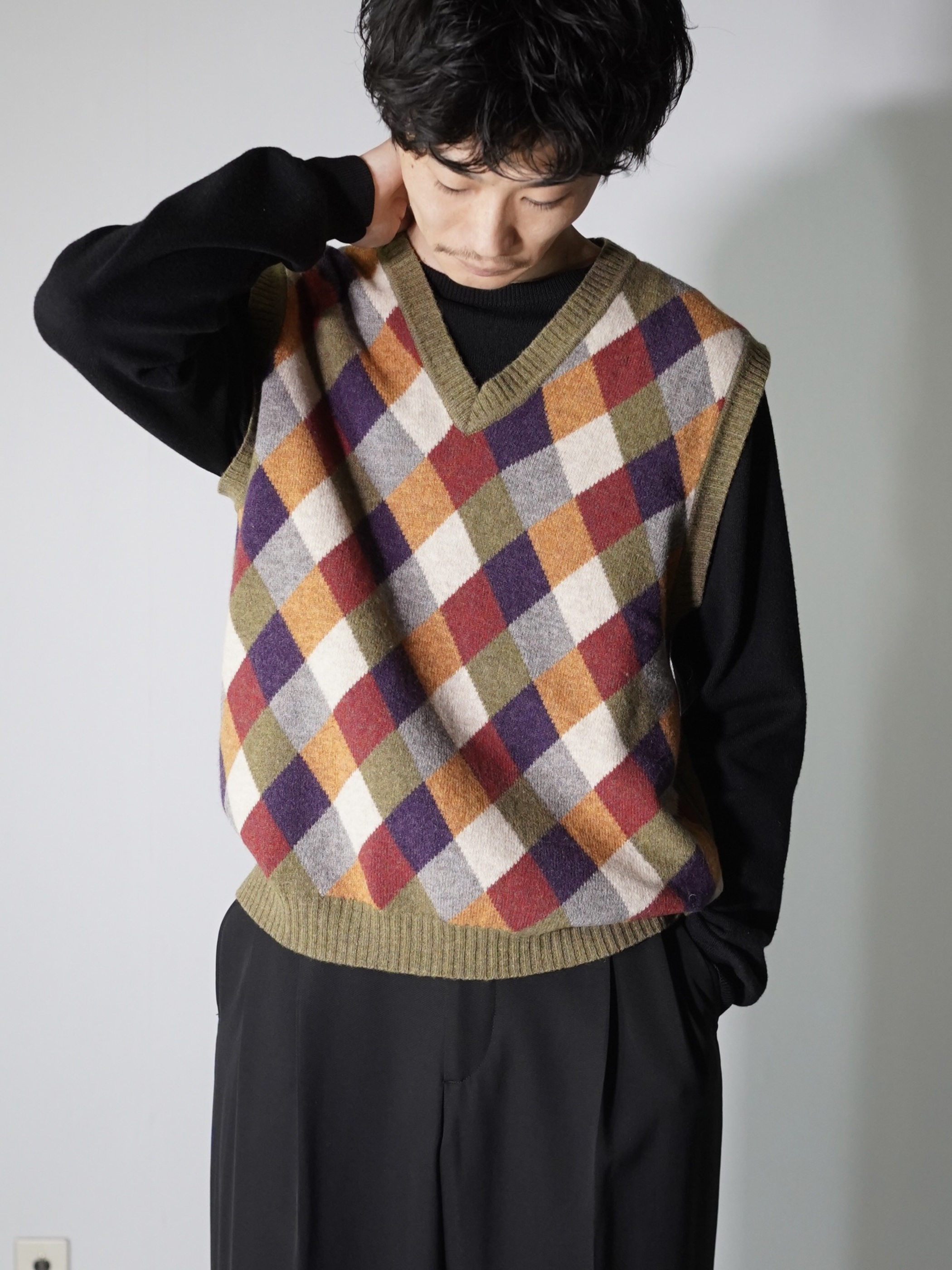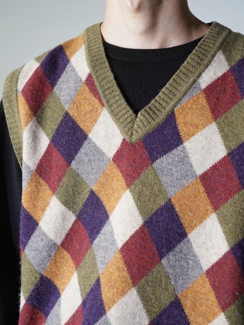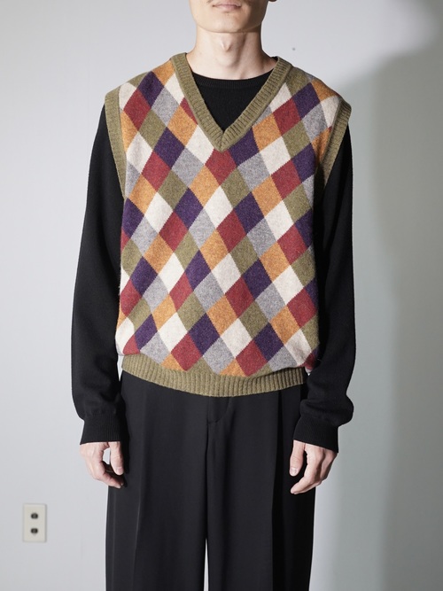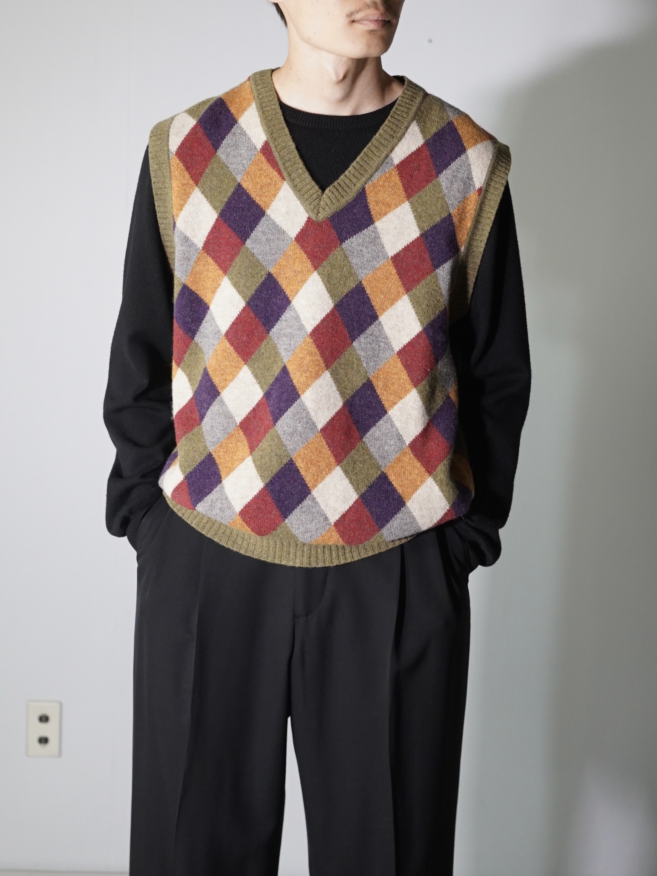 LANDS'END Argyle LAMBS wool knit vest / Made in HONG KONG