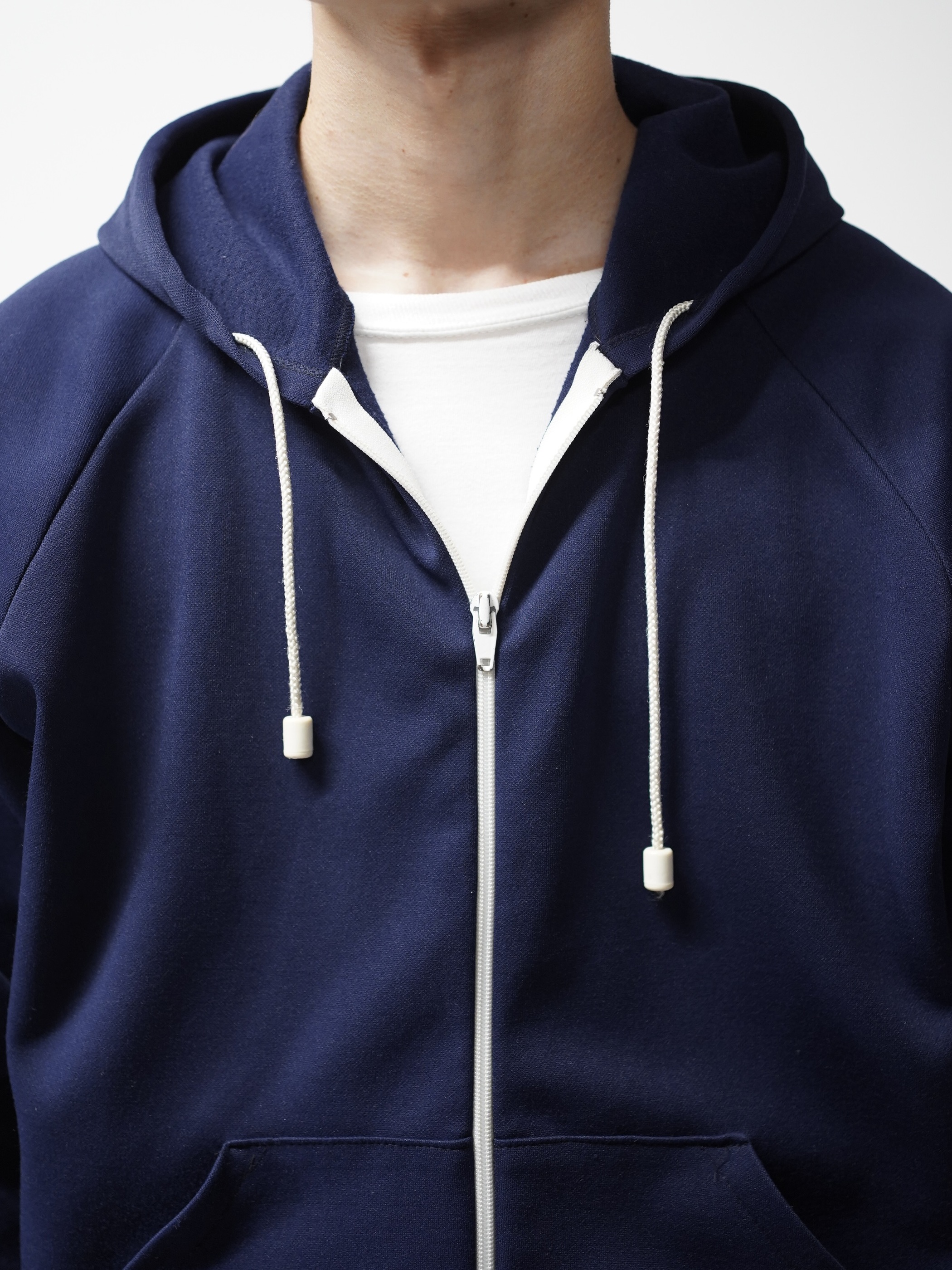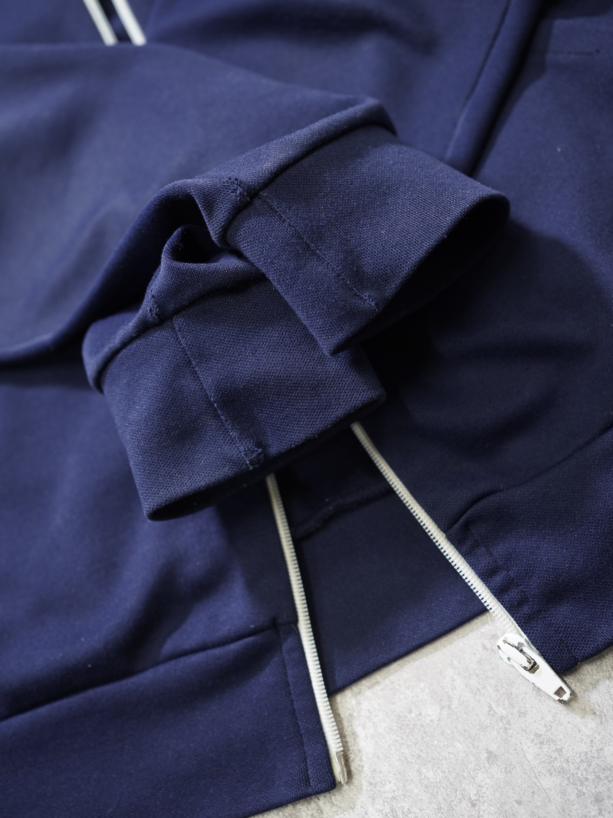 ヨーロッパの古トラックジャケットによく使われる樹脂製のモールドジップ(白いプラジッパー)もレトロな雰囲気が柔らかさを生み出す素晴らしいディテールかと。