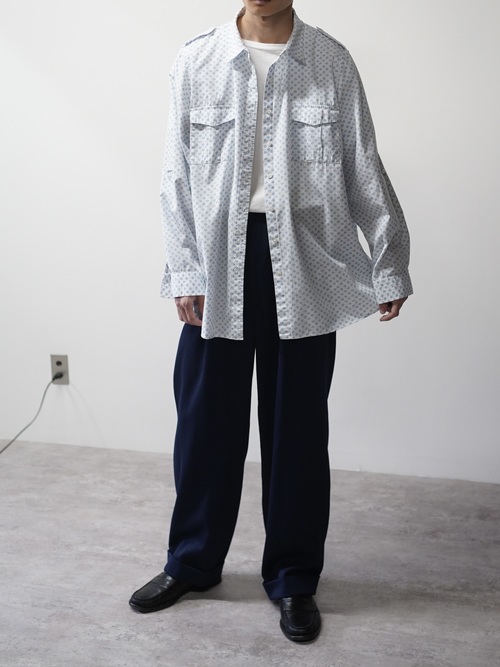 レディースウェアなんですが、変にシェイプが効いていたりせず、何ならスーパーワイドな身幅と長過ぎない着丈が落ち着くバランス。