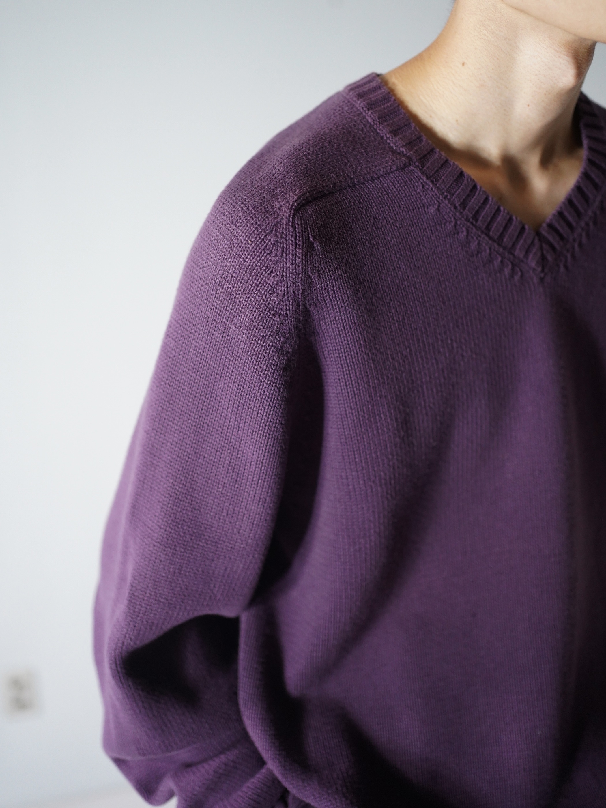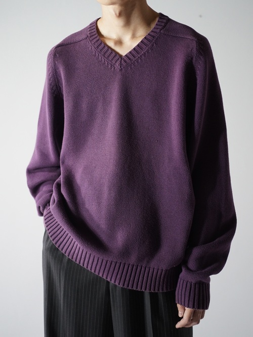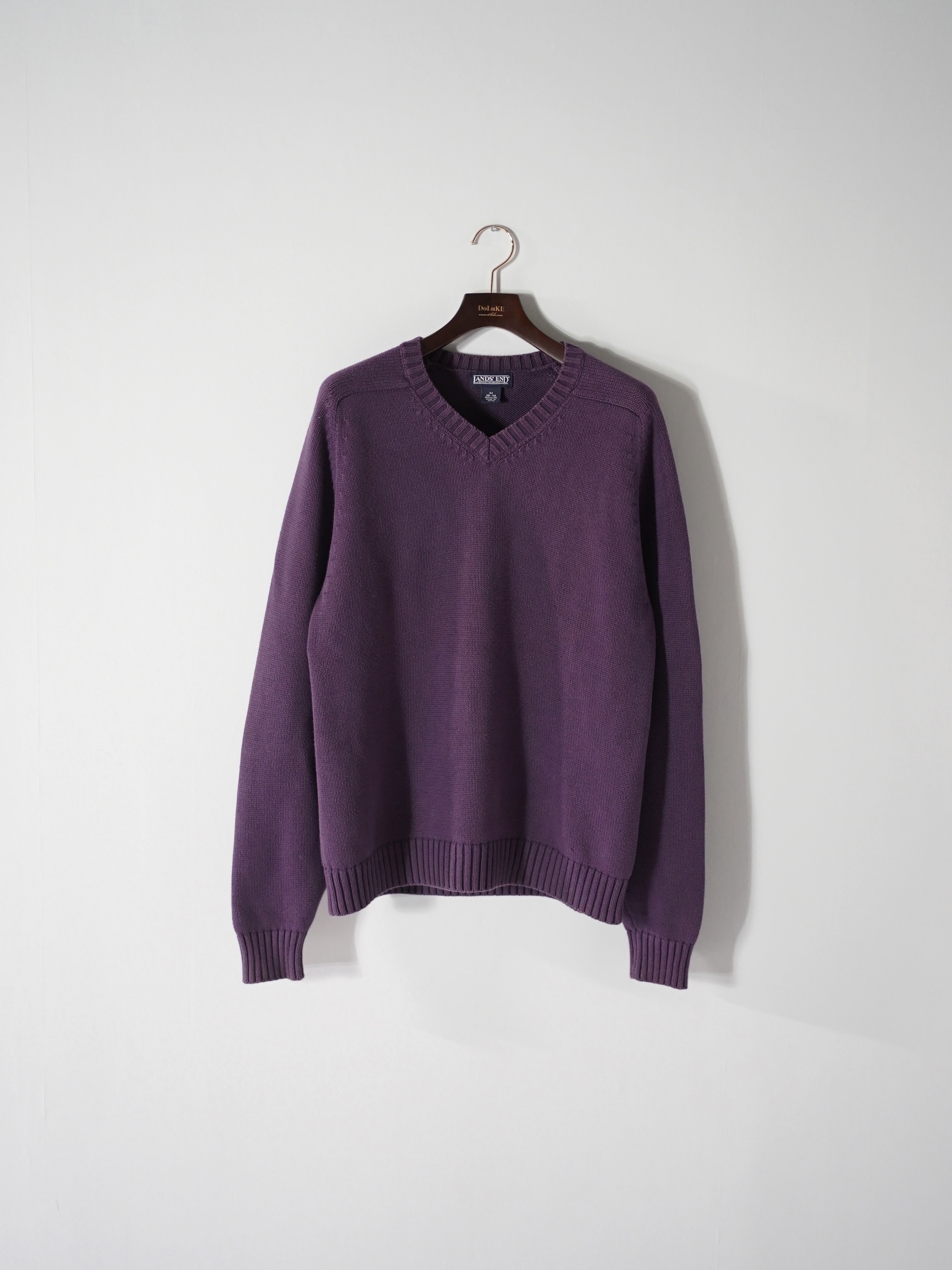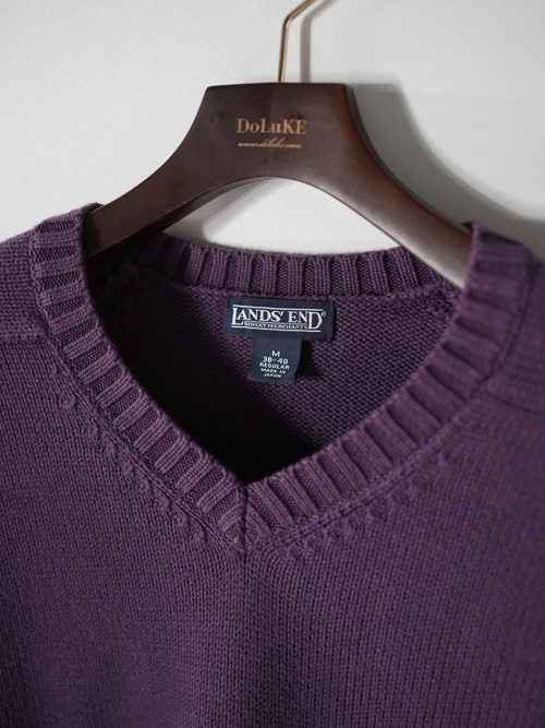 00's LANDS' END "DRIFTER SWEATER" v-neck cotton knit sweater / Made in Japan