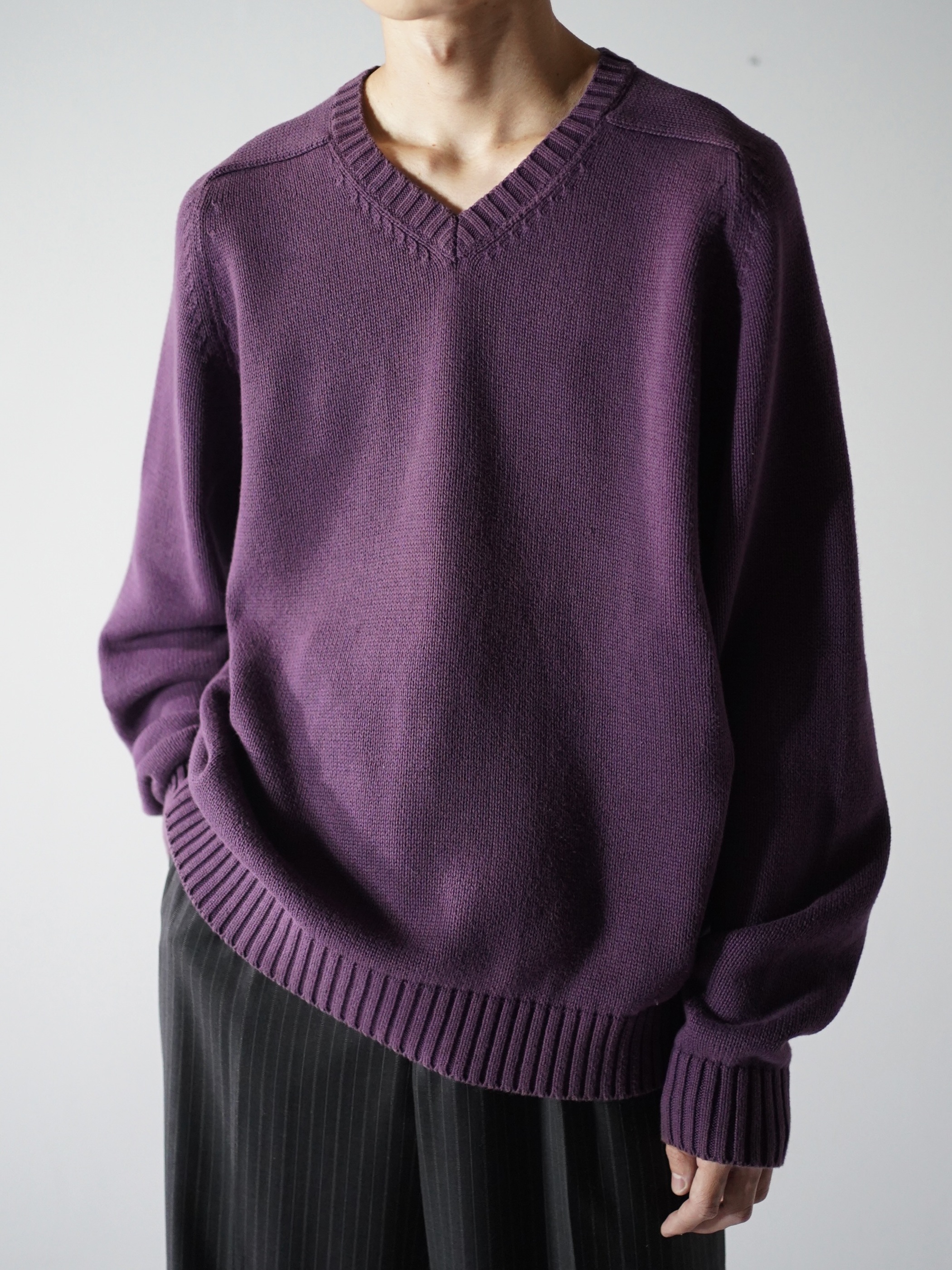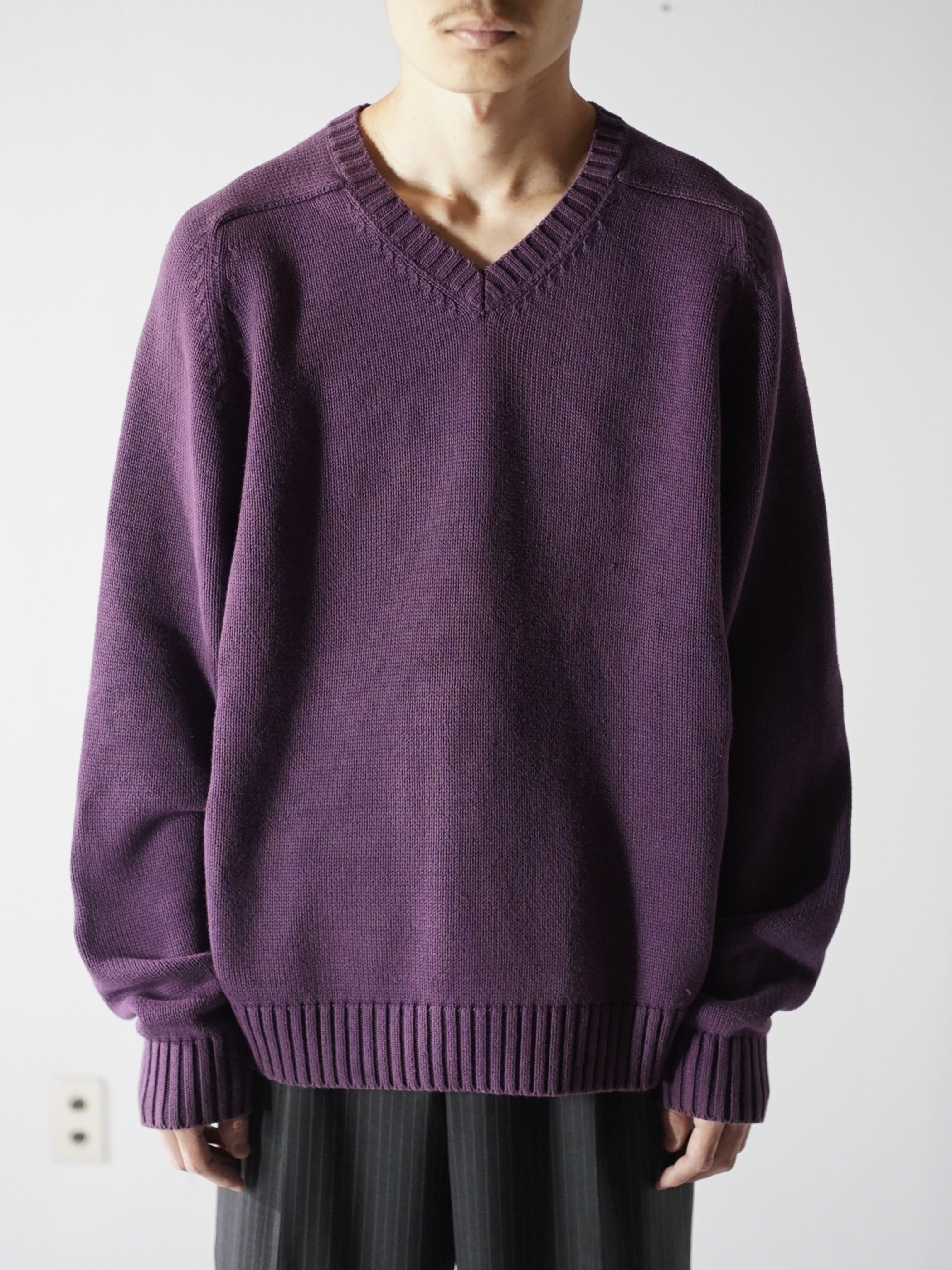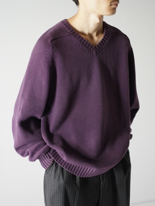 ・00's LANDS' END "DRIFTER SWEATER" v-neck cotton knit sweater / Made in Japan