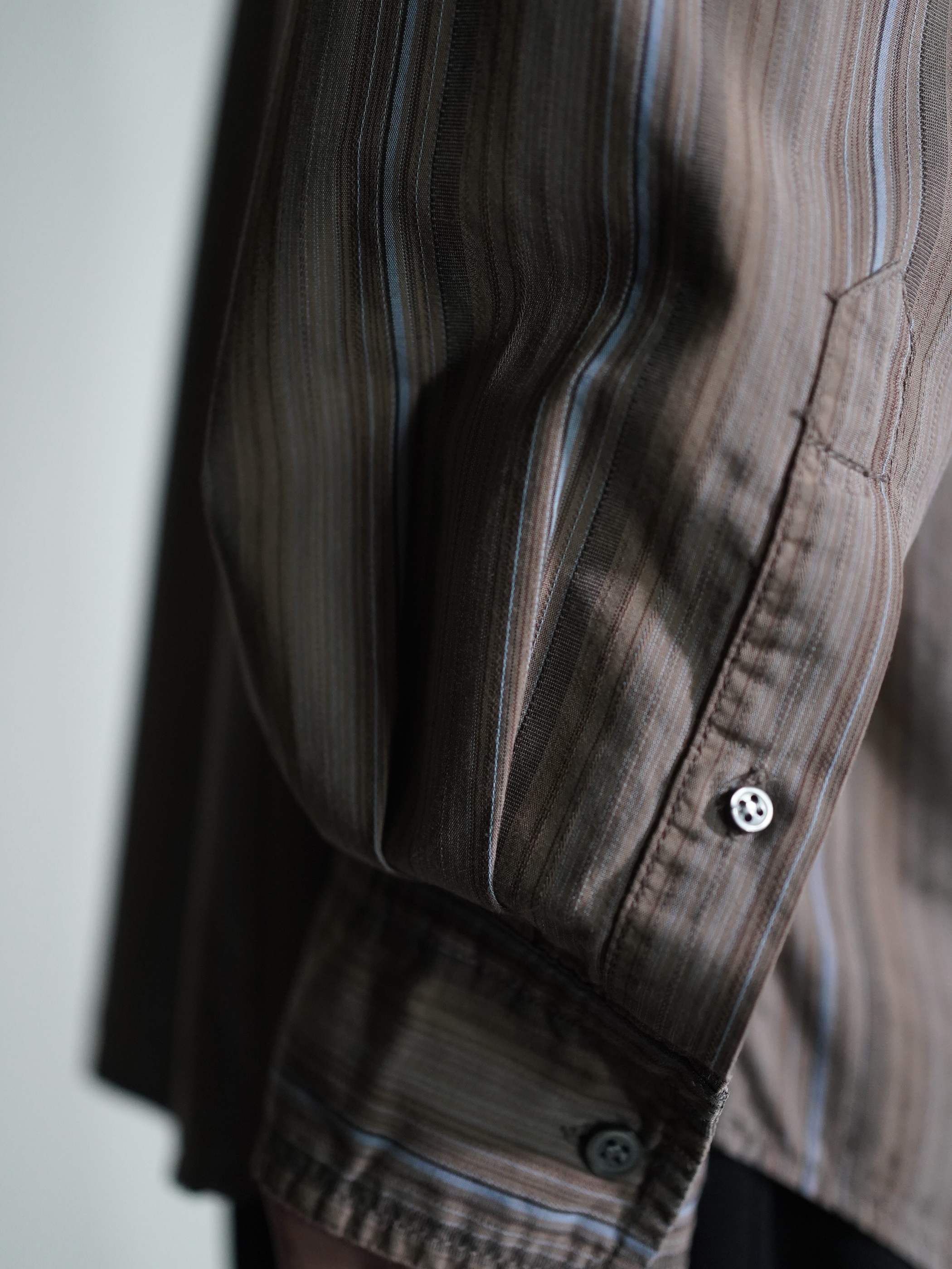 同ブランドのシャツづくりは身幅や袖幅のボリュームを出し過ぎず、丈感も長すぎないありがたいシルエットなおかげで小綺麗に見せてくれます。