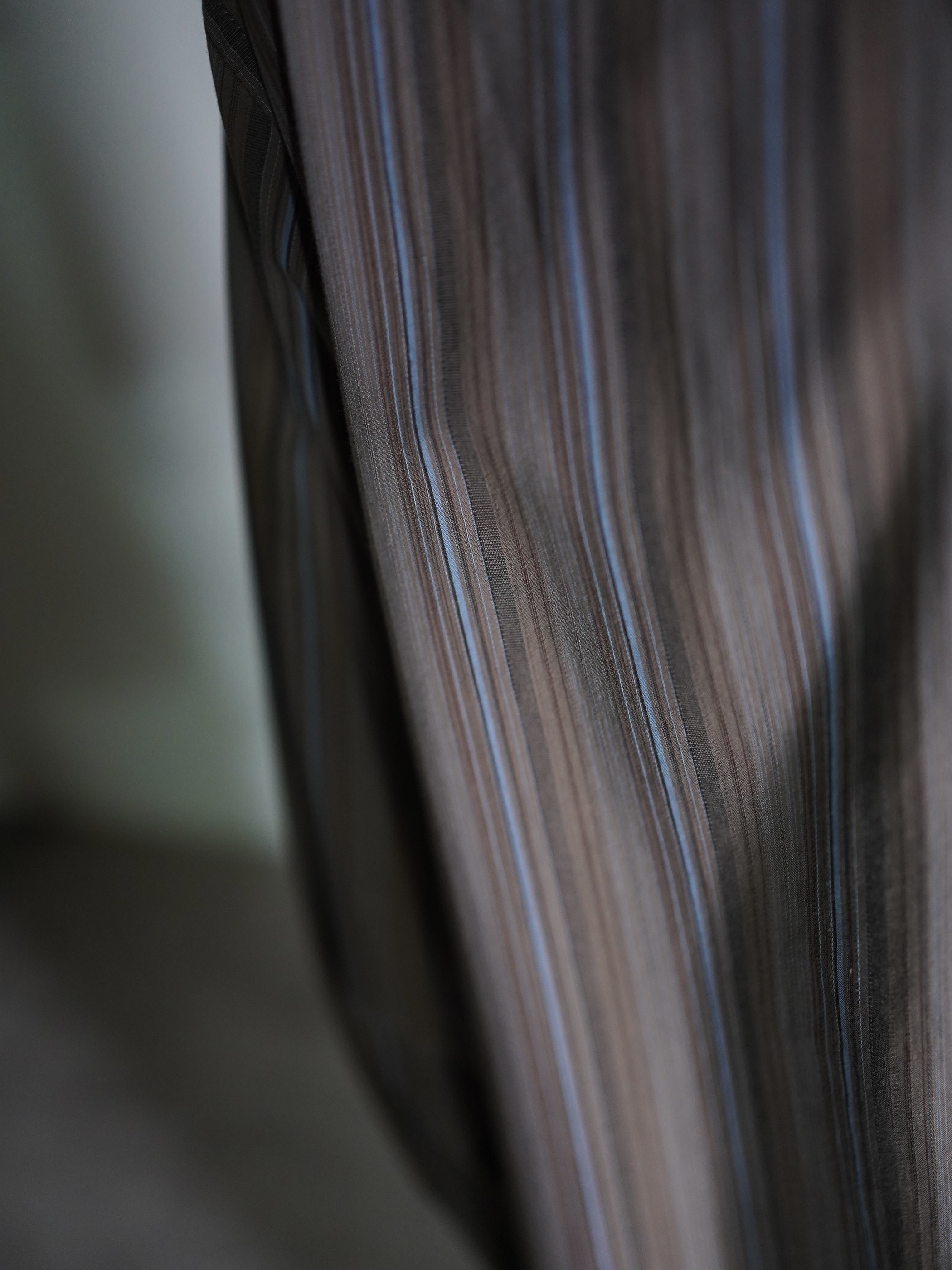 織りによる立体的なストライプ柄。チョコレートブラウンにきれいな水色。