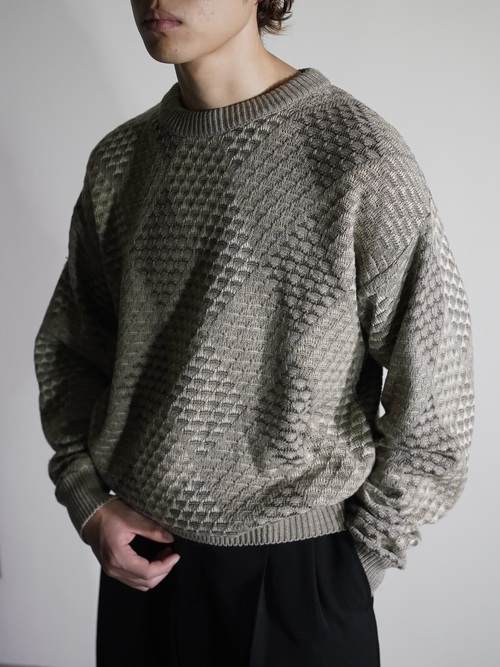 1990~ JANTZEN 3D design argyle acrylic knit sweater/Made in Mexico