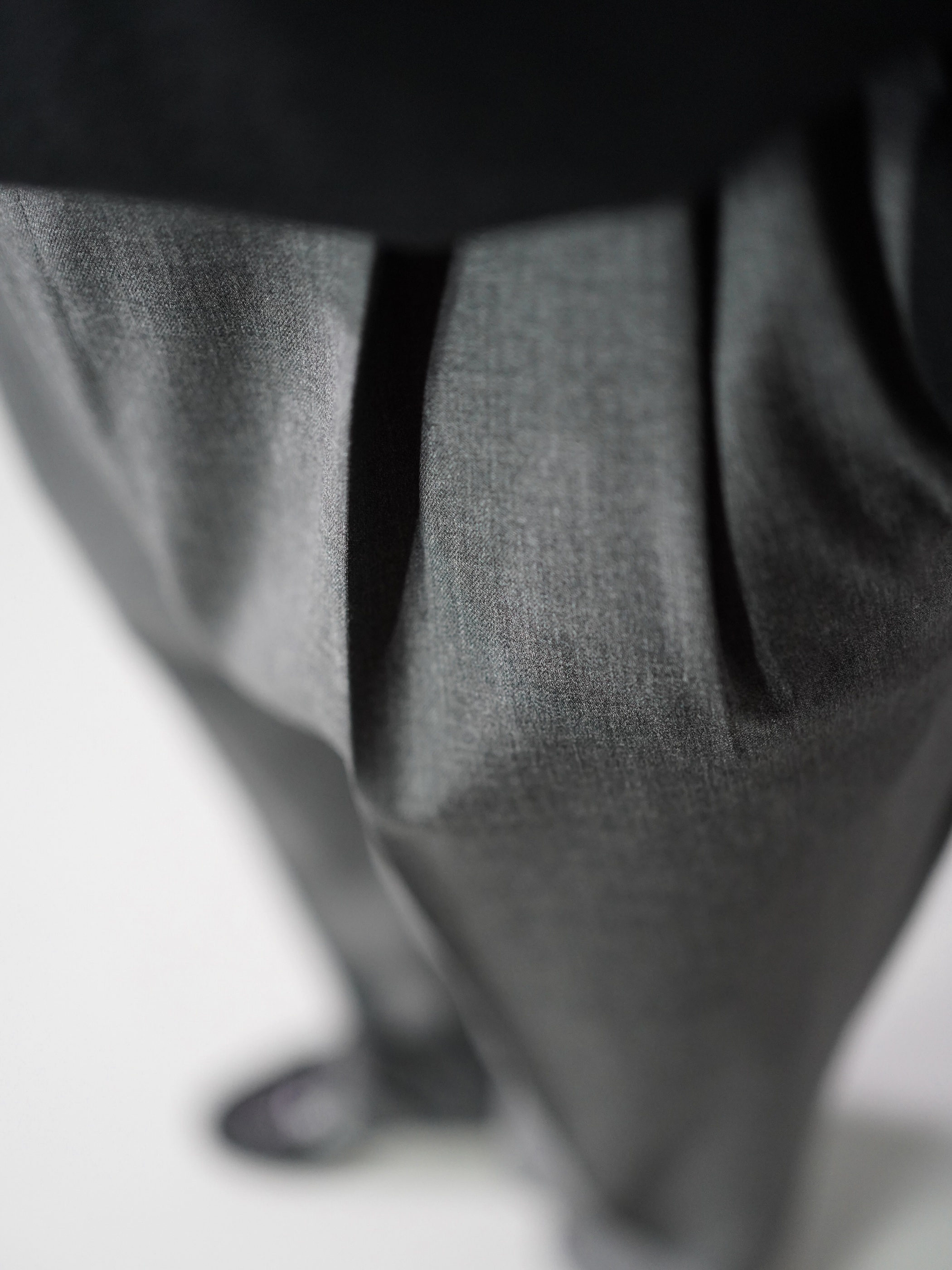 一度脚を通せば、職人の精密な仕事が生み出す“しなやかな落ち感”と“美しいライン”に、