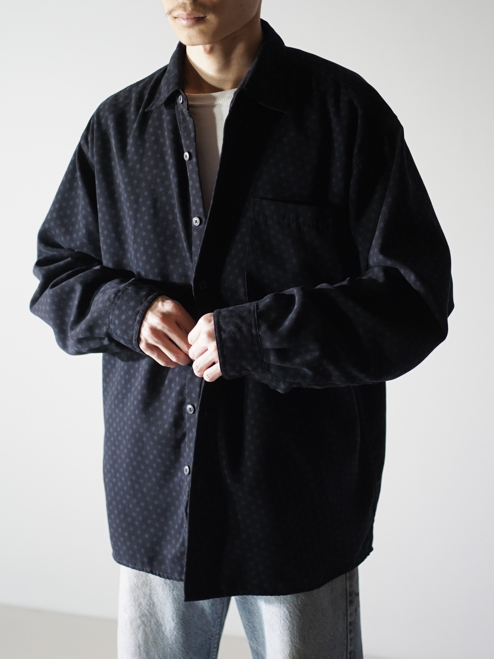 黒地にブルーの菱形模様が、怪しげながらもシックでクラシカル。