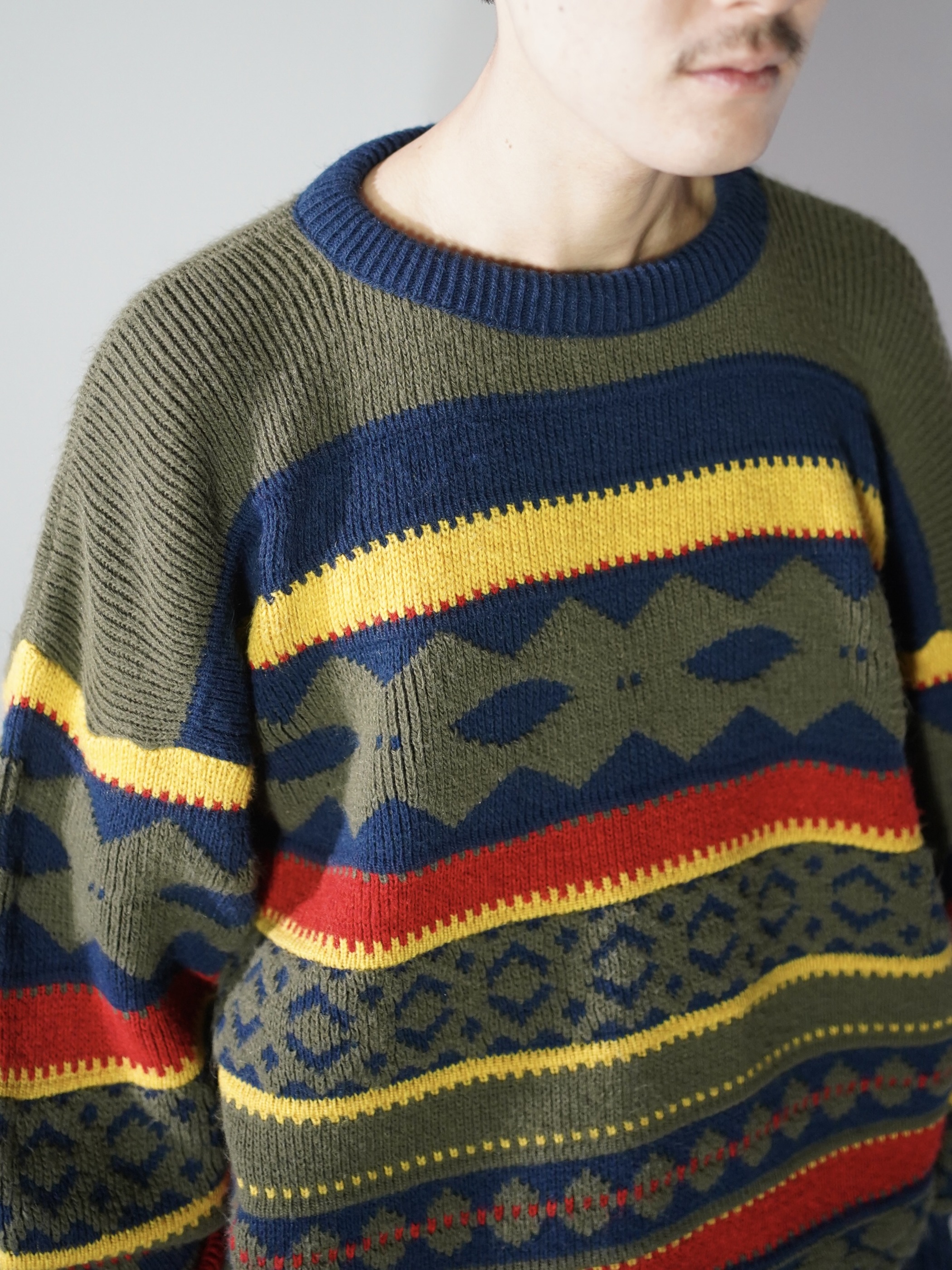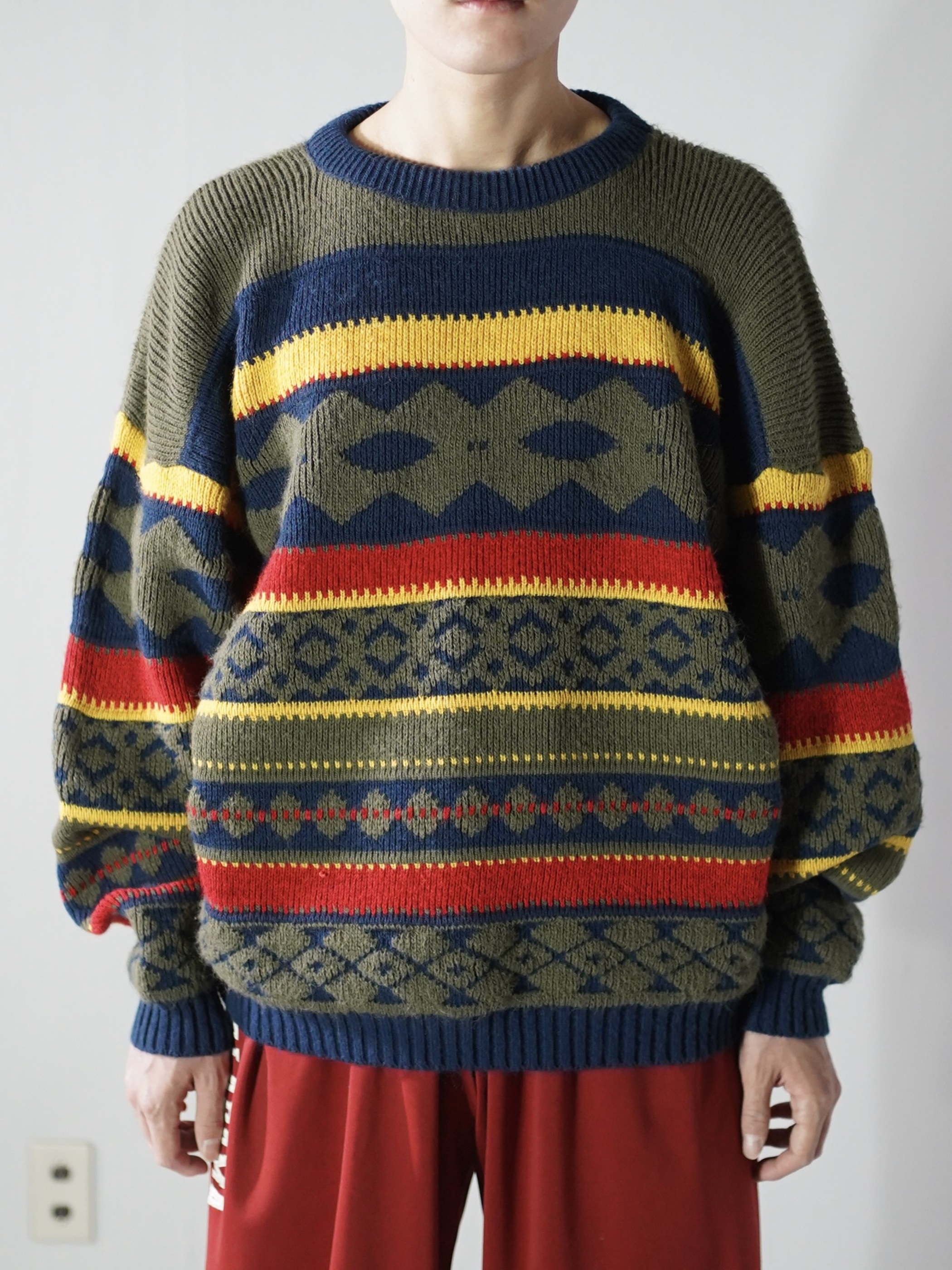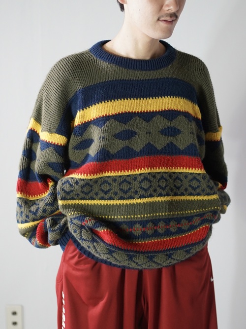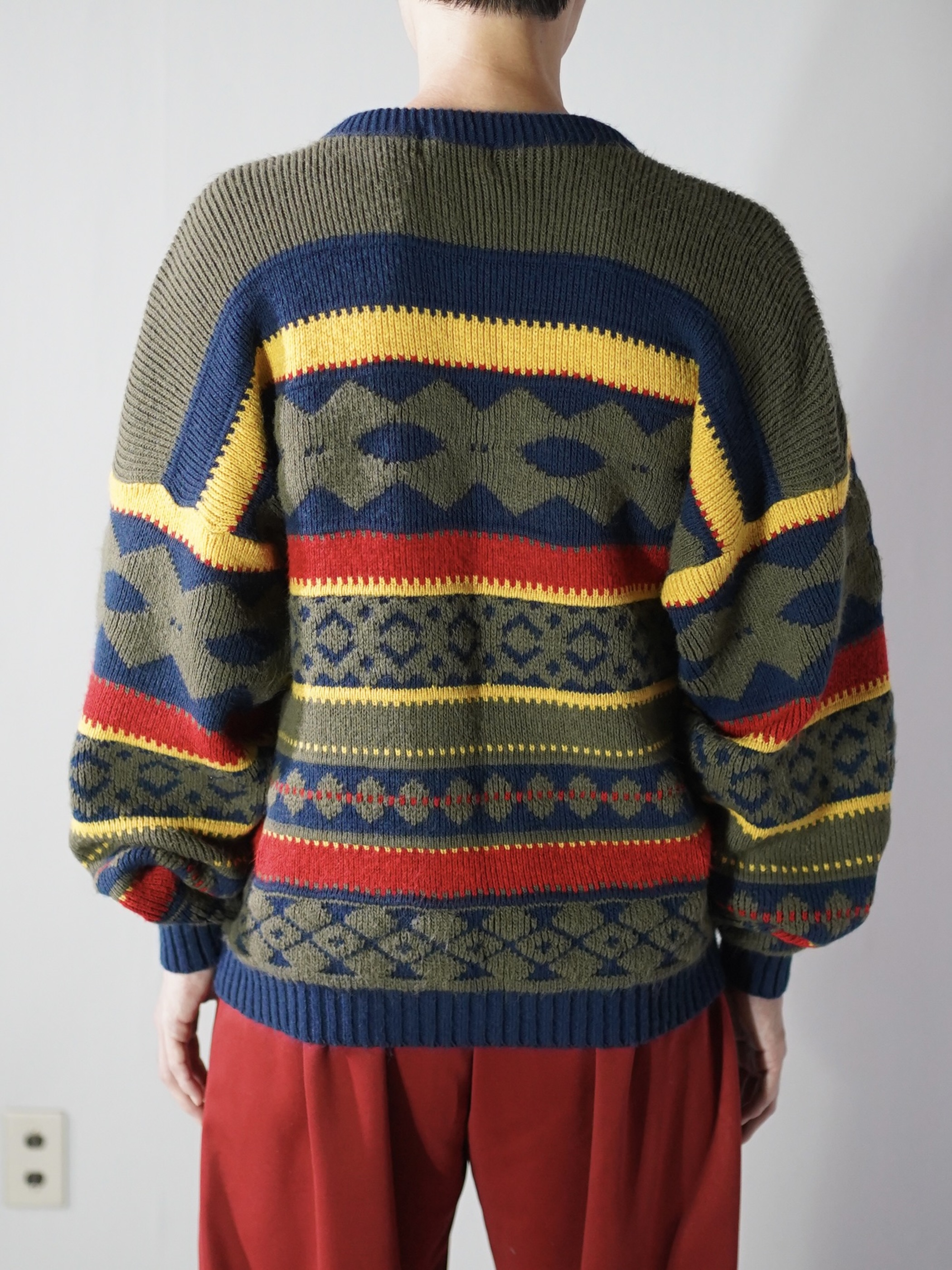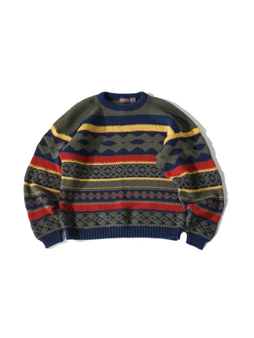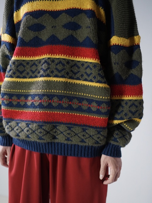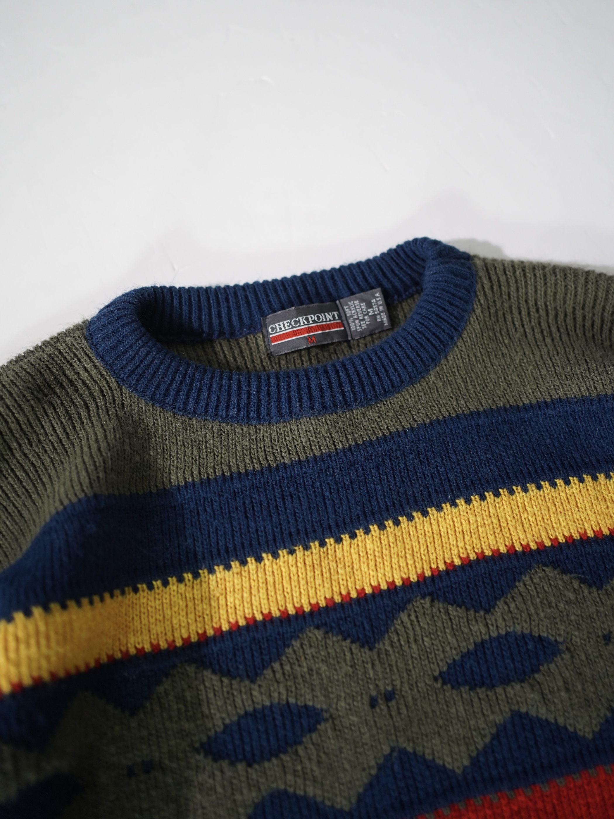 ・1990's CHECKPOINT Native pattern border acryl knit sweater / Made in USA