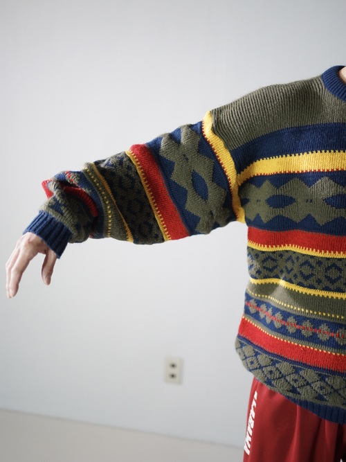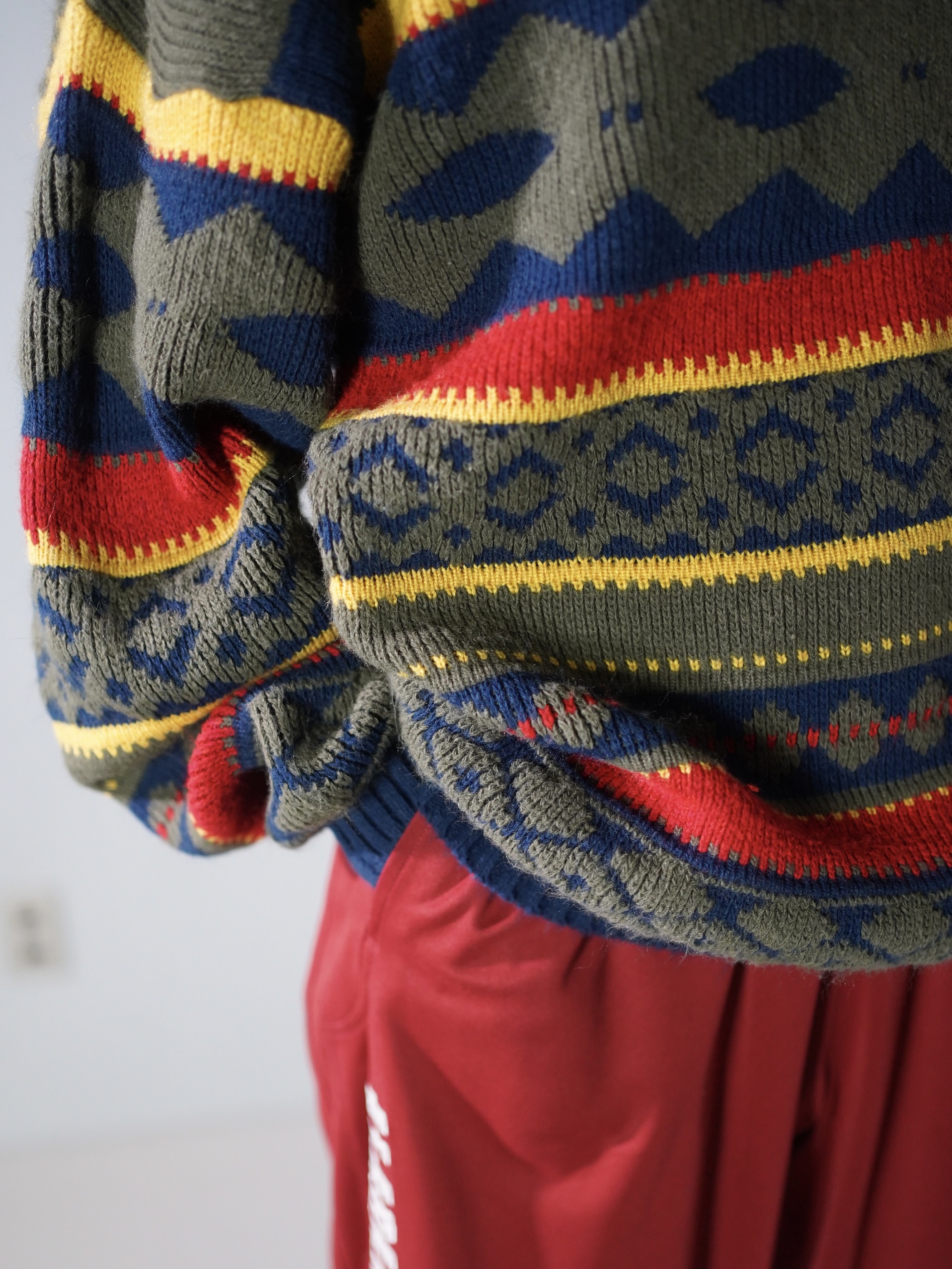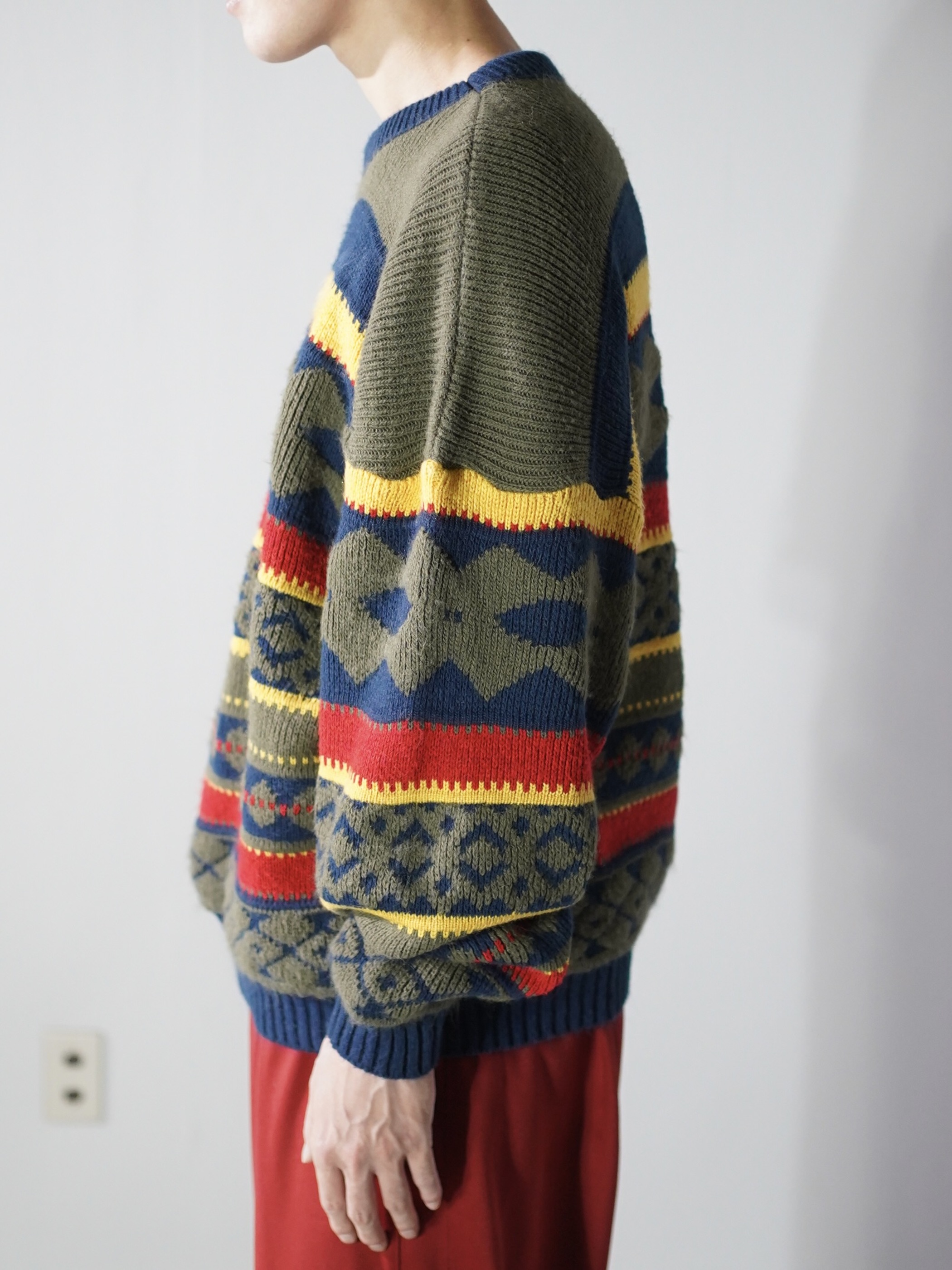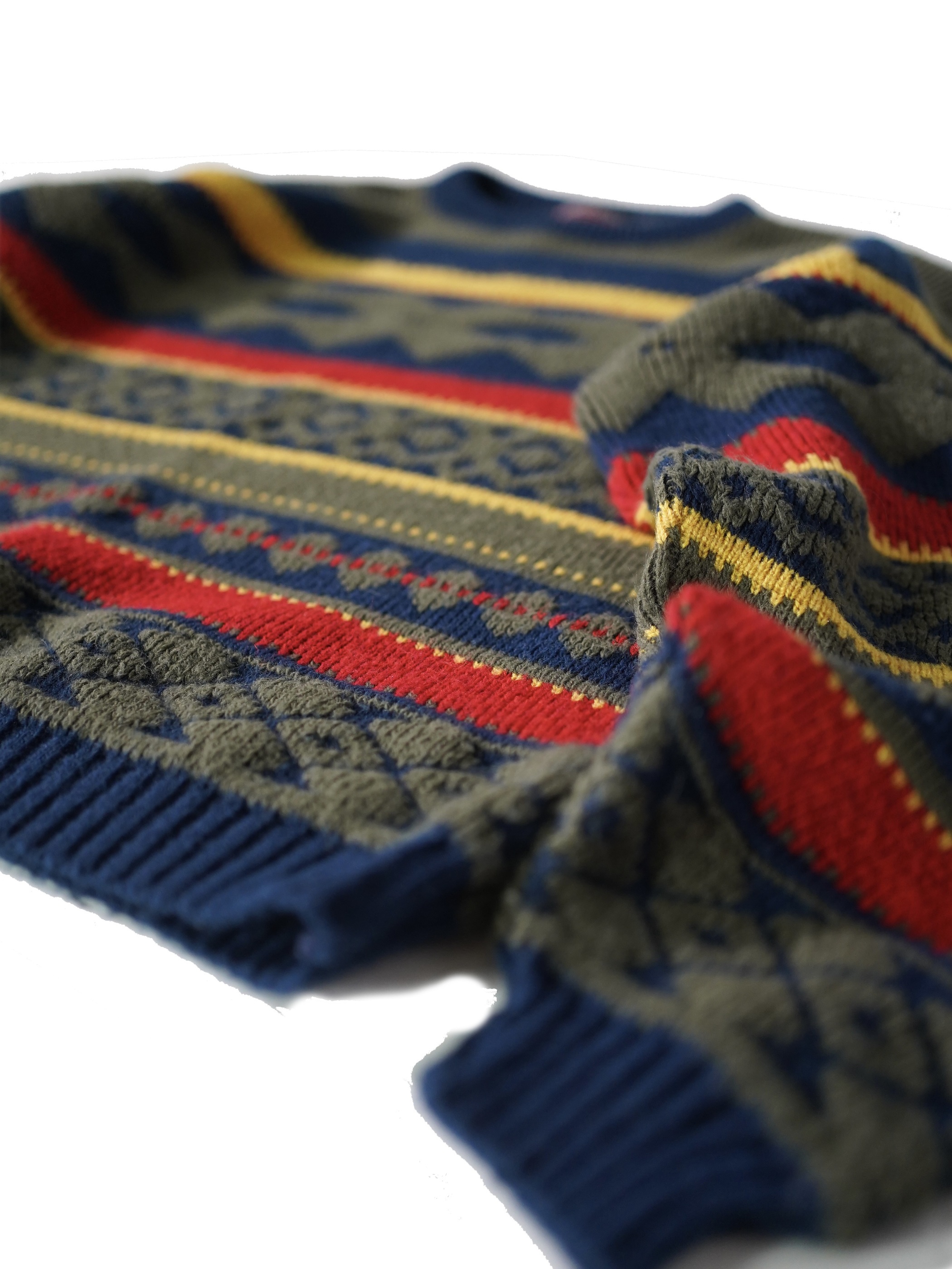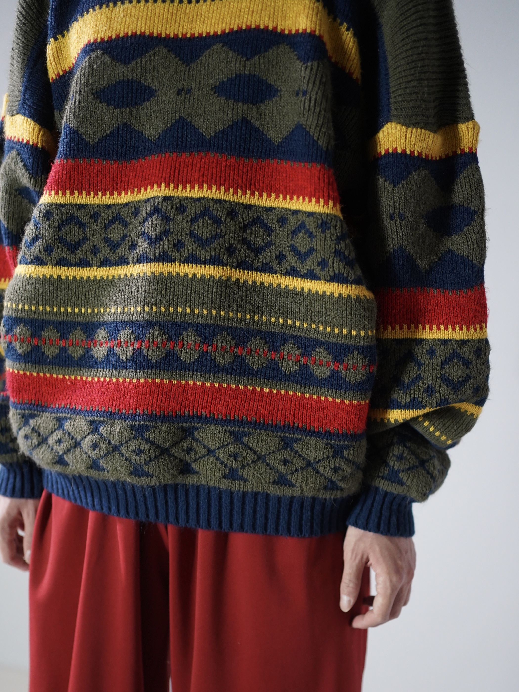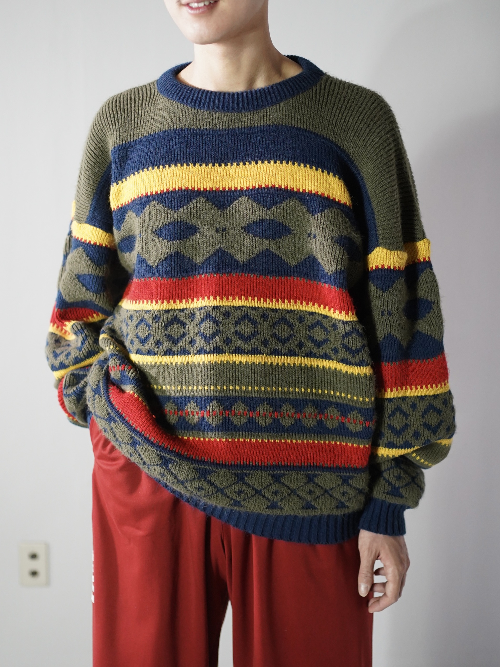 ・1990's CHECKPOINT Native pattern border acryl knit sweater / Made in USA
