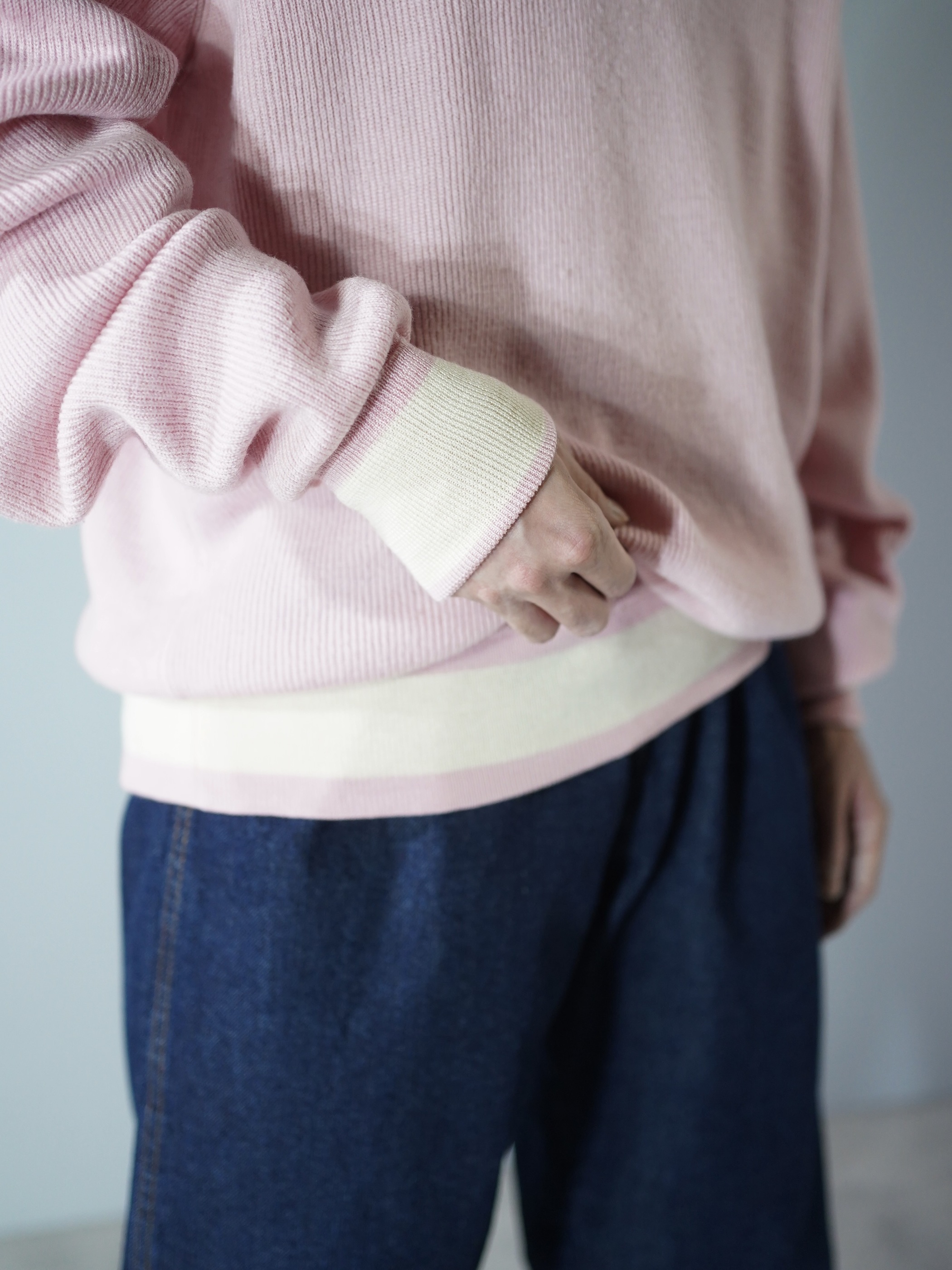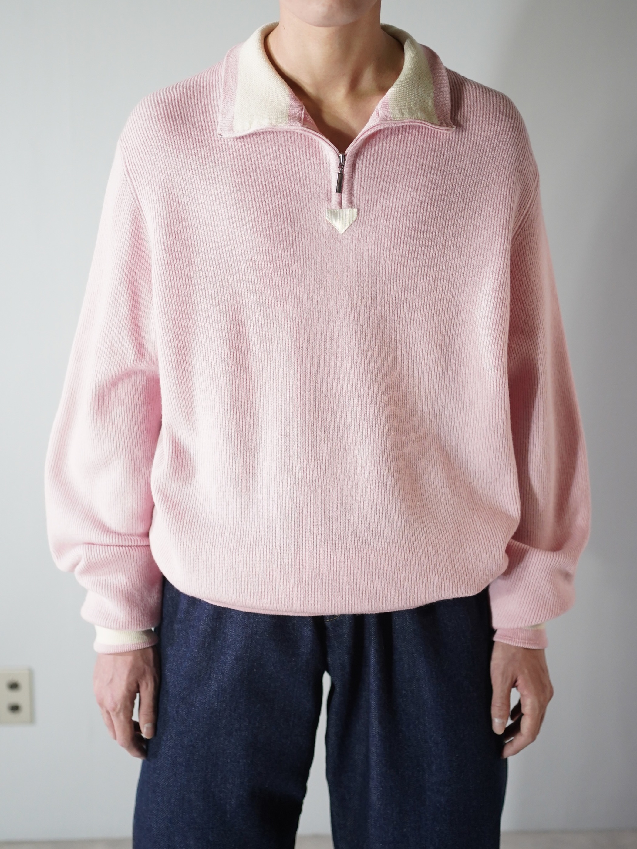 ユーロ物のもっちりリブニット。癖のないピンクカラーのイタリア製。