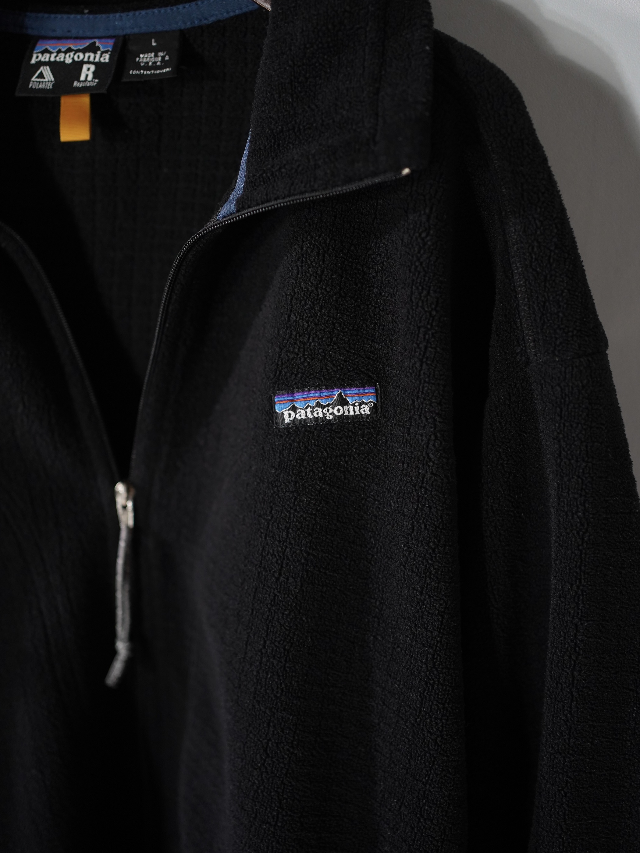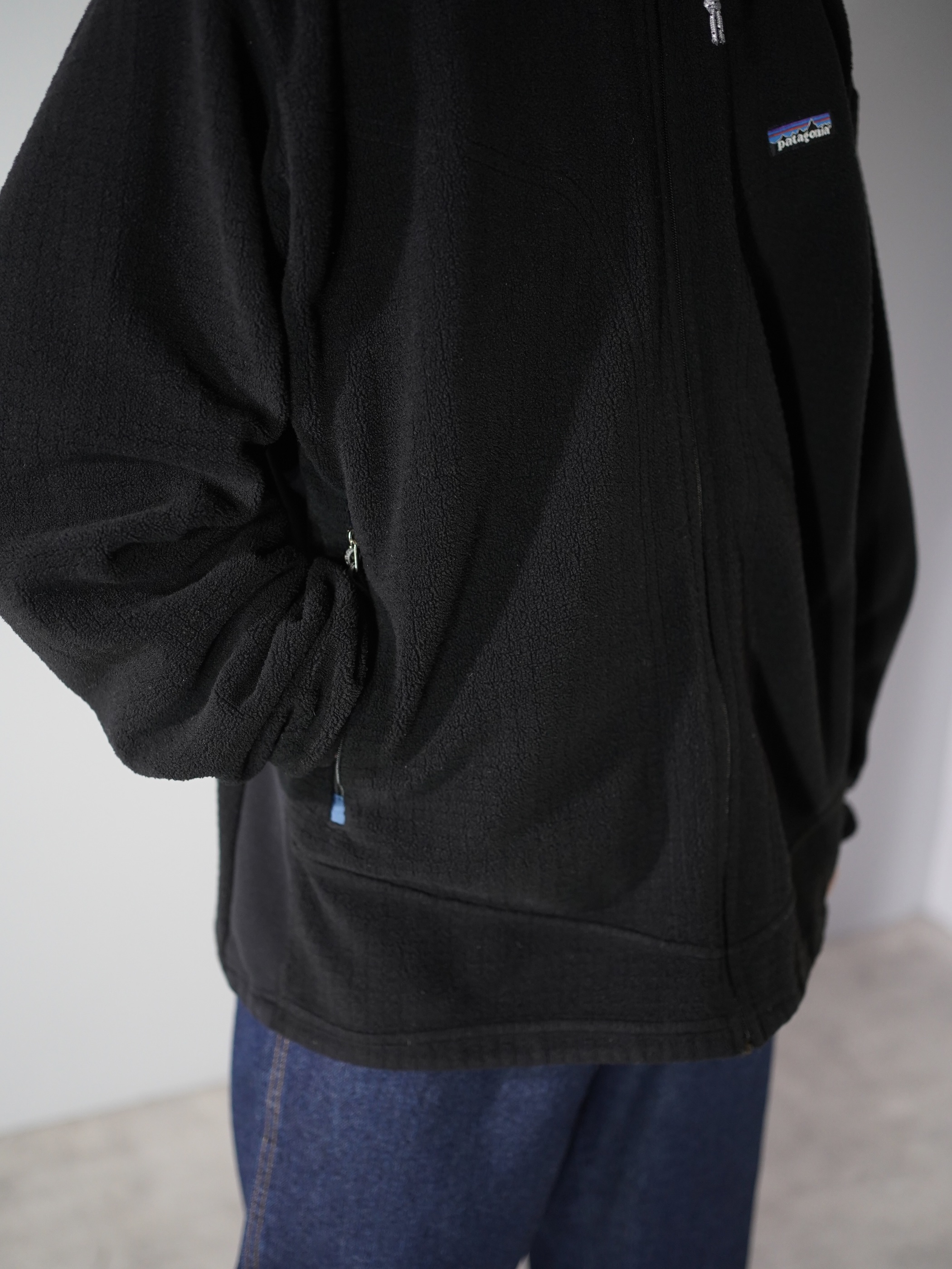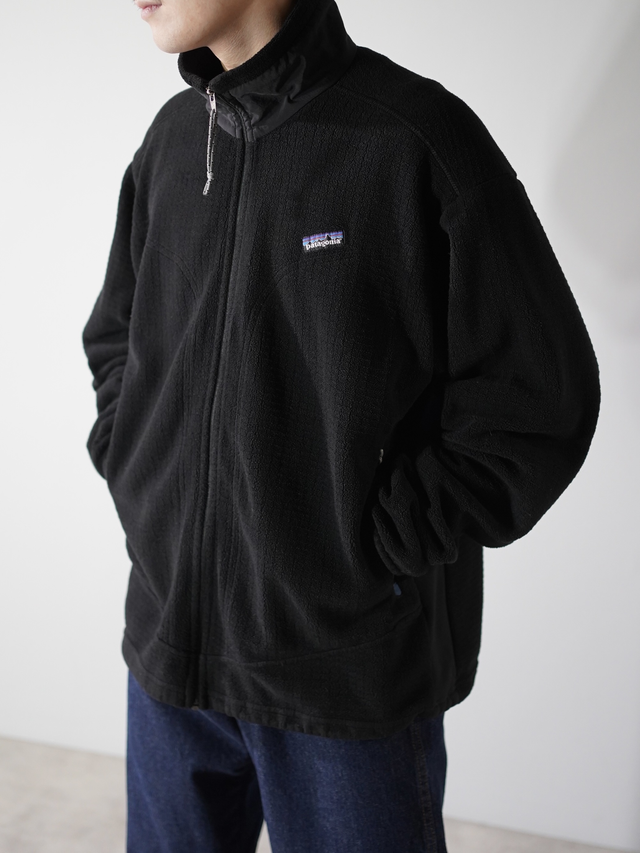 同色異素材切り替えの2001年製パタゴニア ポーラテックフリースジャケット。