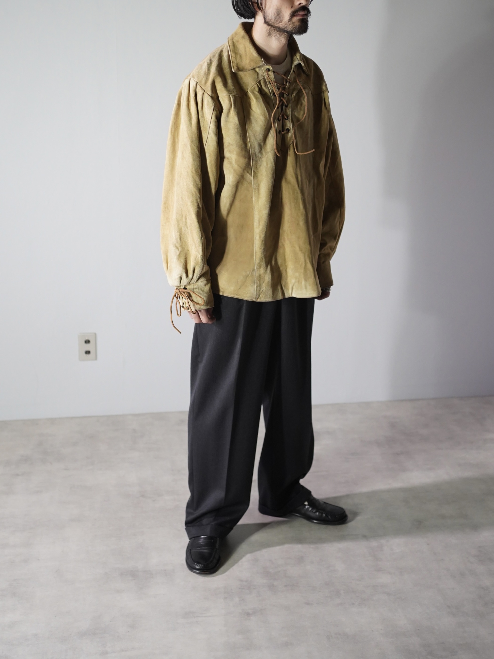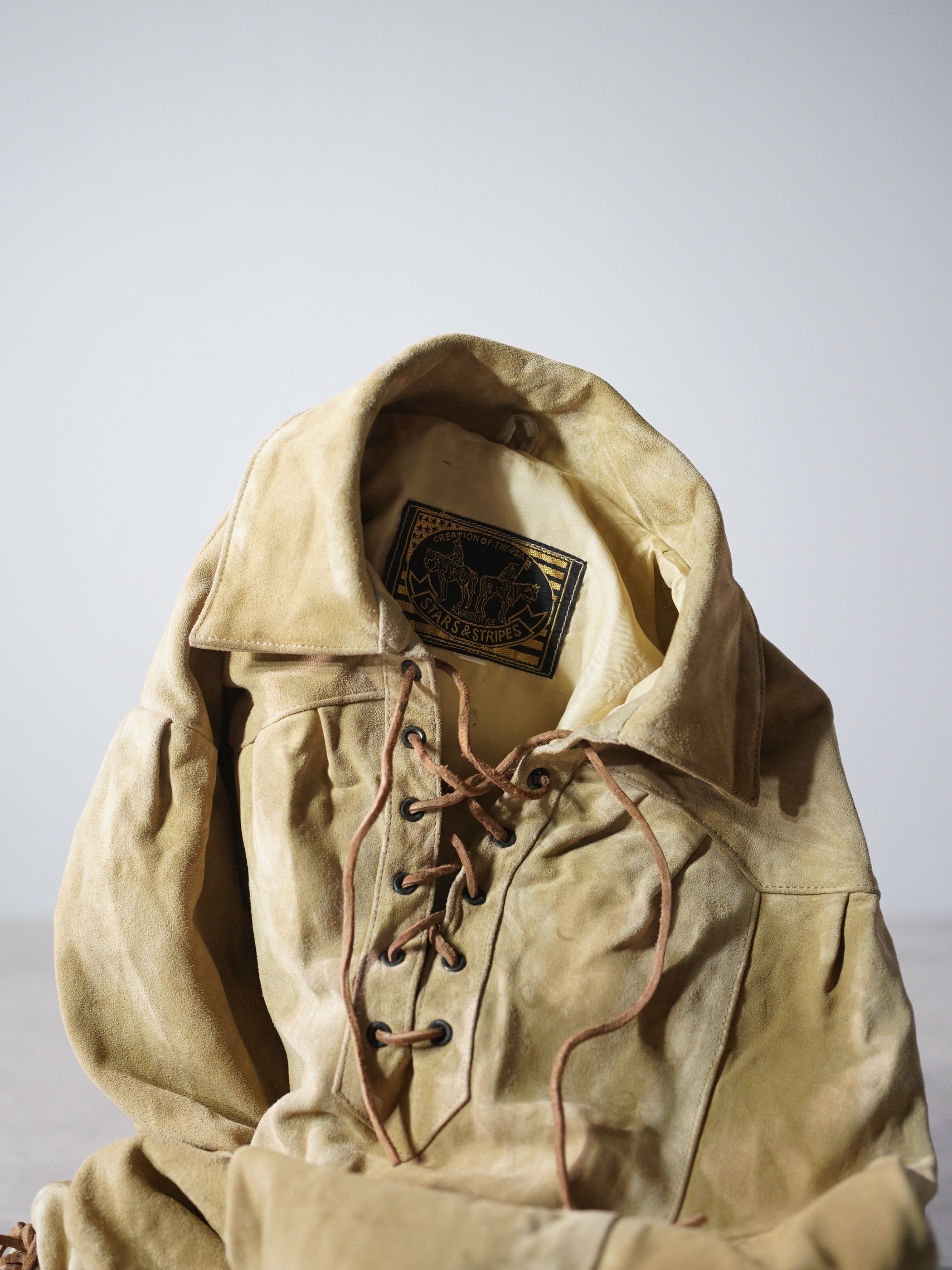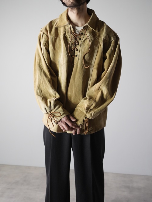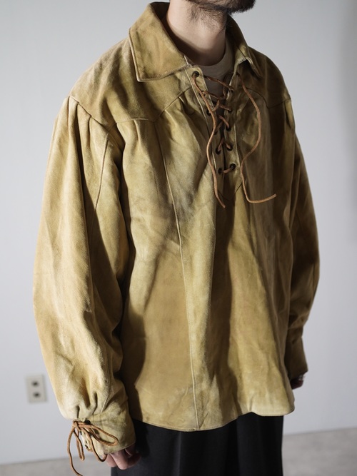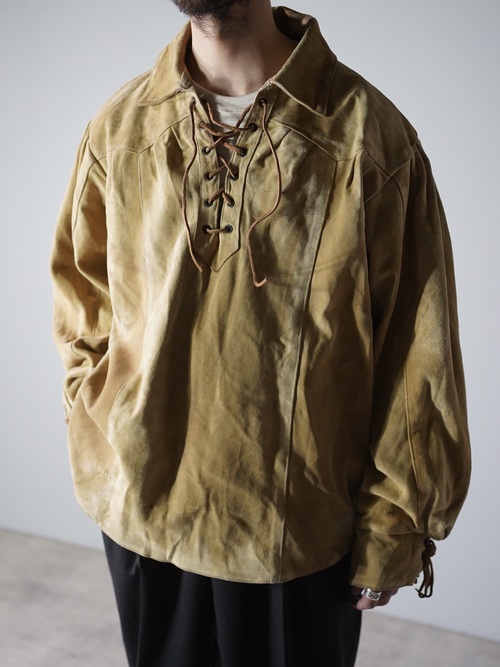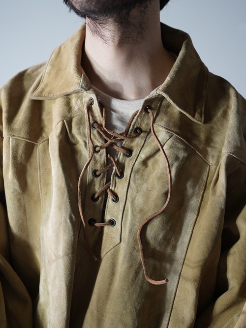 ・1980's- STARS&STRIPES Suède leather lace up Pullover shirt