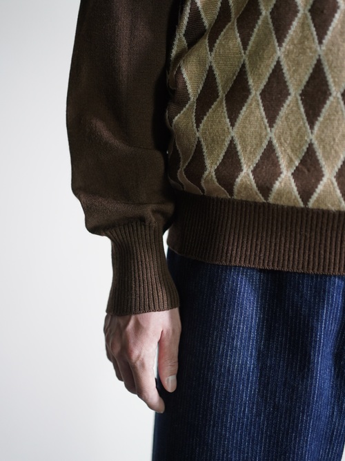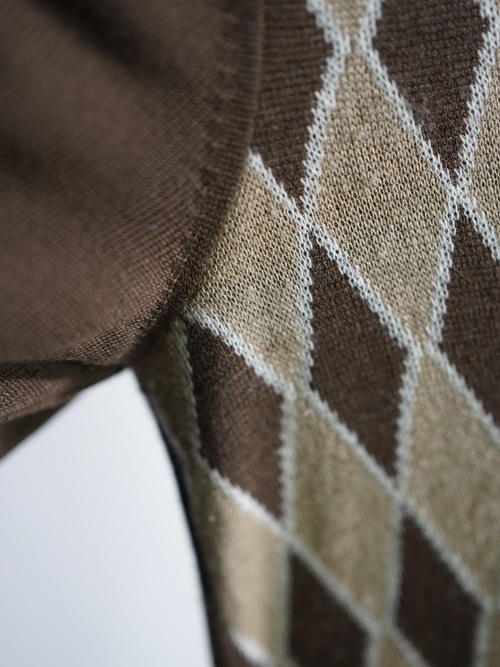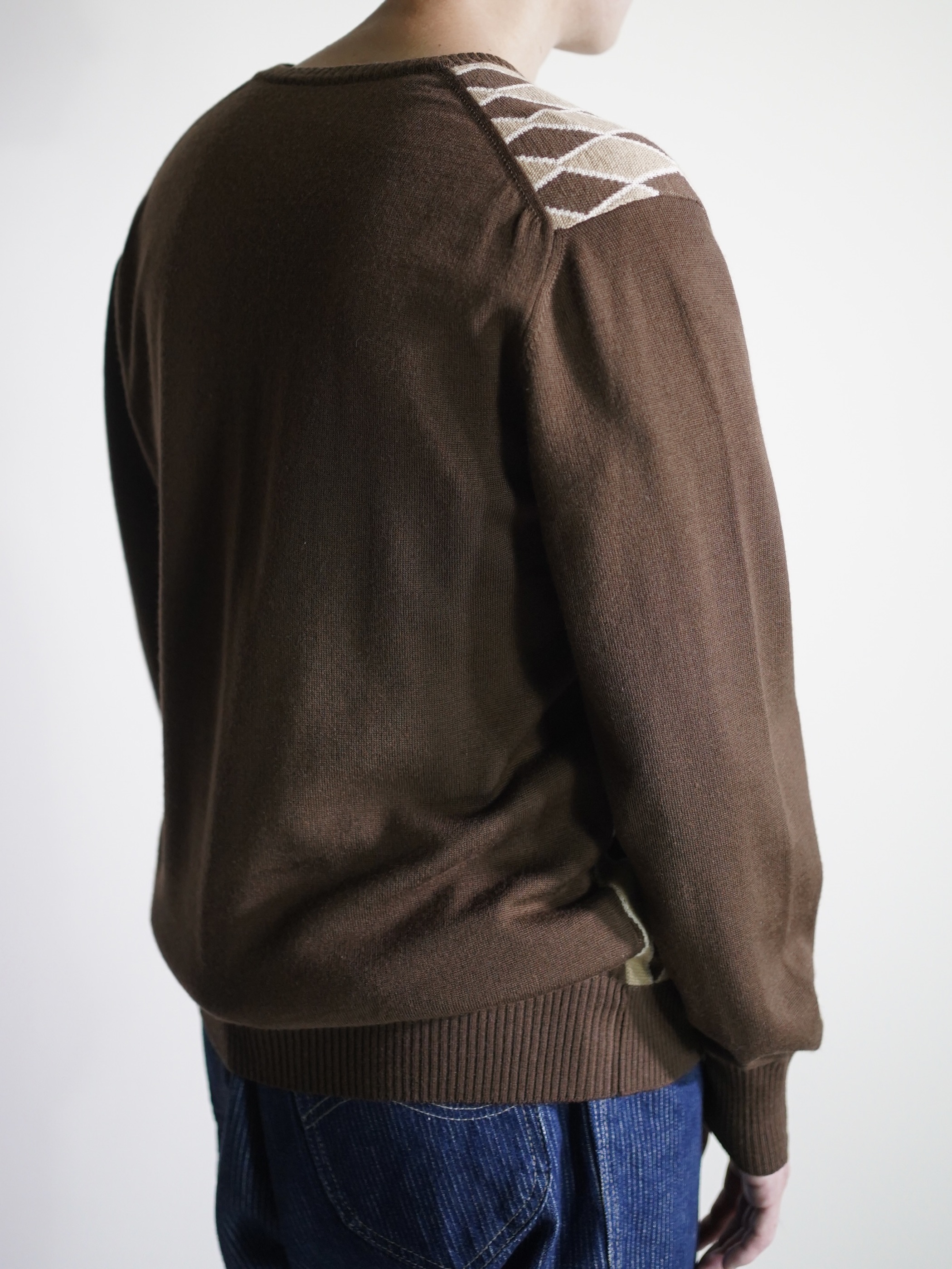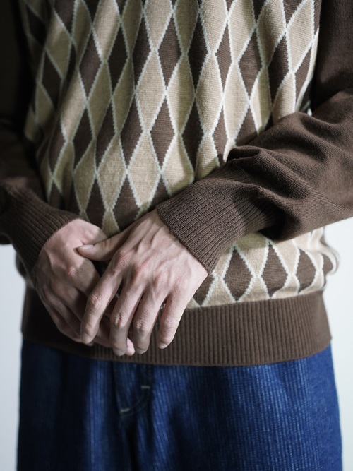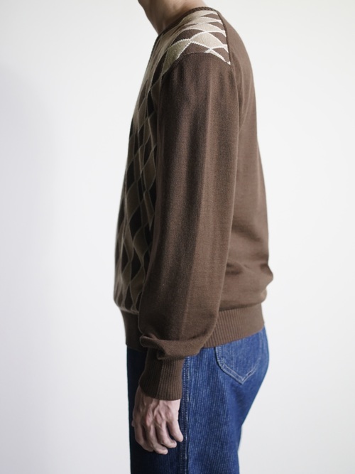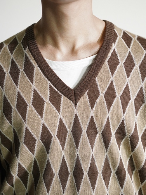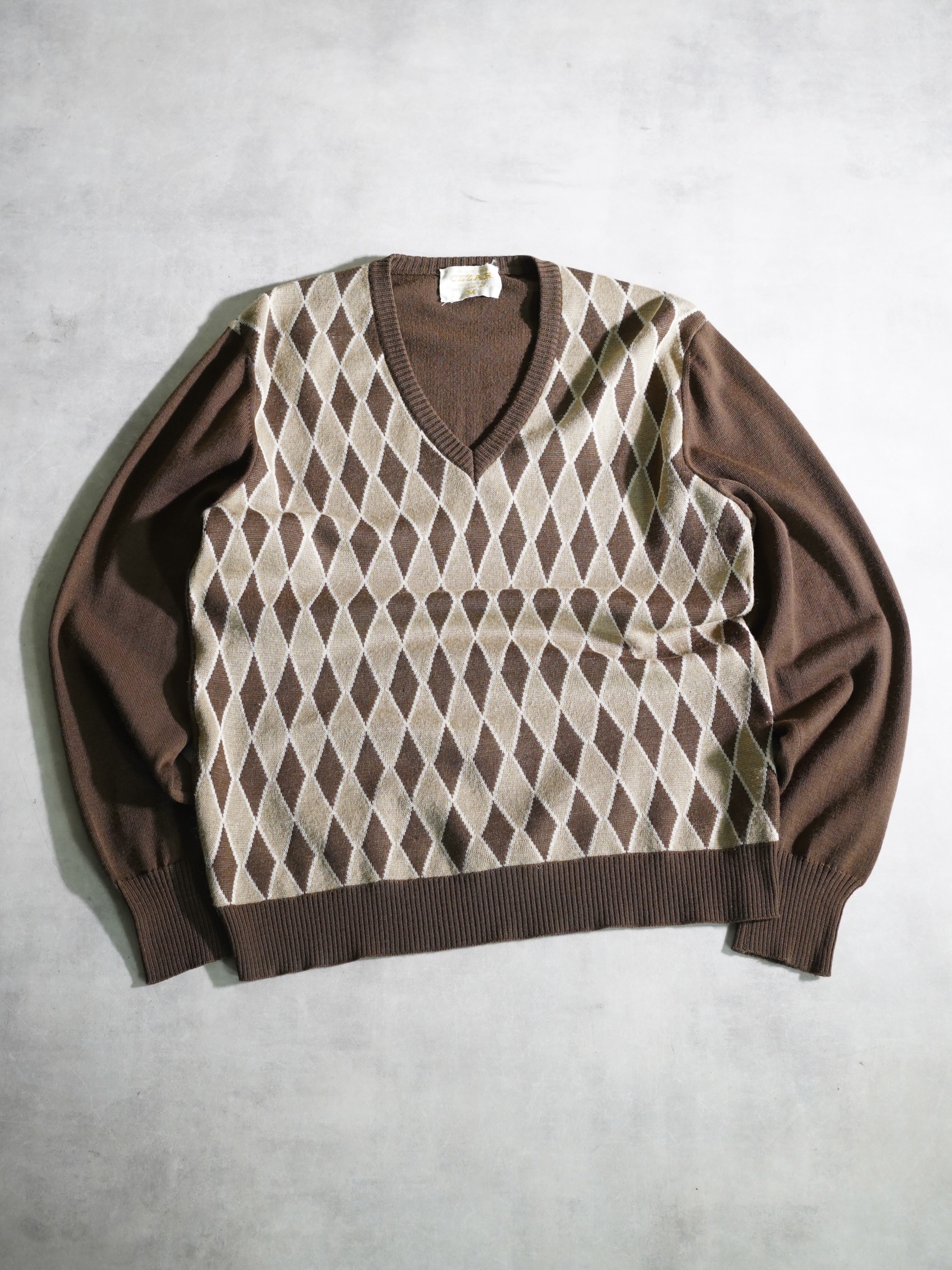 1980's CEZAR argyle pattern wool V-neck knit sweater/Made in Italy