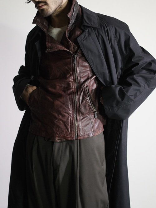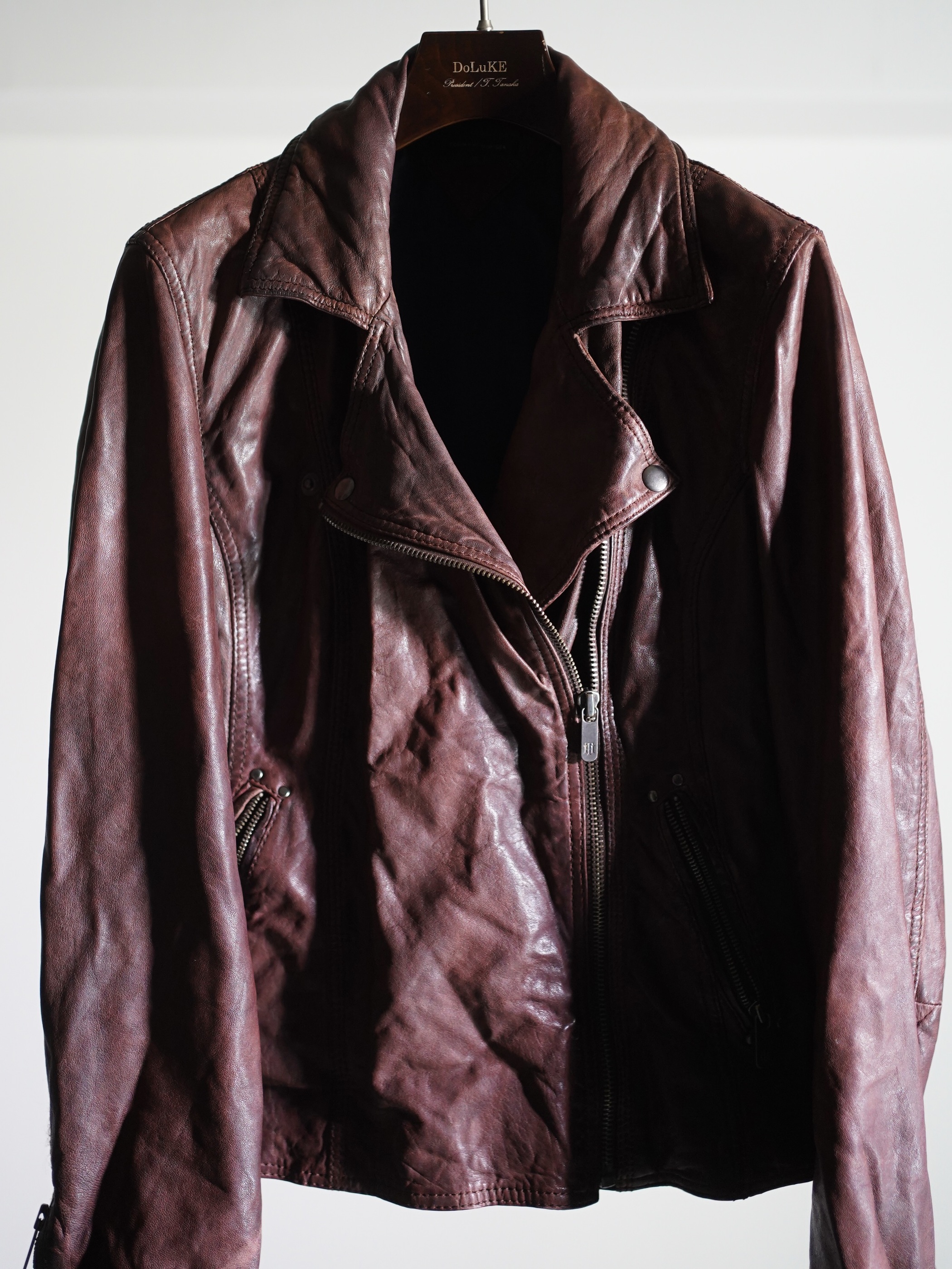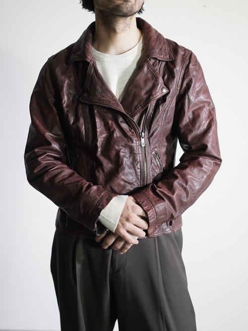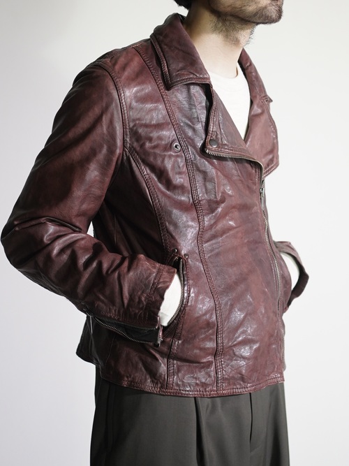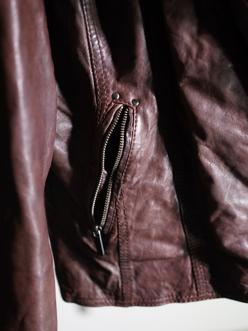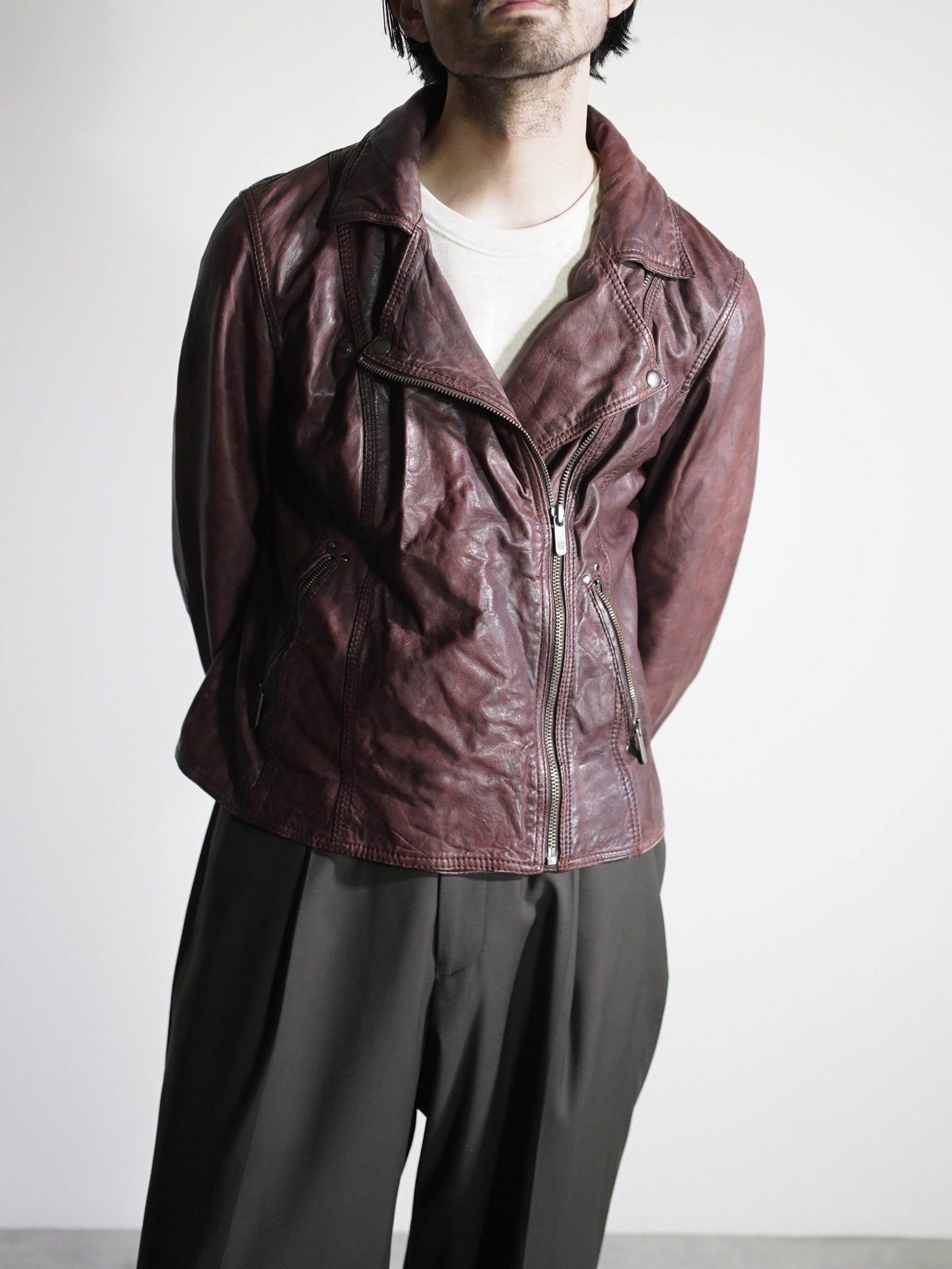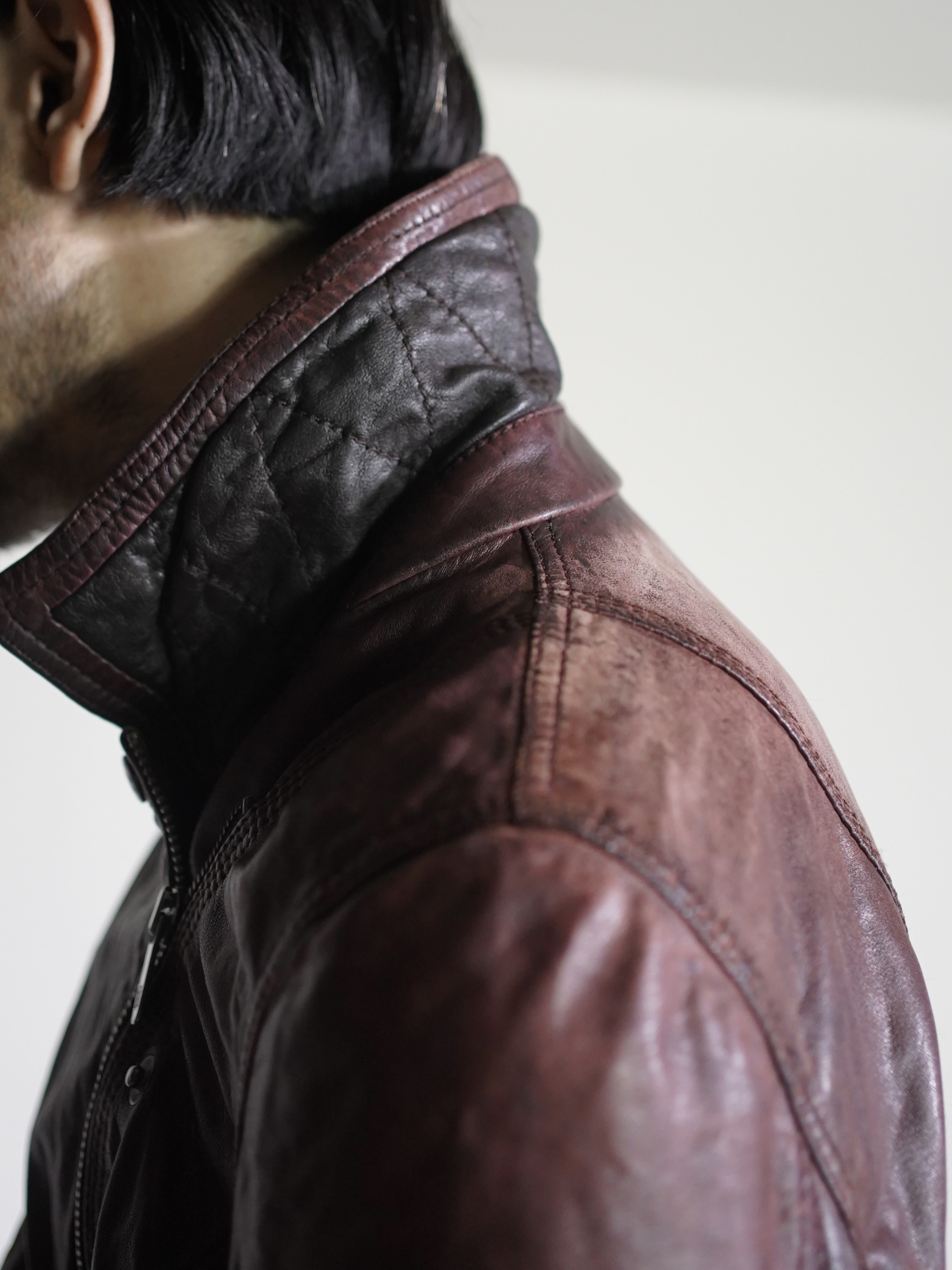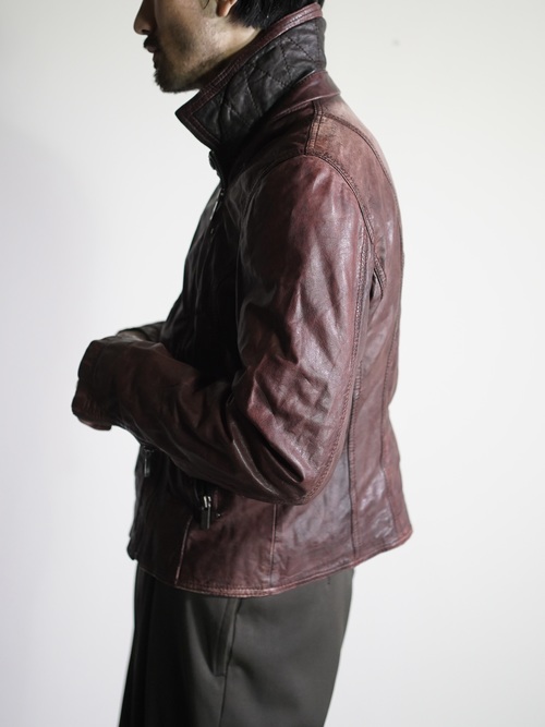 タイトなライダース着てる人はいないかもですが、この柔らかく、でもハリのある革の質感と、エッジの効いた色。