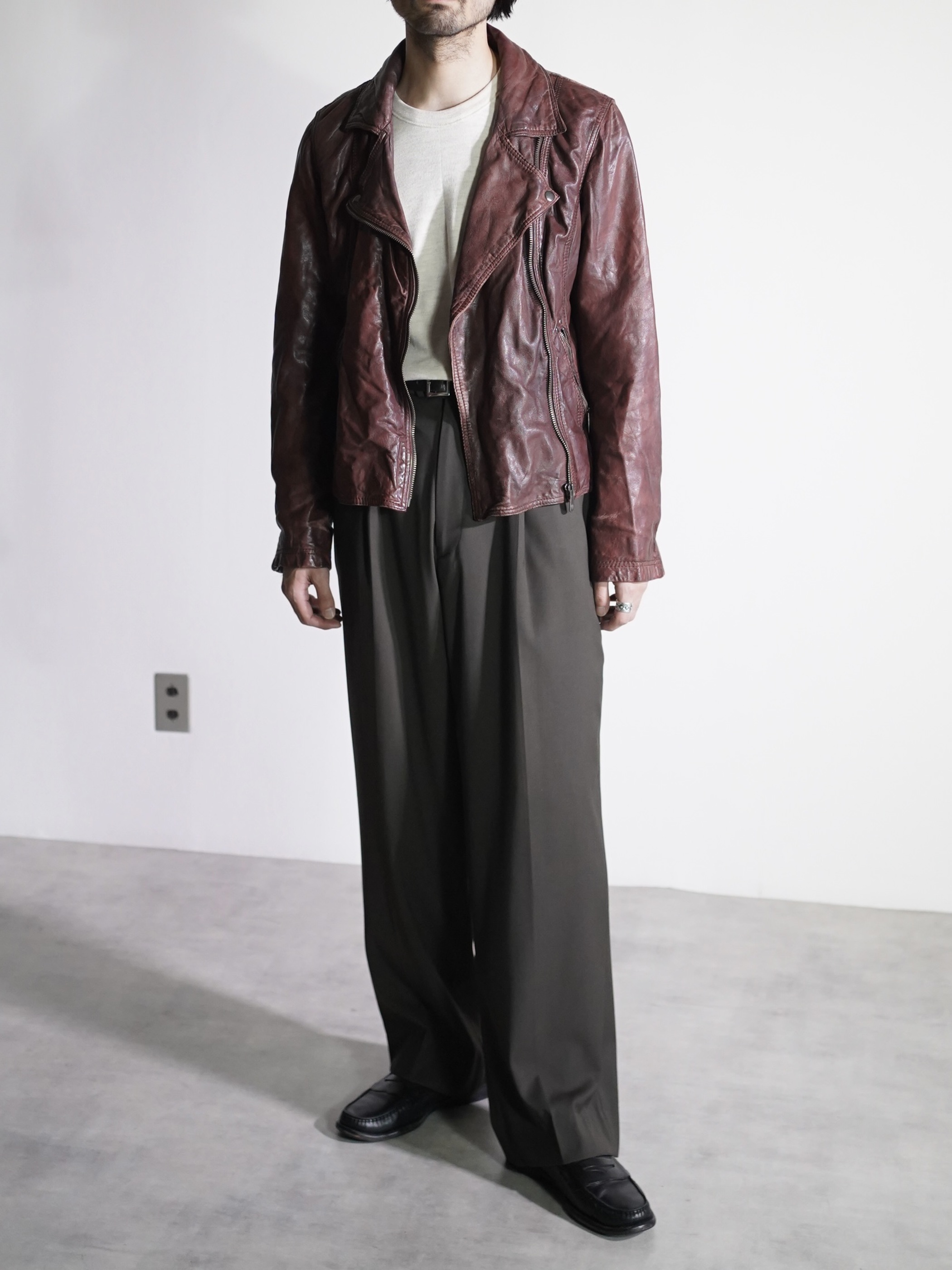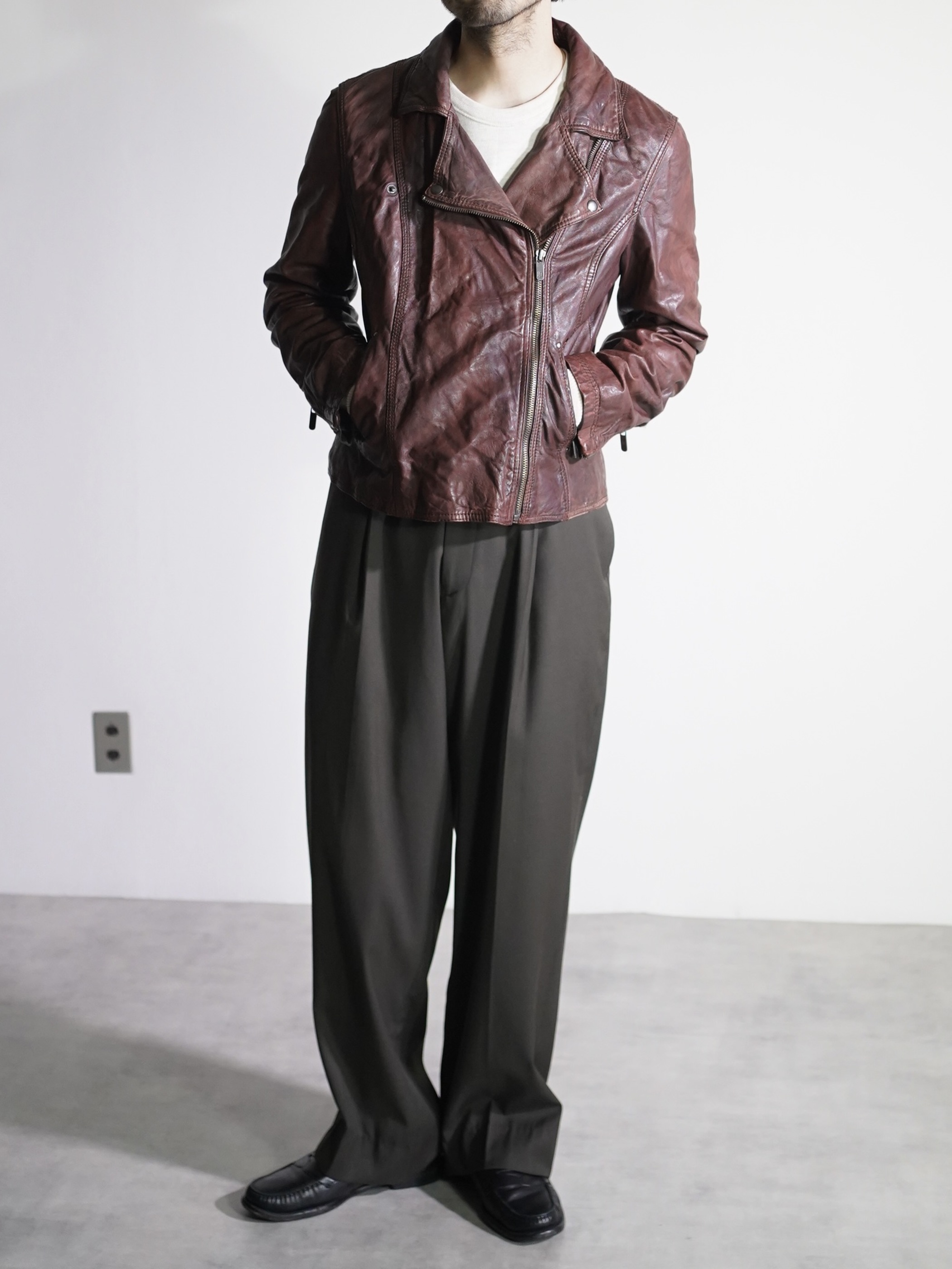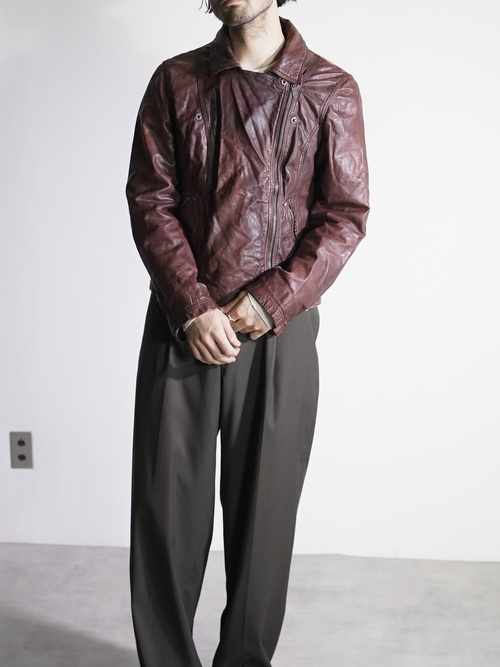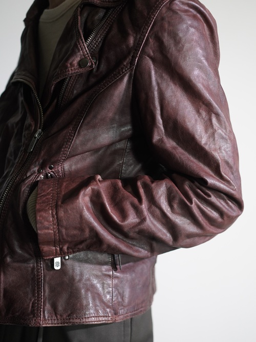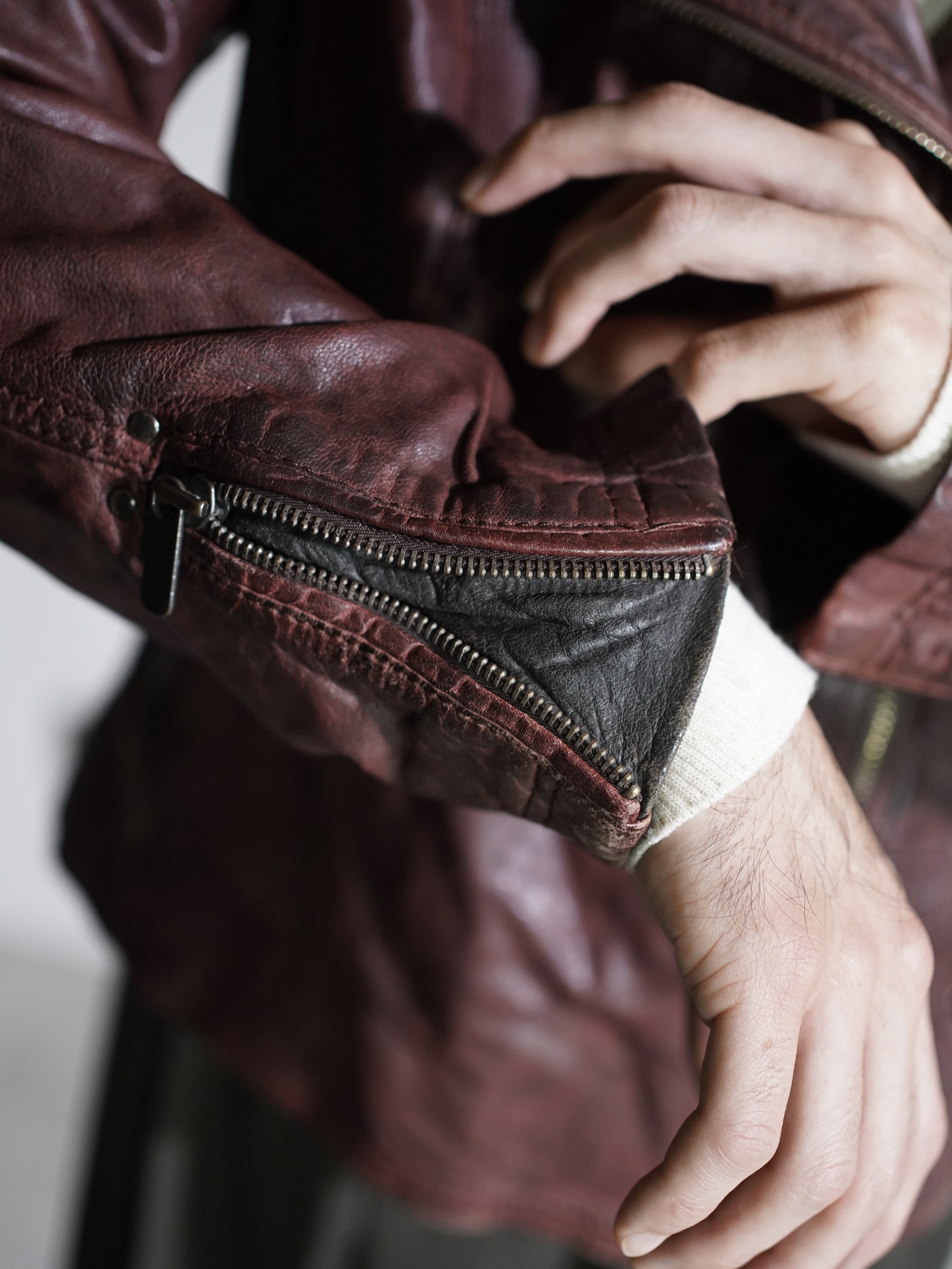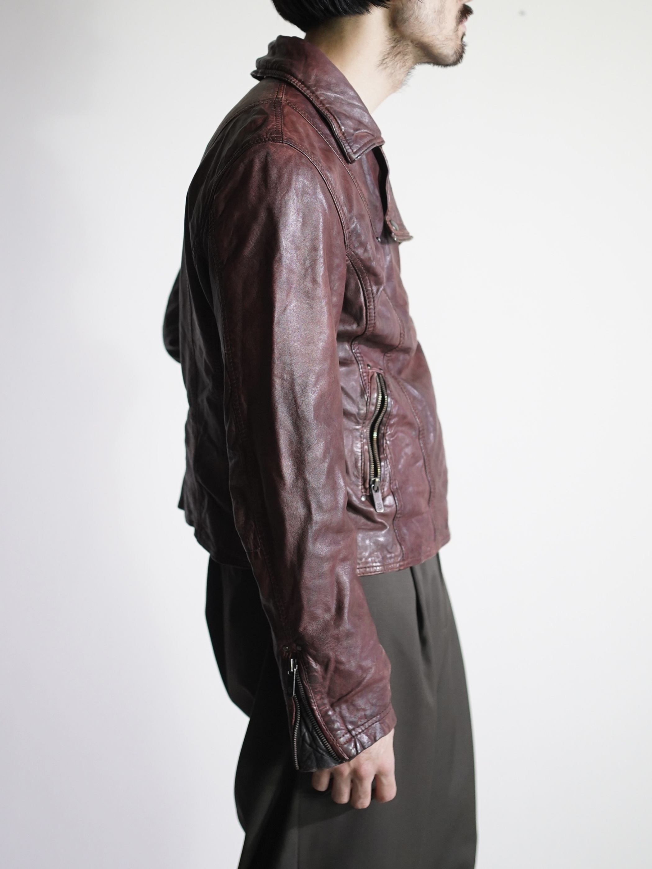 タイトなライダース着てる人はいないかもですが、この柔らかく、でもハリのある革の質感と、エッジの効いた色。