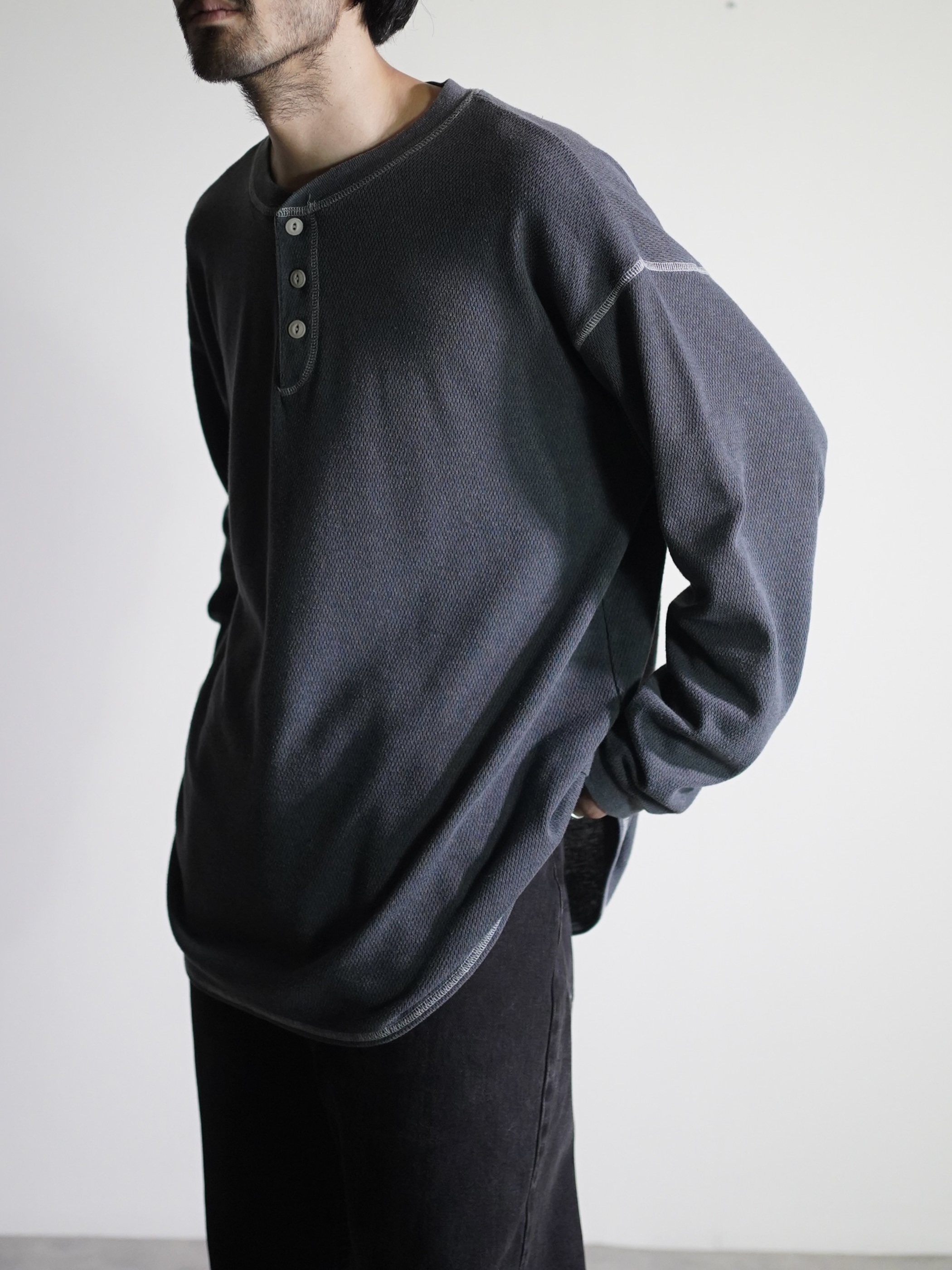 1990's ST JOHN'S BAY Henry-neck thermal cut sew