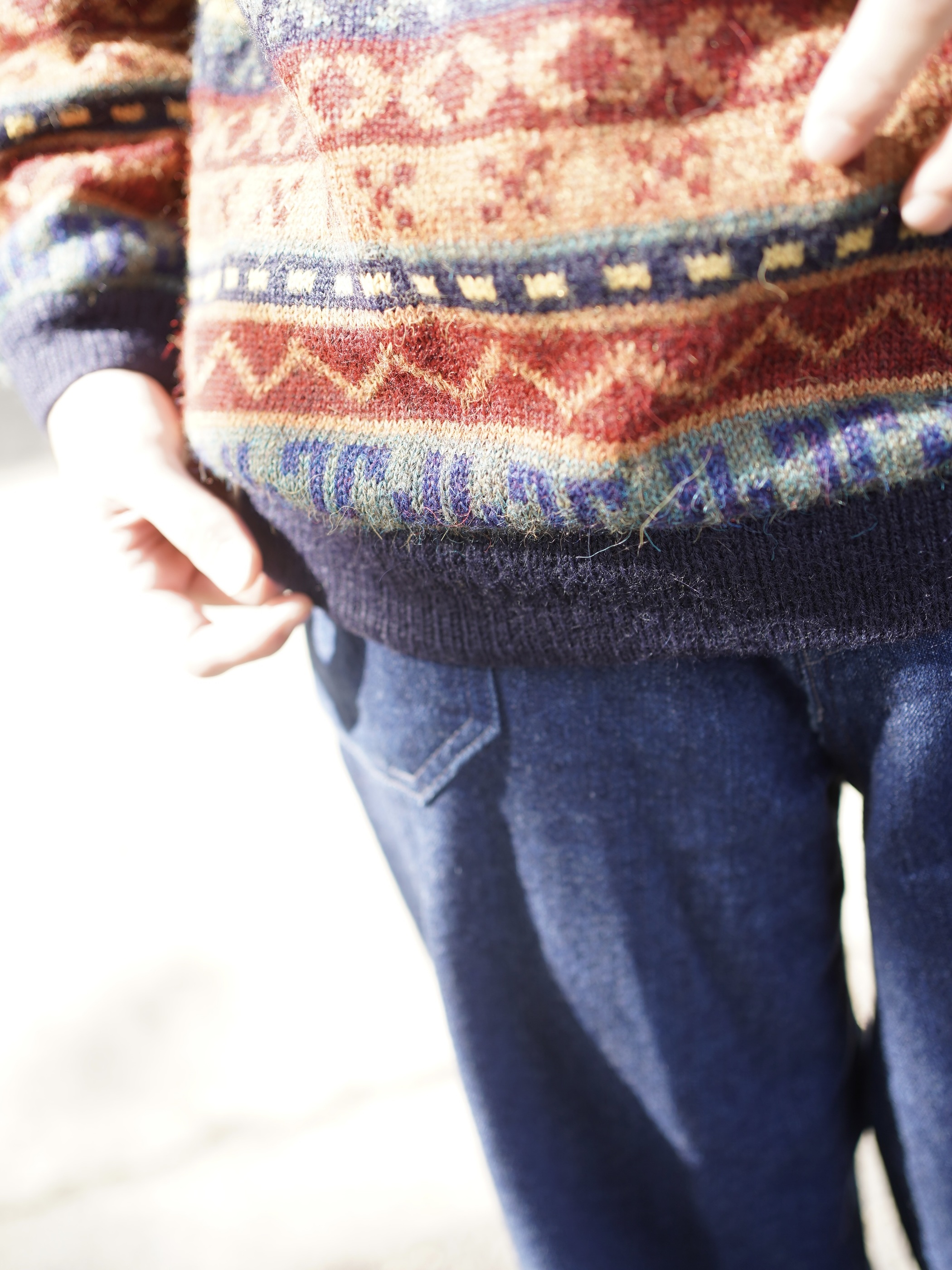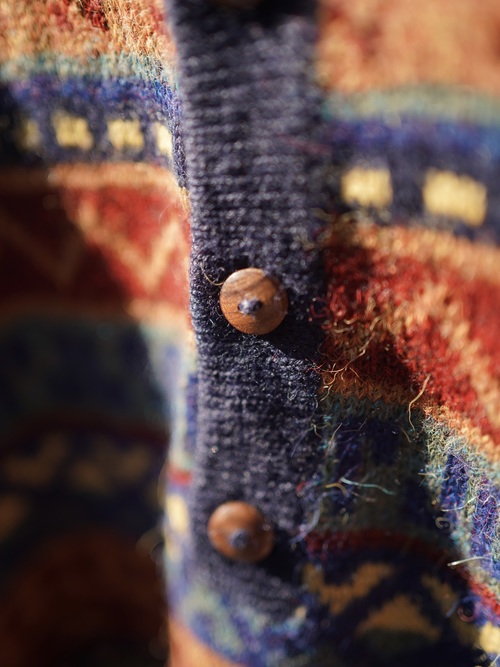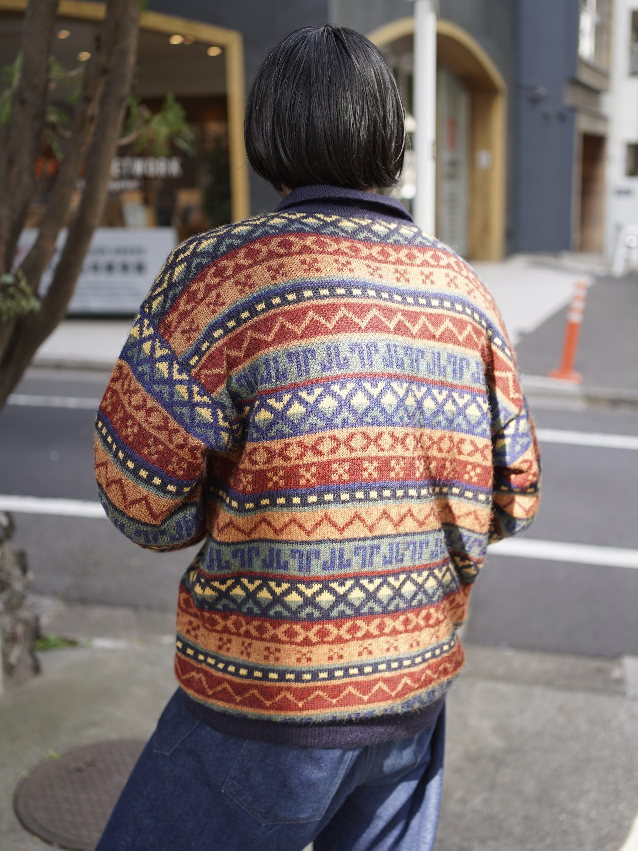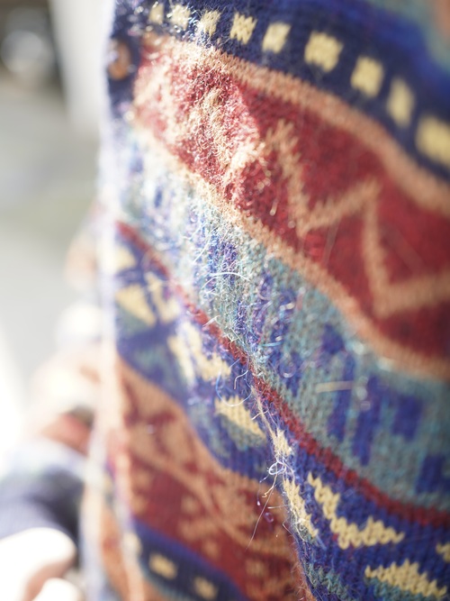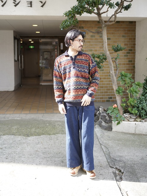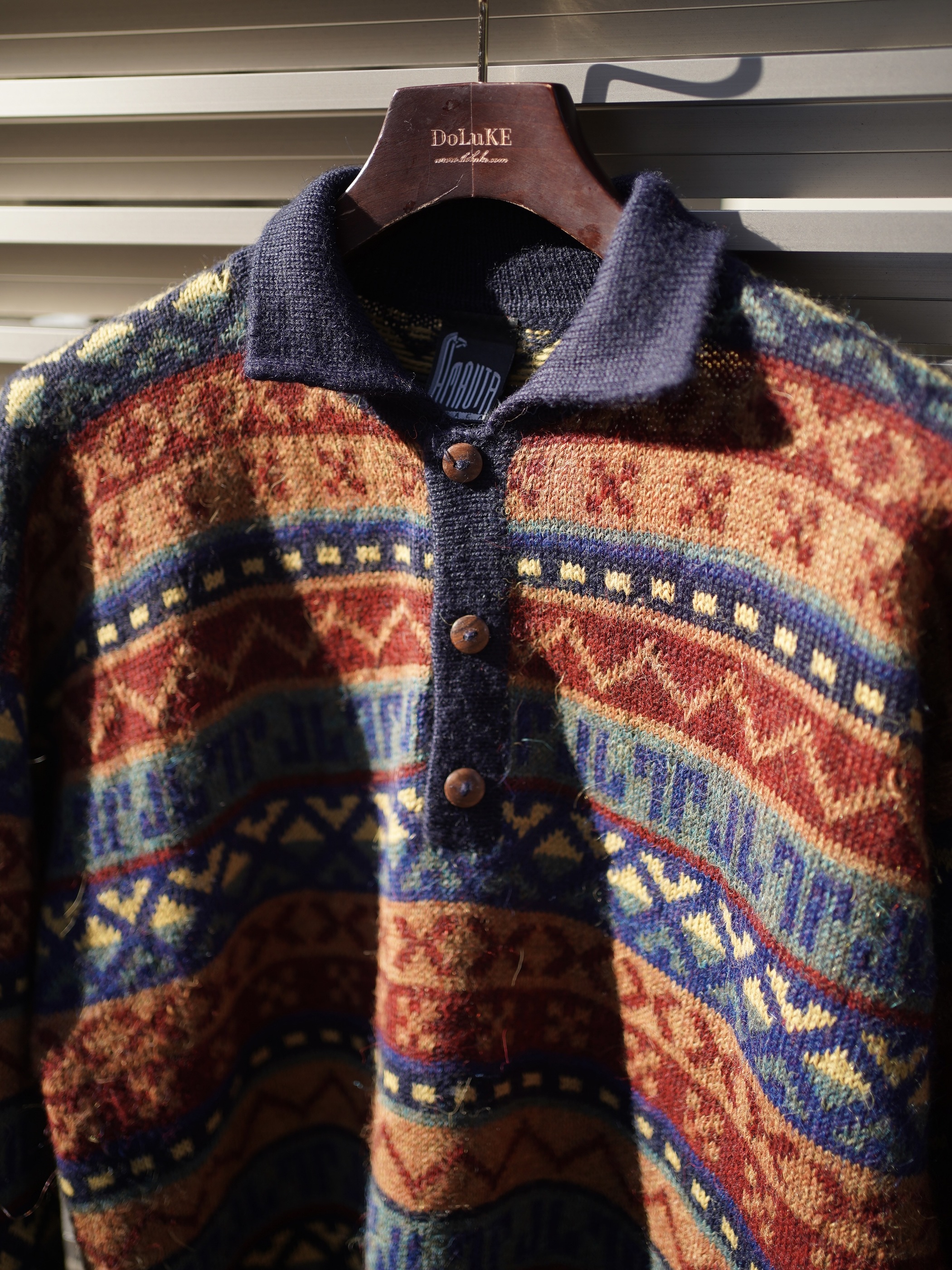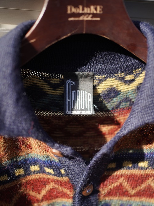 ・1990's AMAUTA Alpaca 100% native pattern border knit polo shirt