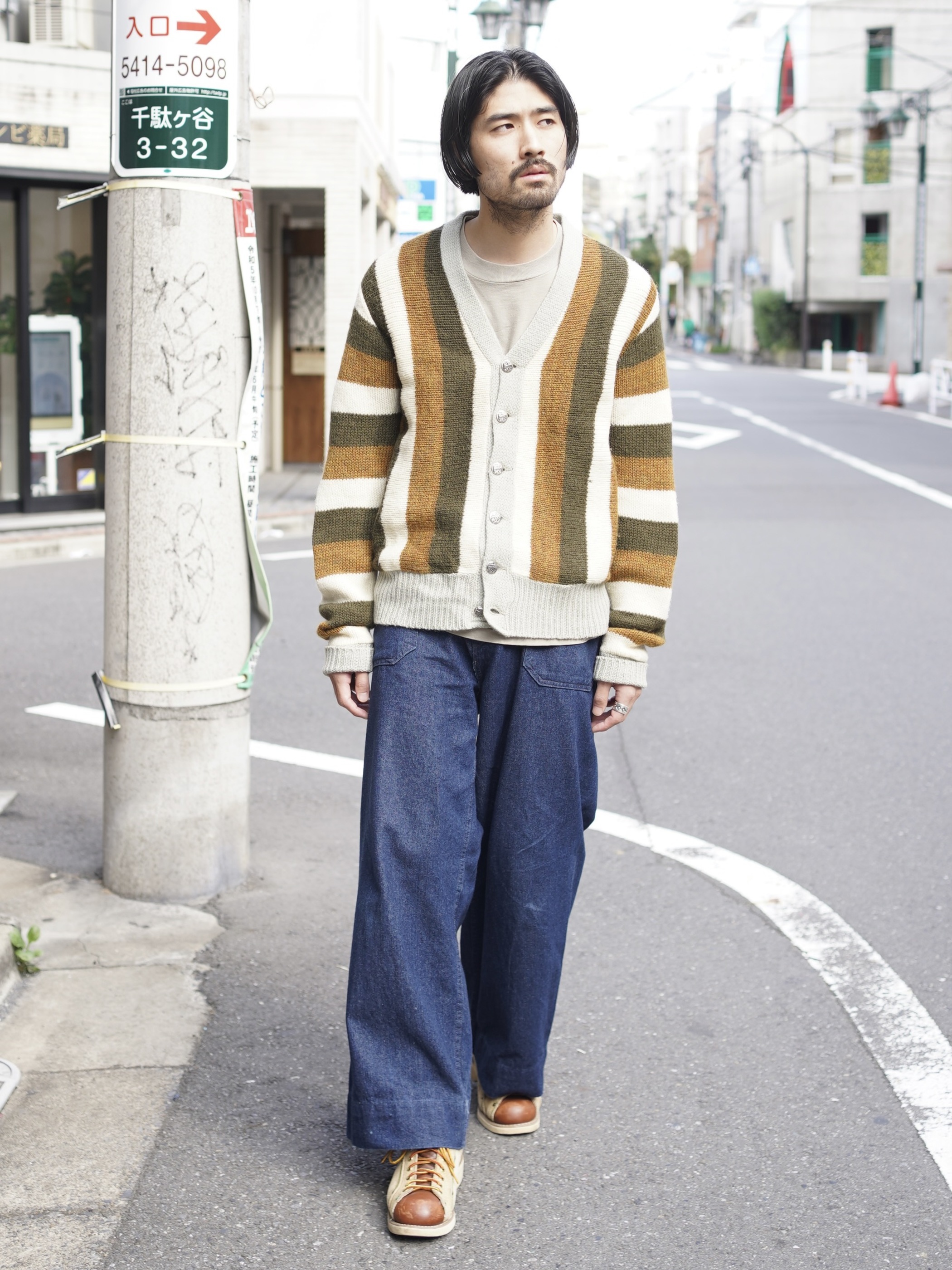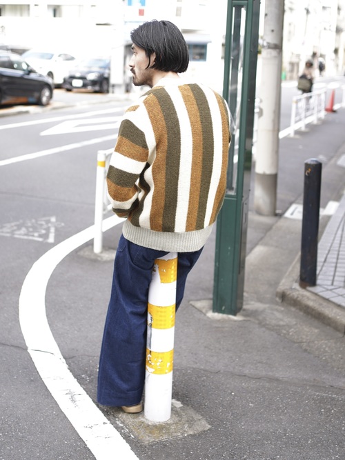 中間着であるカーディガンにおいて、インナーの仕込みやすさやアウターを上から重ね着できるかというのは大事なポイントですが、この深すぎないVゾーンとテンションの掛かりすぎないリブは個人的に評価が高いです。